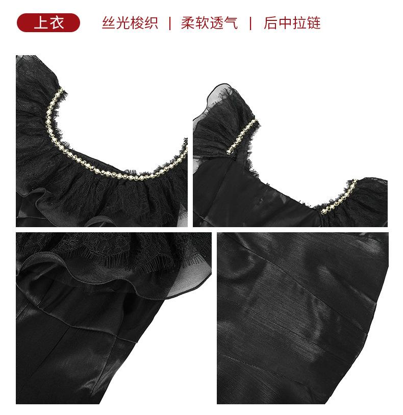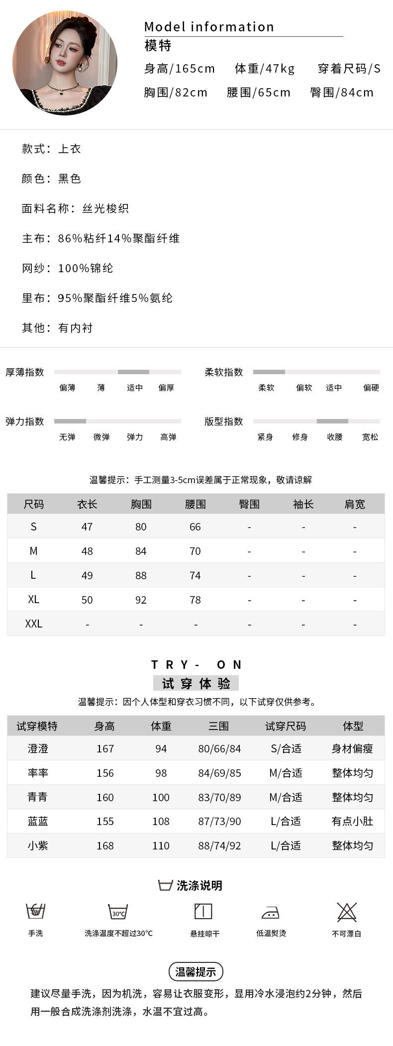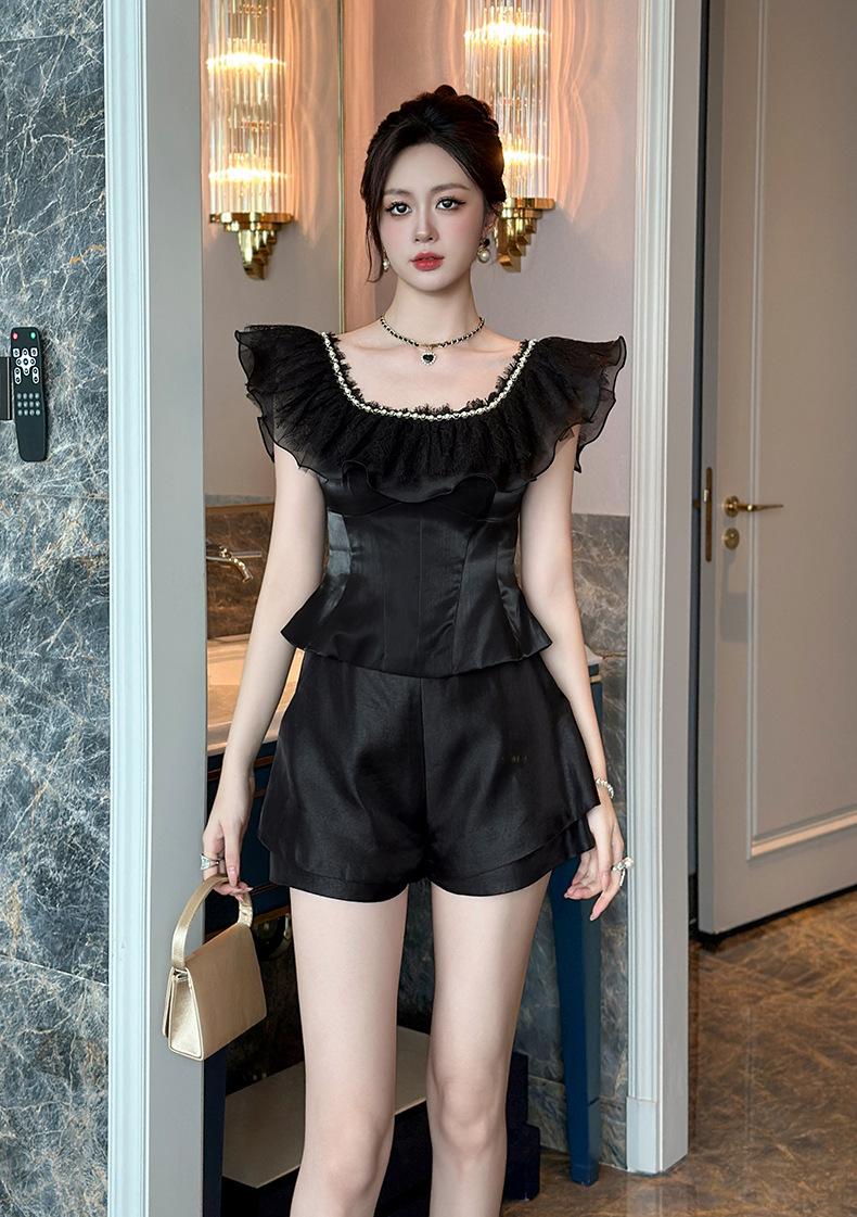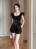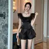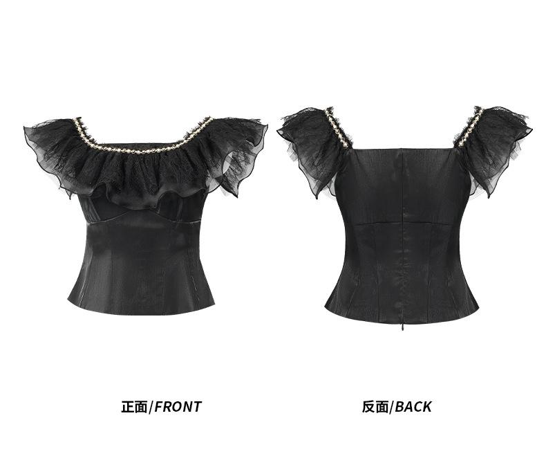 2025 Verano Nuevo Ropa de Mujer Diseño Francés de Cuello Cuadrado Sentido Volante Cintura Adelgazante Top Negro 11646