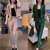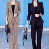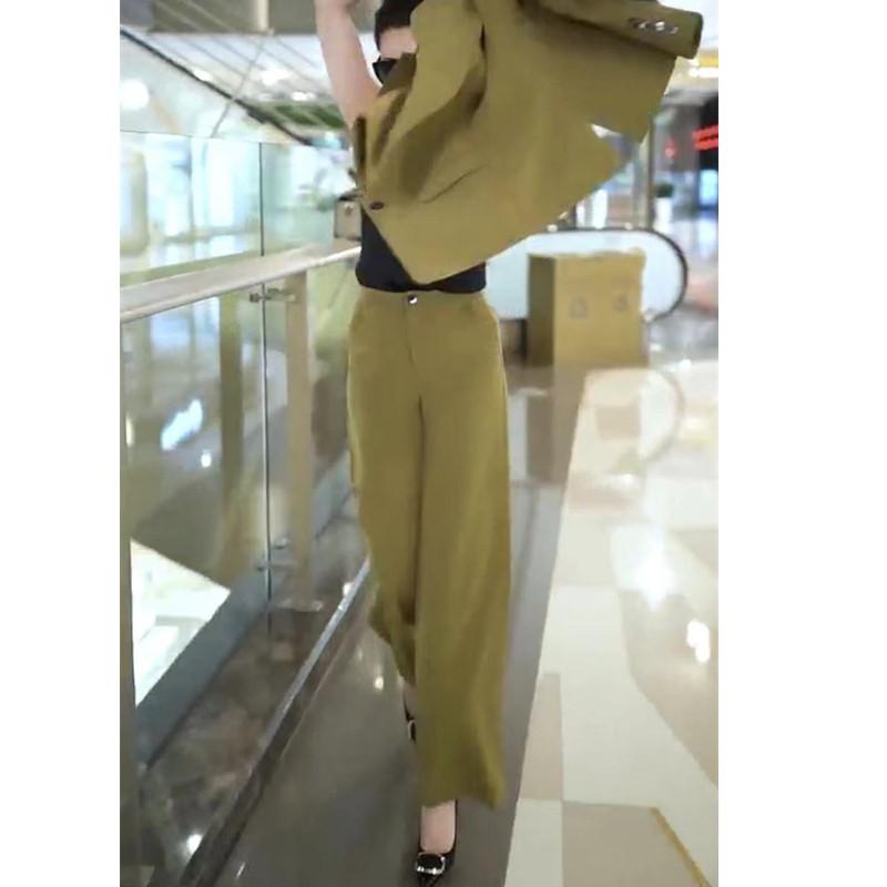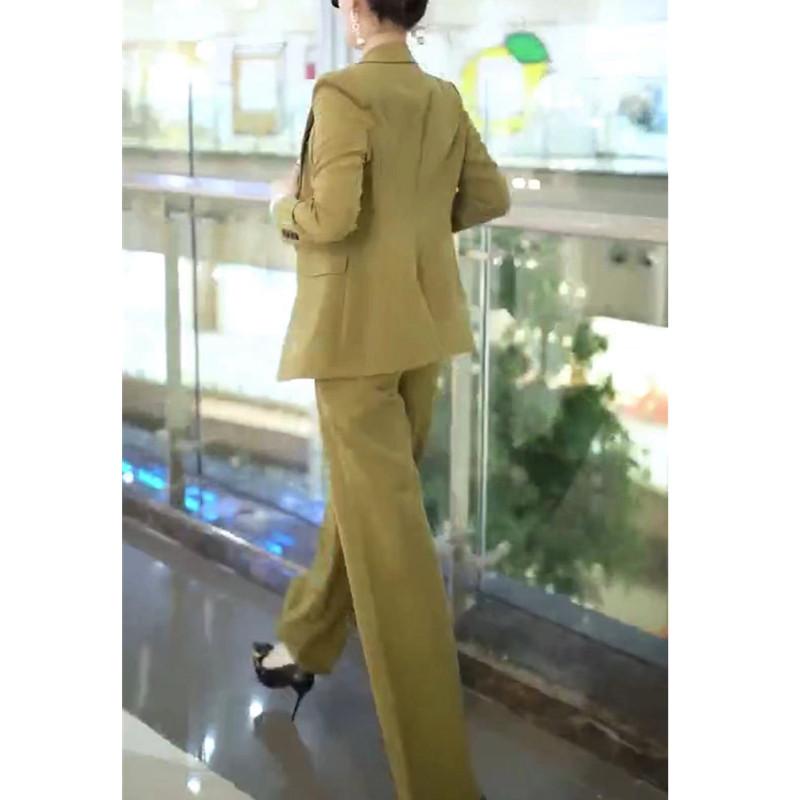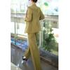 9722 Damei Ai Yuan Primavera 2025 Nuevo Traje Amarillo de Moda Conjunto de Dos Piezas Manga Larga Solapa Pantalón Recto para Mujer