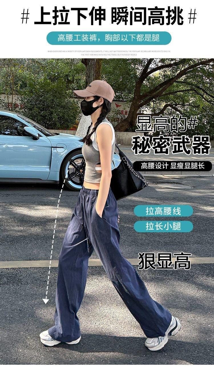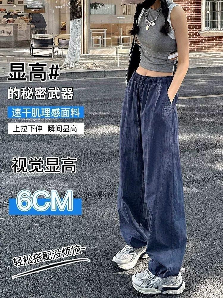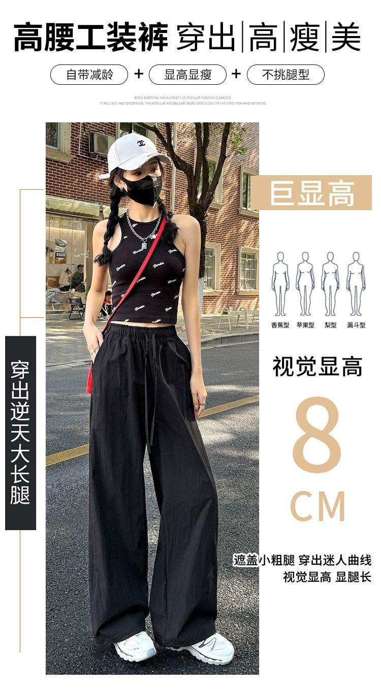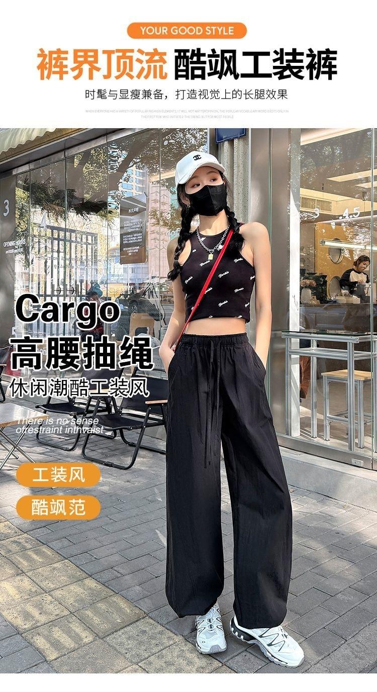 Pantalones Cargo Americanos de Moda de Cintura Alta Adelgazantes para Mujer 2025 Nuevo Sentido del Diseño Casual Holgados Adelgazantes Cimitarra de Pierna Ancha