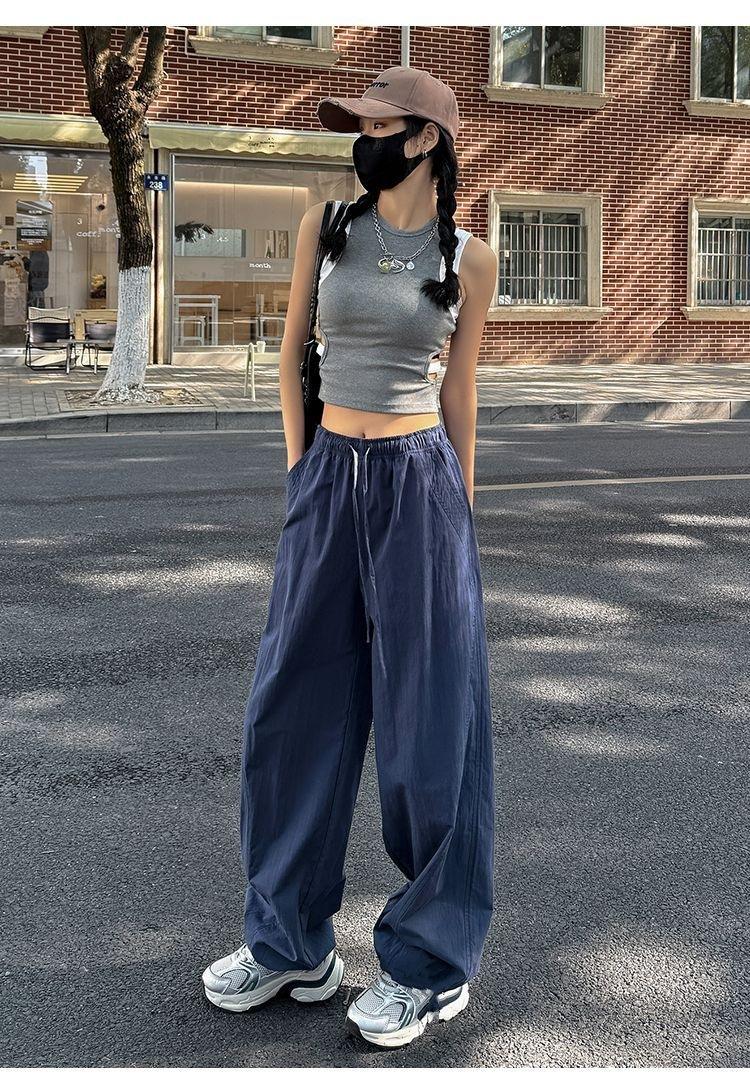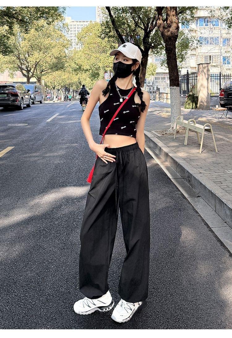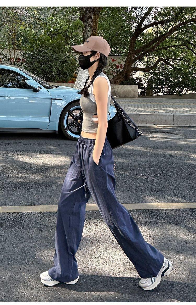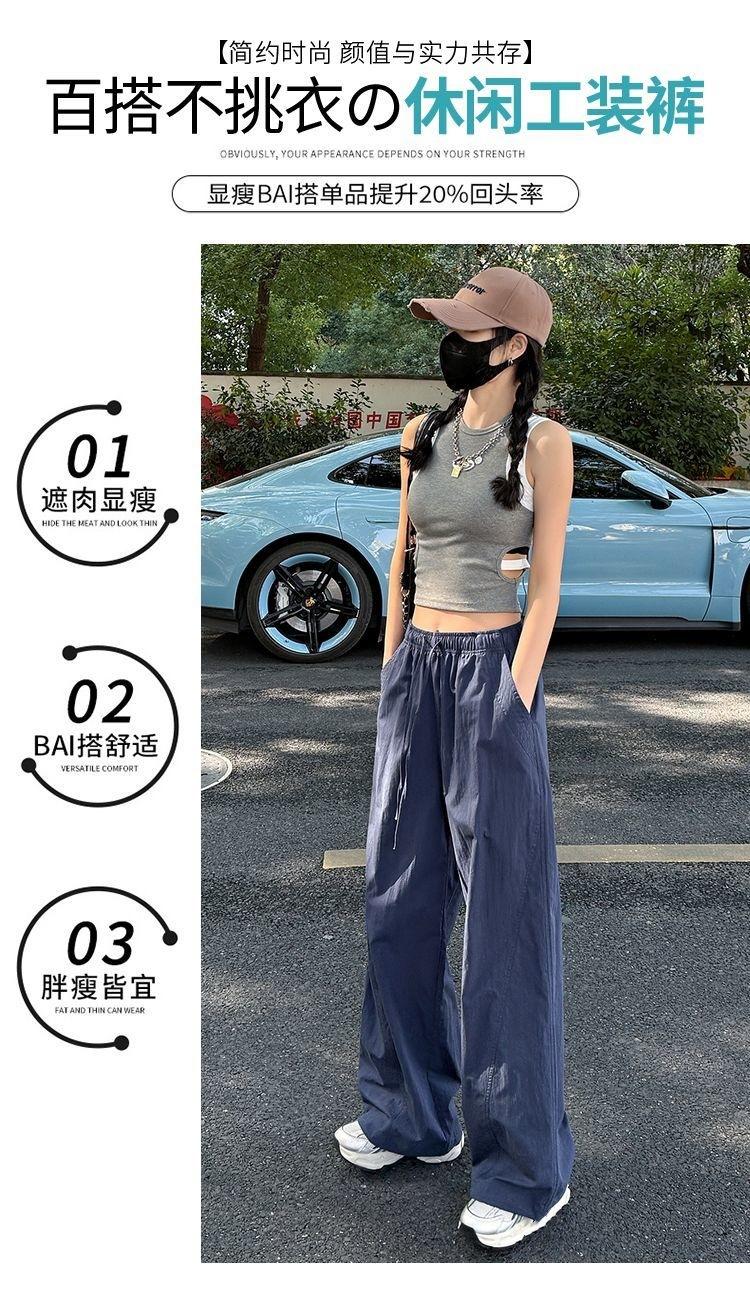 Pantalones Cargo Americanos de Moda de Cintura Alta Adelgazantes para Mujer 2025 Nuevo Sentido del Diseño Casual Holgados Adelgazantes Cimitarra de Pierna Ancha