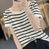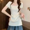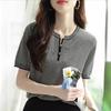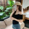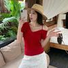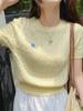 Dulce camiseta de manga corta con hombros caídos, suéter de punto, top de diseño de moda para mujer, noble elegante y de alta gama de fábrica