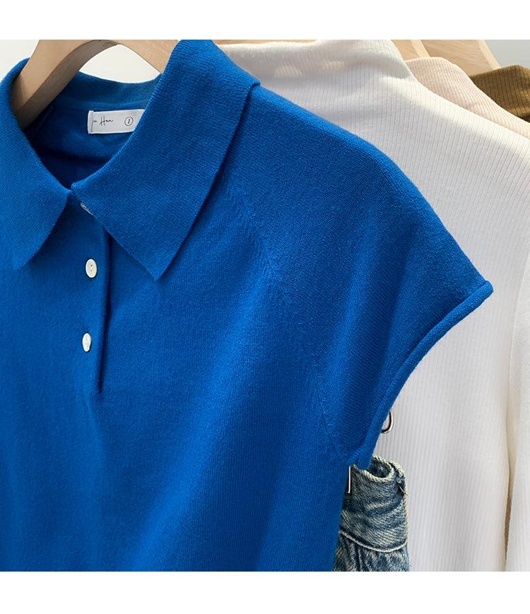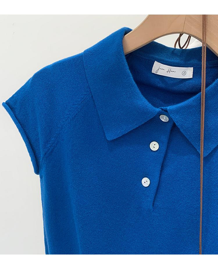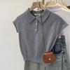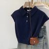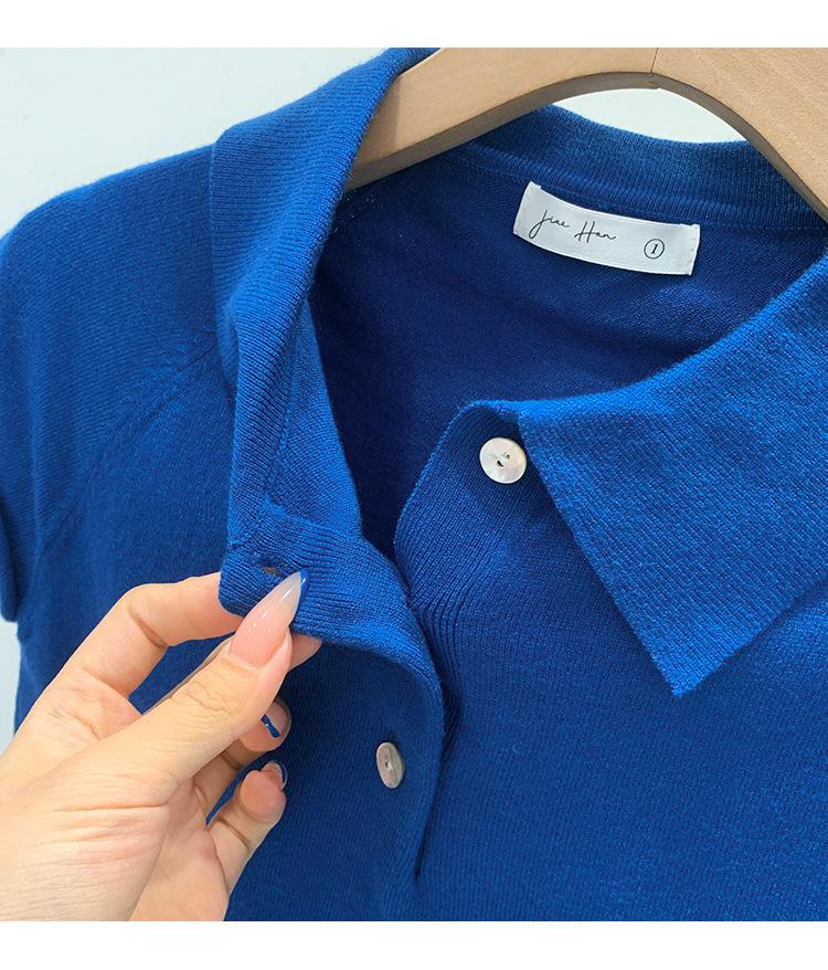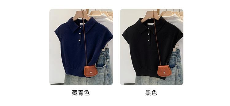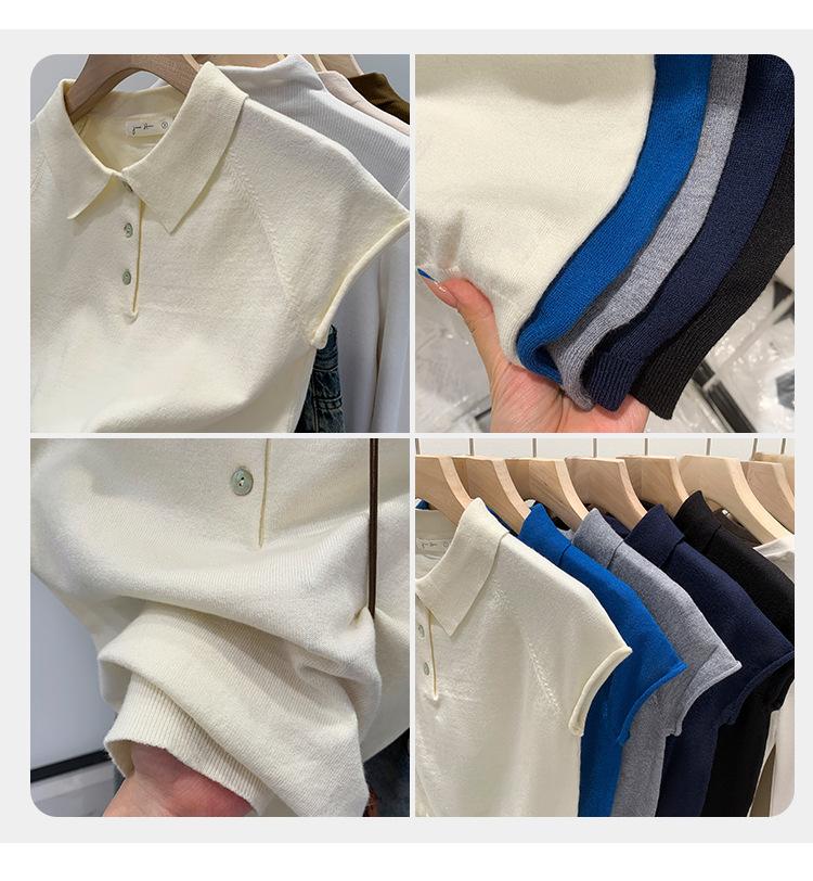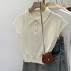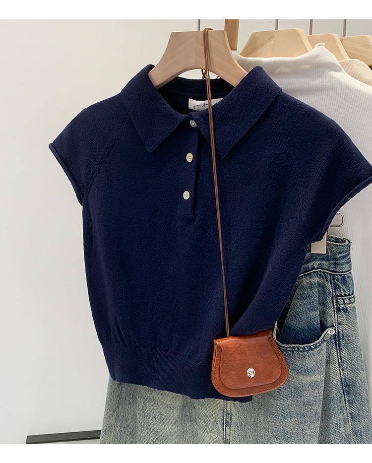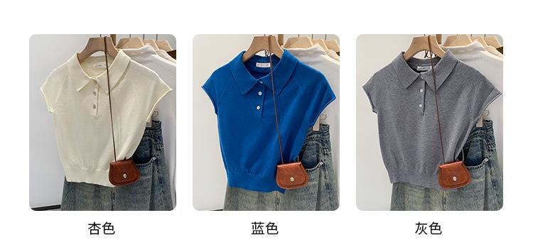 Polo de Fondo Alto con Cuello de Polo Manga Raglán Tejido de Manga Corta para Mujer Verano Abotonado Top Corto Elegante Versátil Camiseta Básica