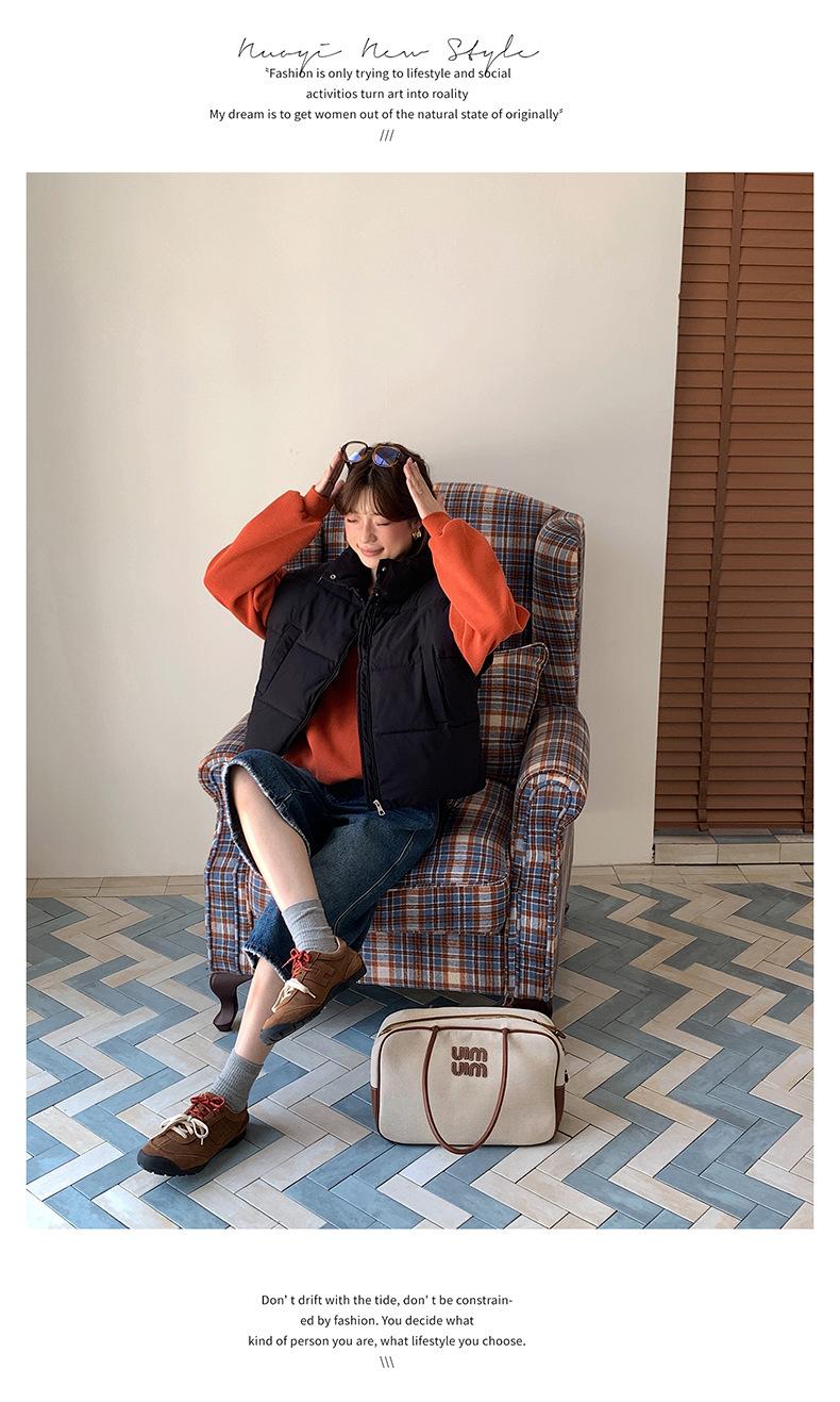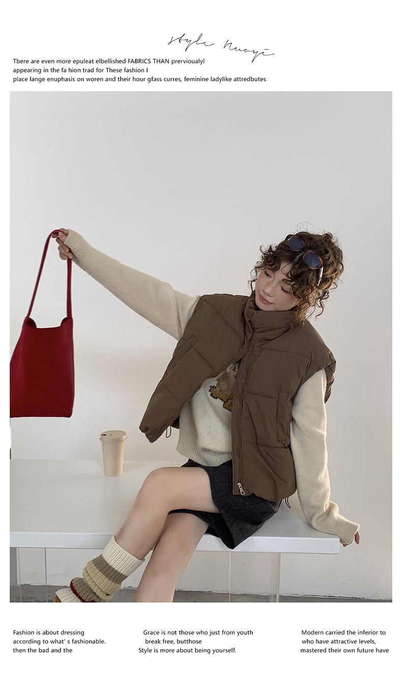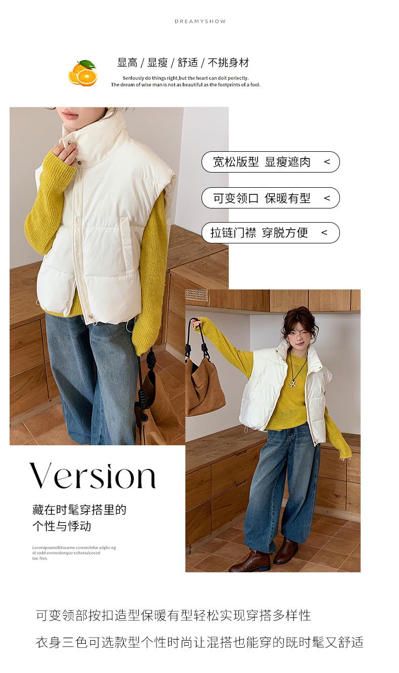Chaleco de algodón de estilo coreano moderno y versátil para mujer invierno nuevo ins en capas sin mangas con cuello alto chaleco chaqueta top