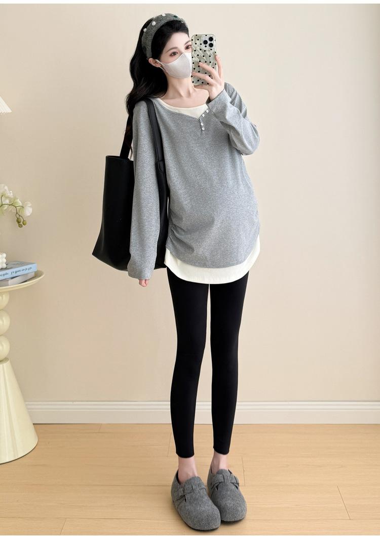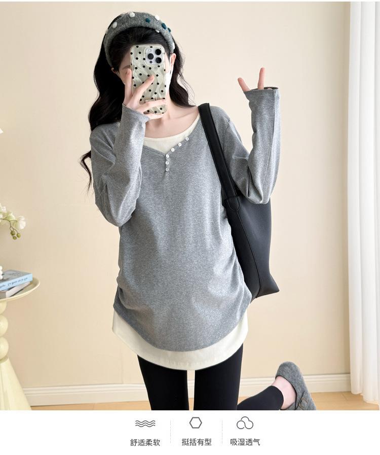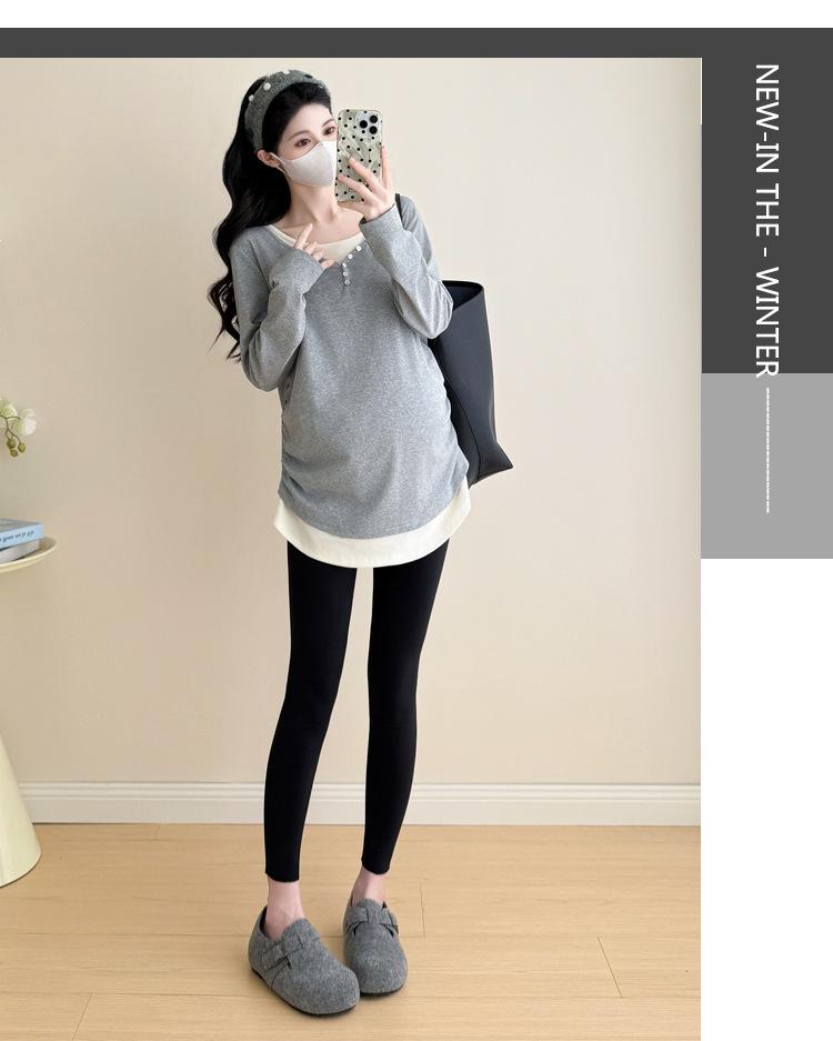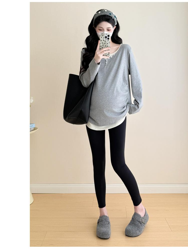 Spot 2025 Ropa de Maternidad Otoño e Invierno Versátil Camiseta Base Tejida de Alta Elasticidad Otoño e Invierno Ropa Interior Cálida Camiseta de Maternidad