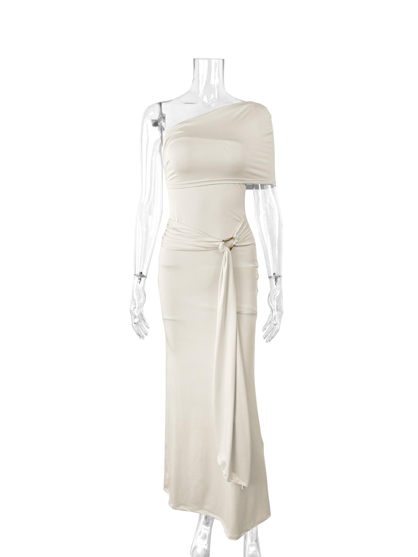 Moda sexy europea y americana de un solo hombroVestido, diseño único con cinta plisada en la cintura,Los pedidos se realizan tan pronto como se colocan en los estantes.Yo,¡Invitamos a nuevos y antiguos clientes a comprar muestras!