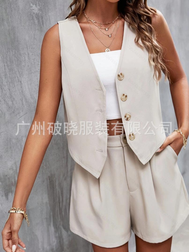 2025 Transfronterizo Amazon Verano Nueva Moda Casual Chaleco Shorts Traje Ropa de Mujer