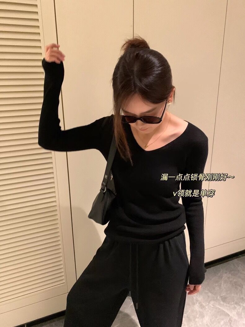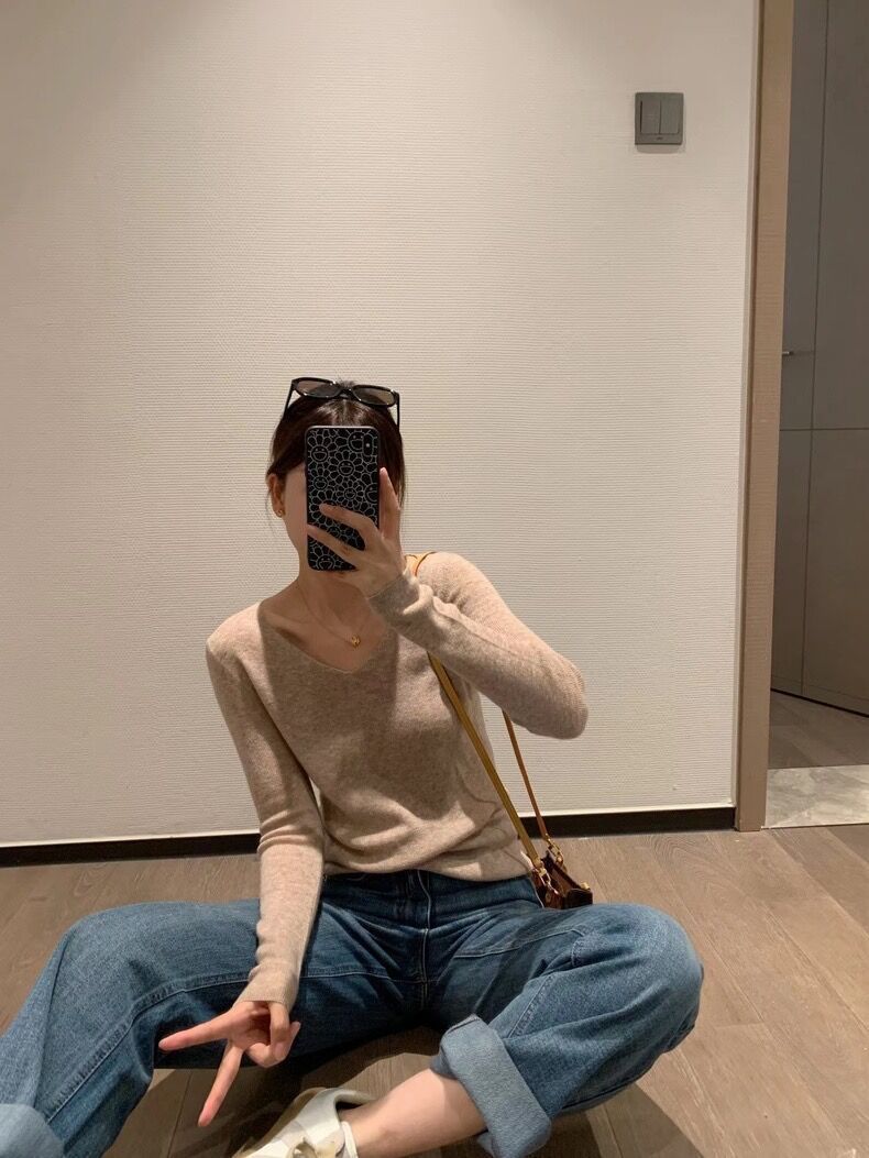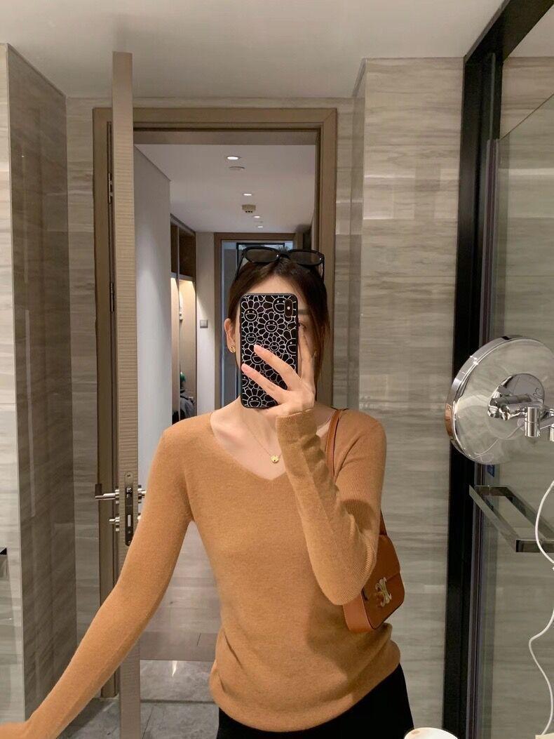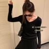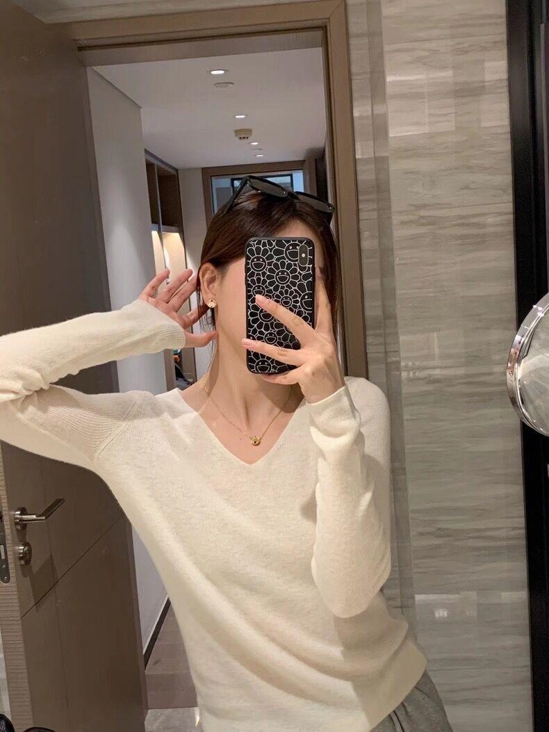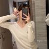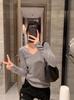 Top de Punto de Manga Larga de Color Sólido Suéter Holgazán Otoño e Invierno Nuevo para Mujer Holgado Adelgazante Manga Larga Base Versátil