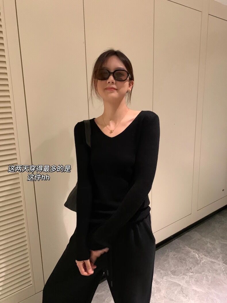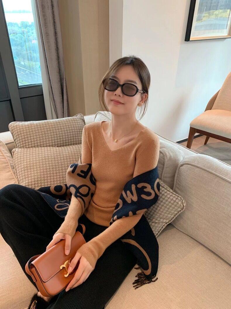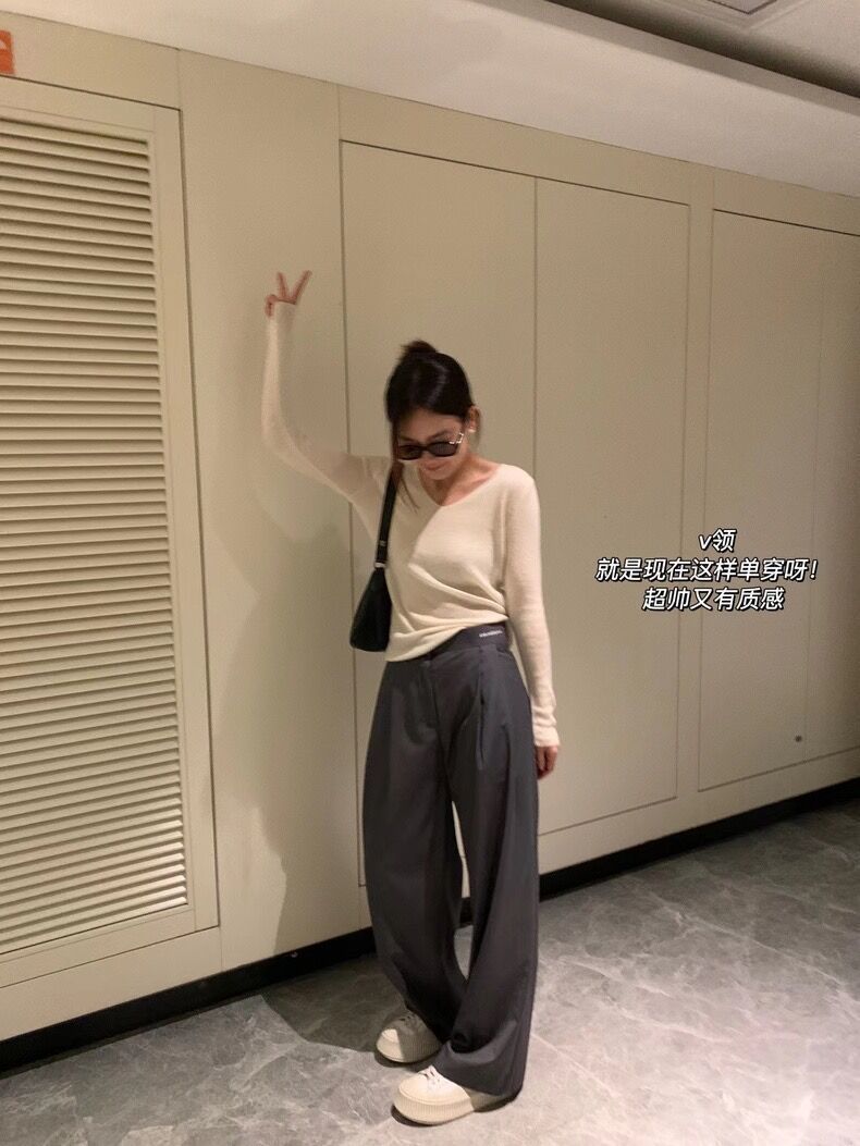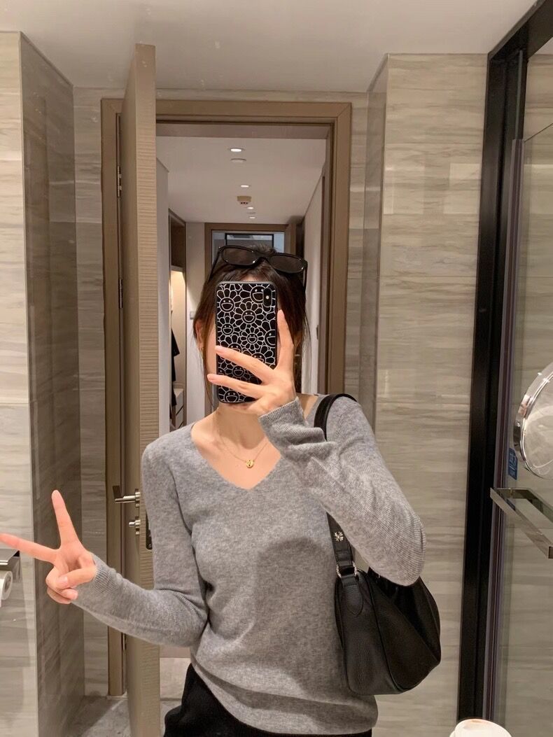 Top de Punto de Manga Larga de Color Sólido Suéter Holgazán Otoño e Invierno Nuevo para Mujer Holgado Adelgazante Manga Larga Base Versátil