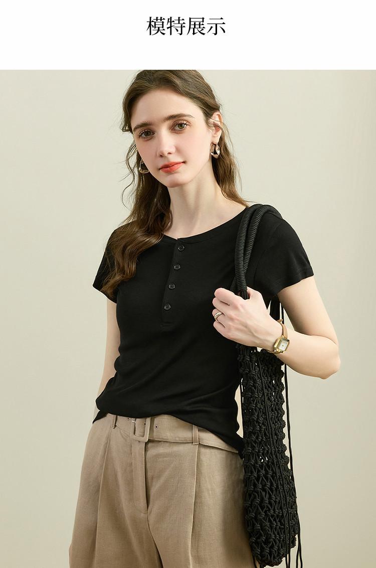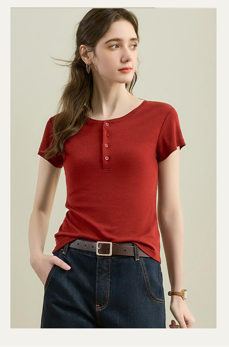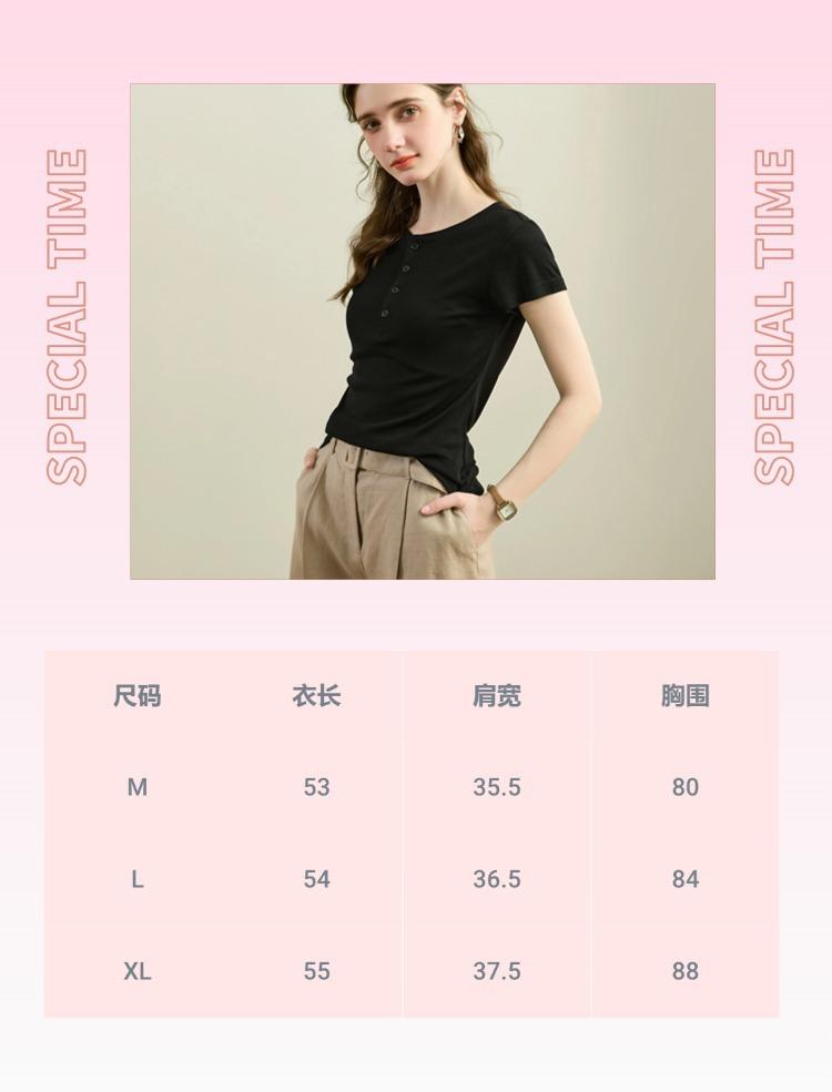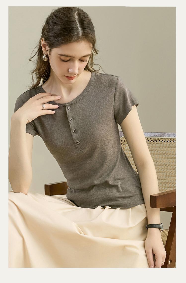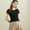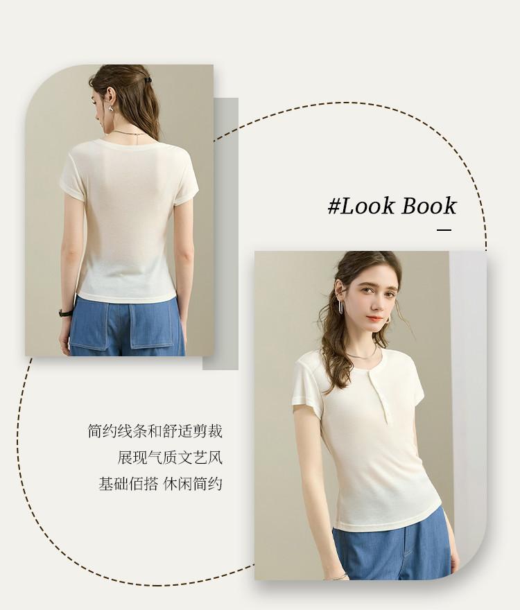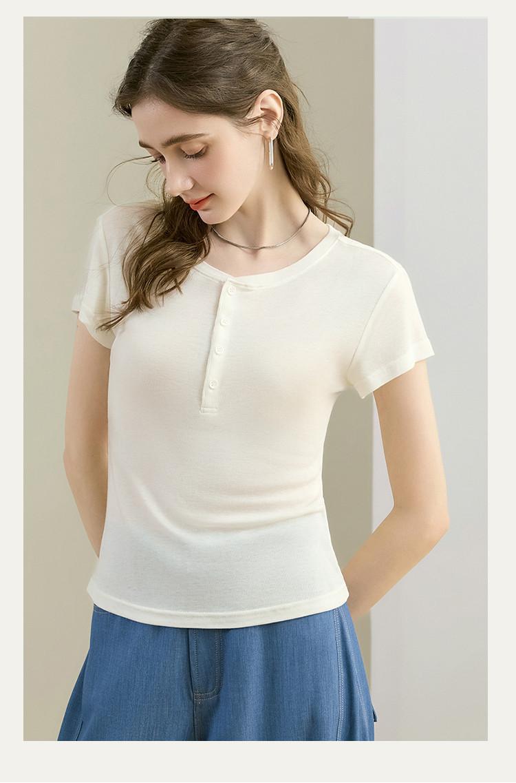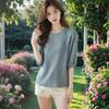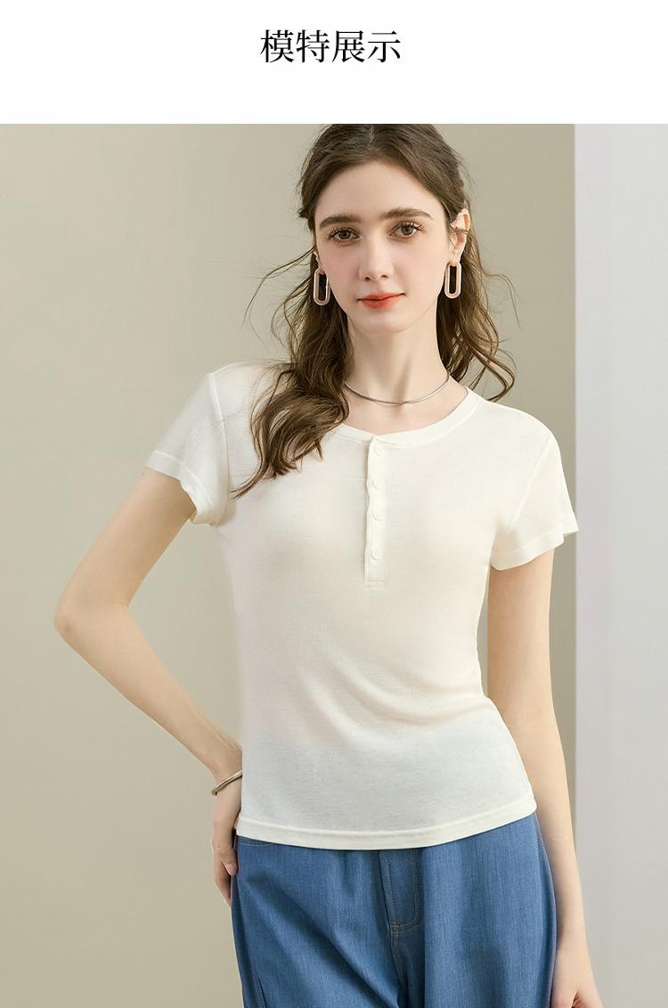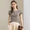 [Con seda de morera] Verano Nuevo Seda Ajustado Casual Combinable Manga Corta Hombro Cuello Redondo Top Suéter de Mujer