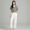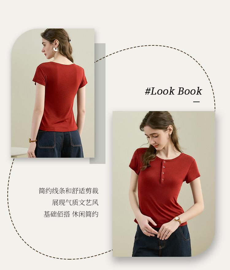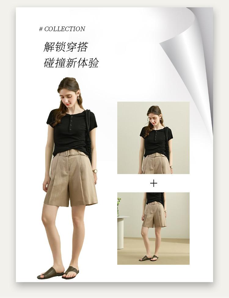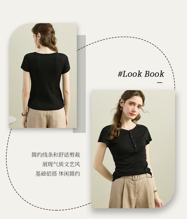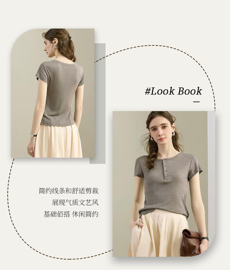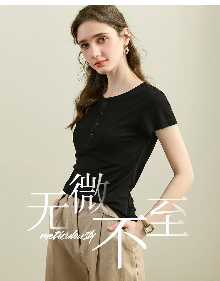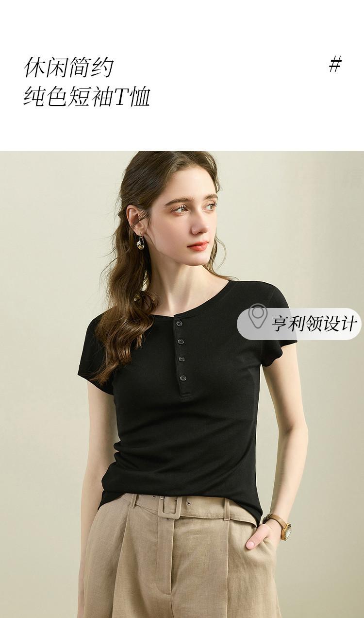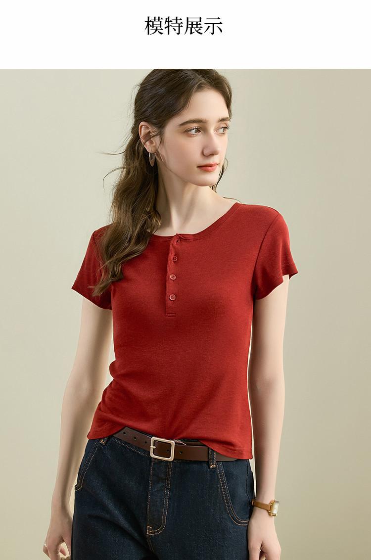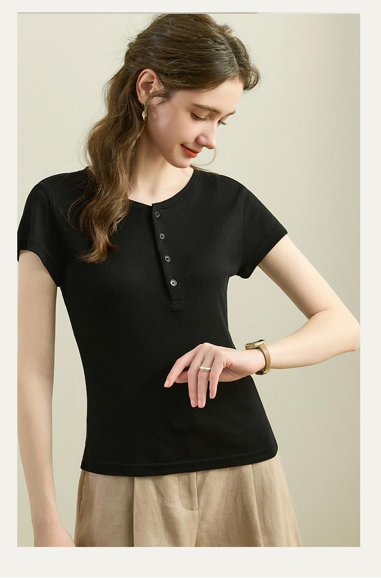 [Con seda de morera] Verano Nuevo Seda Ajustado Casual Combinable Manga Corta Hombro Cuello Redondo Top Suéter de Mujer