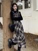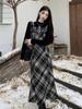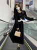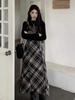 Falda de Traje de Chica Rica Negra Fresca y Elegante Camisola Vestido de Capa Interior Traje de Falda para Mujer Conjunto de Dos Piezas Vestido Largo de Primavera y Otoño