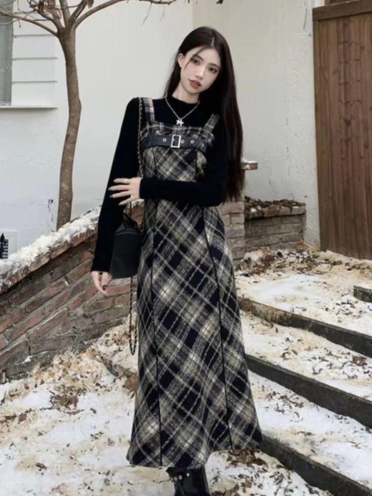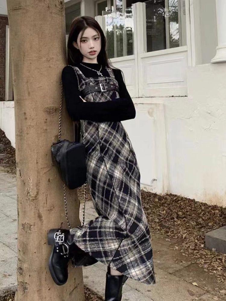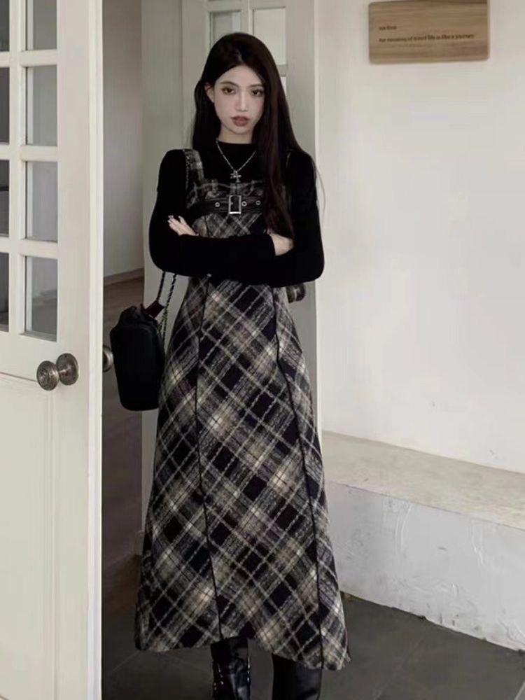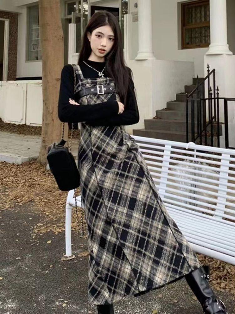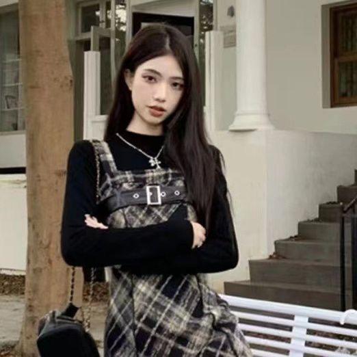 Single bottoming shirt, One-piece suspender skirt, Black bottoming shirt + suspender skirt