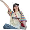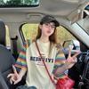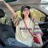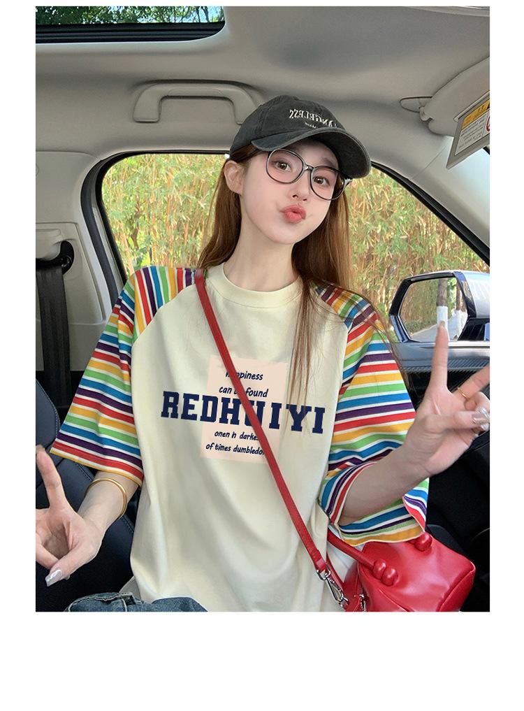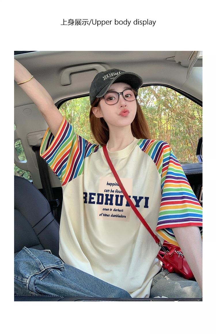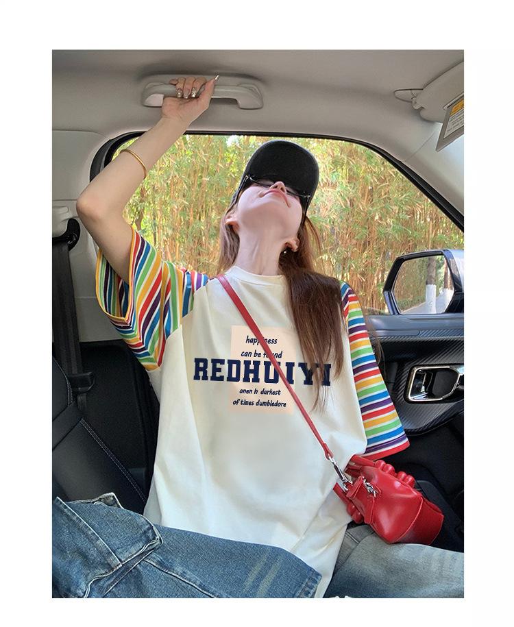 Playera de Algodón Puro Moderna Colorida a Rayas Manga Raglán Oversized para Mujer Estilo Europeo Corte Holgado