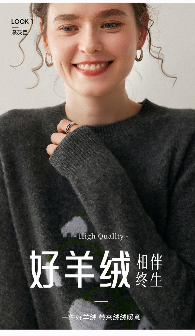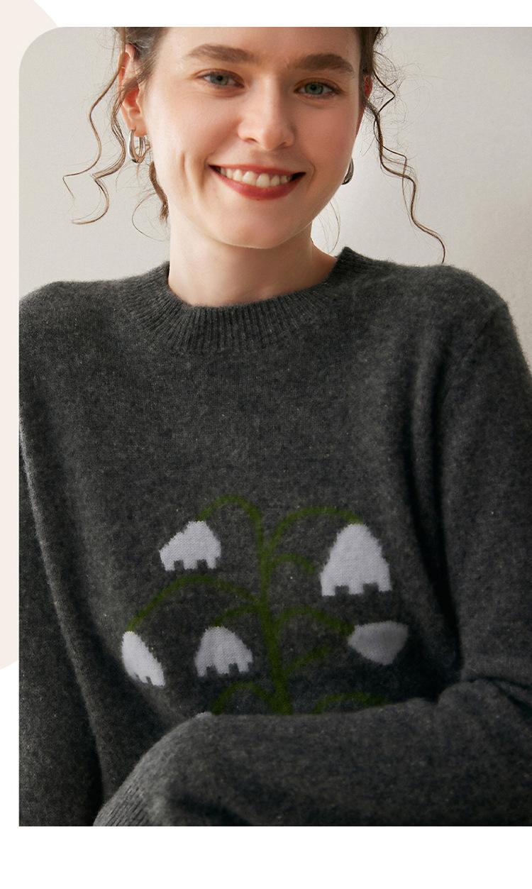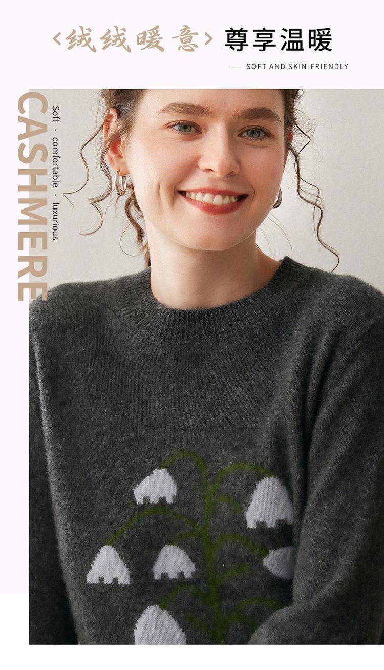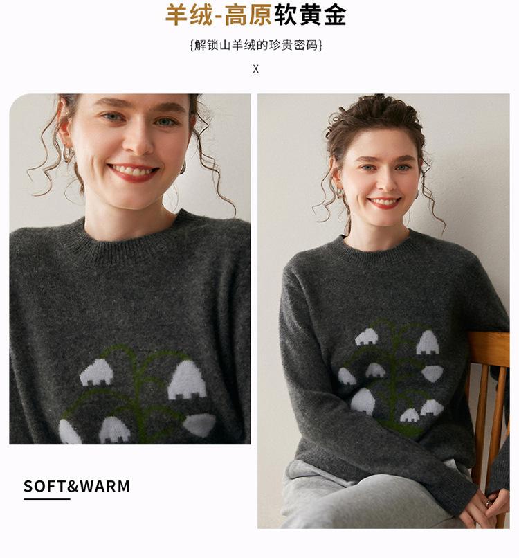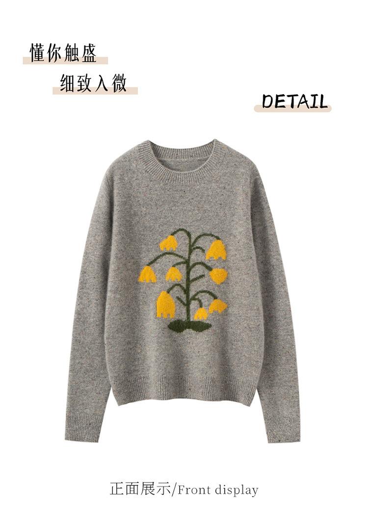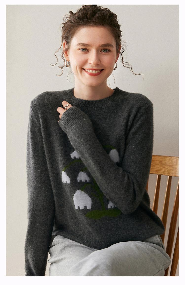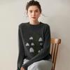 Suéter de Cachemira para Mujer Otoño/Invierno 2025 Cuello Redondo Bordado Jacquard Tejido Suéter de Cachemira Holgado Casual Top Básico