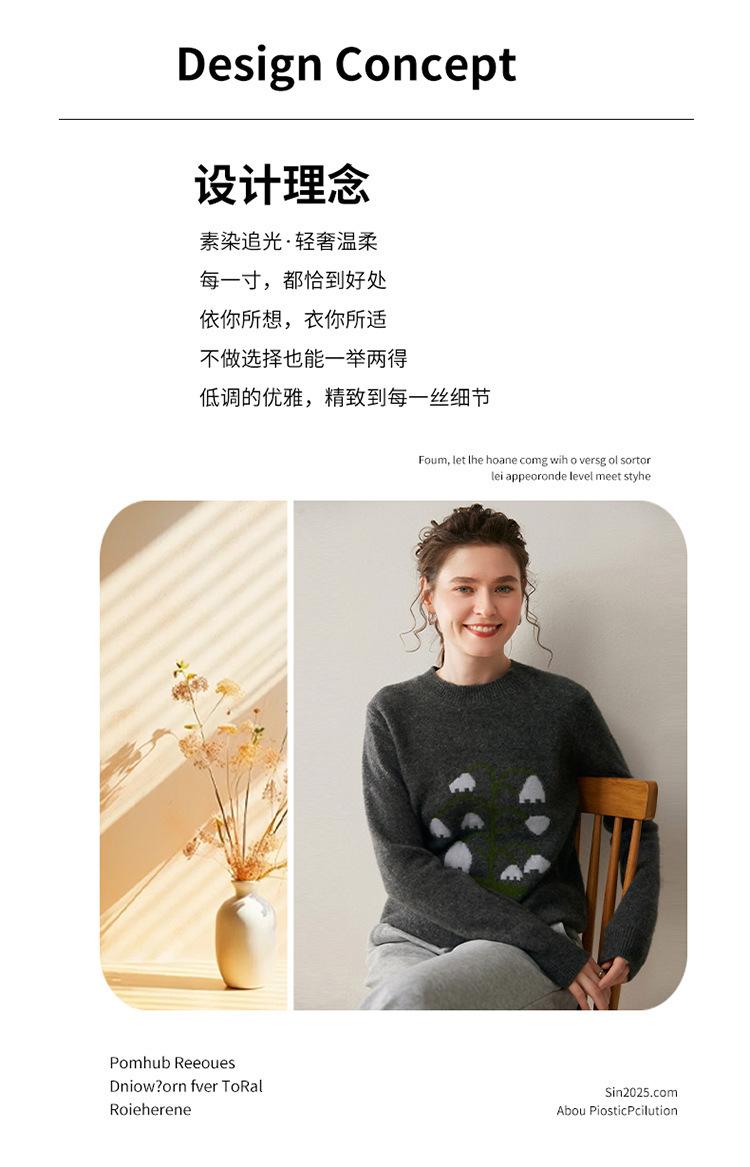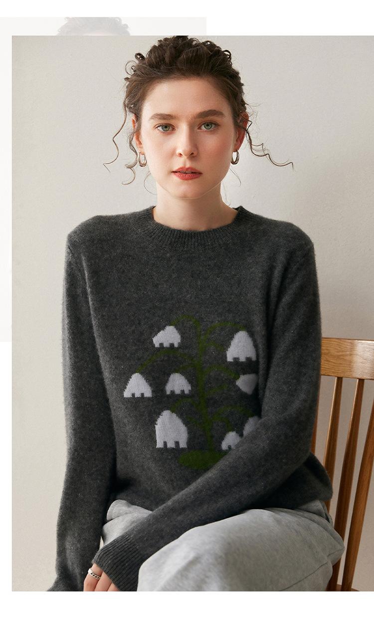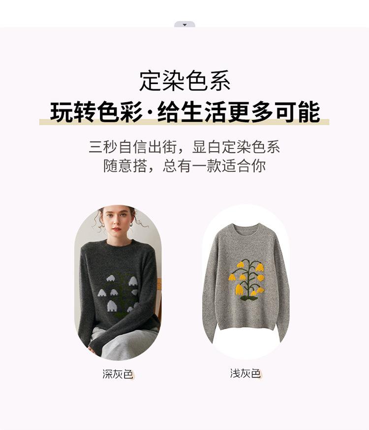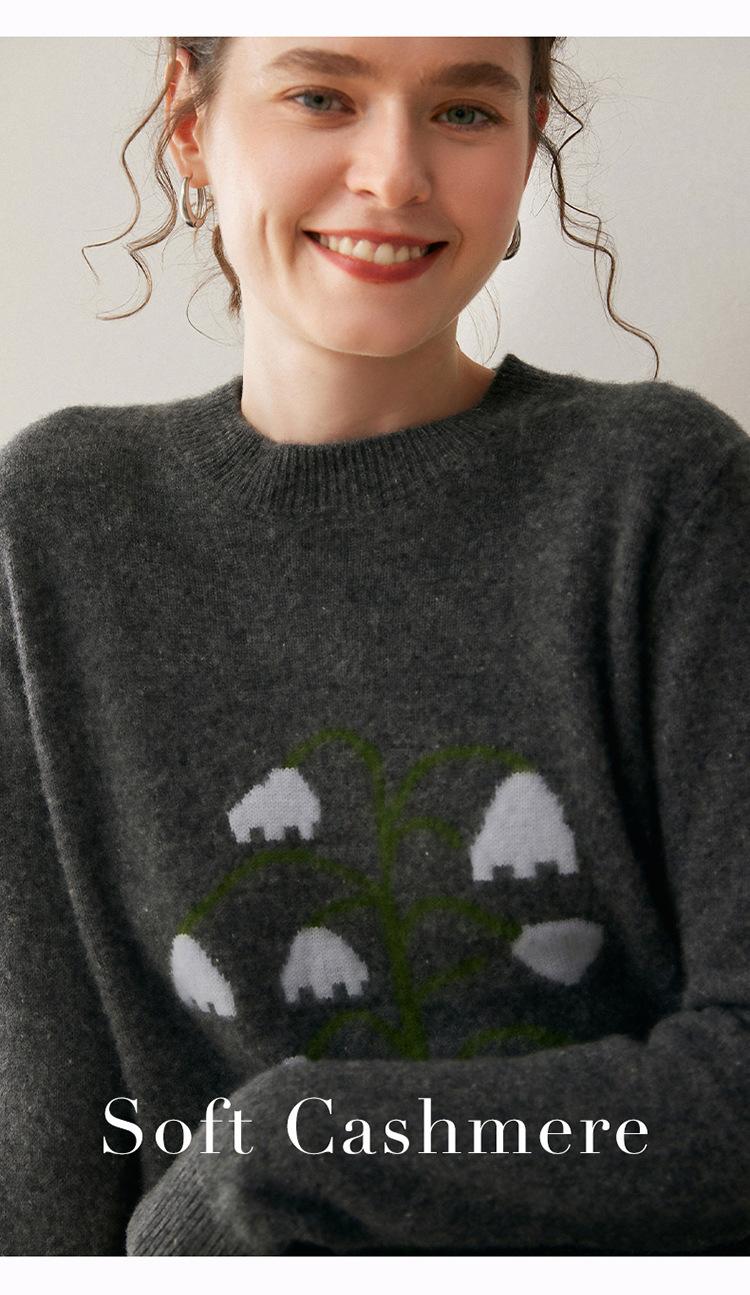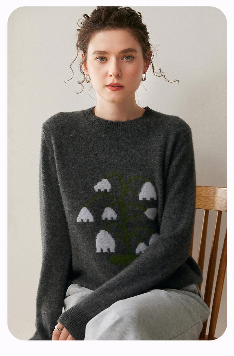 Suéter de Cachemira para Mujer Otoño/Invierno 2025 Cuello Redondo Bordado Jacquard Tejido Suéter de Cachemira Holgado Casual Top Básico