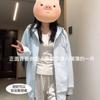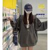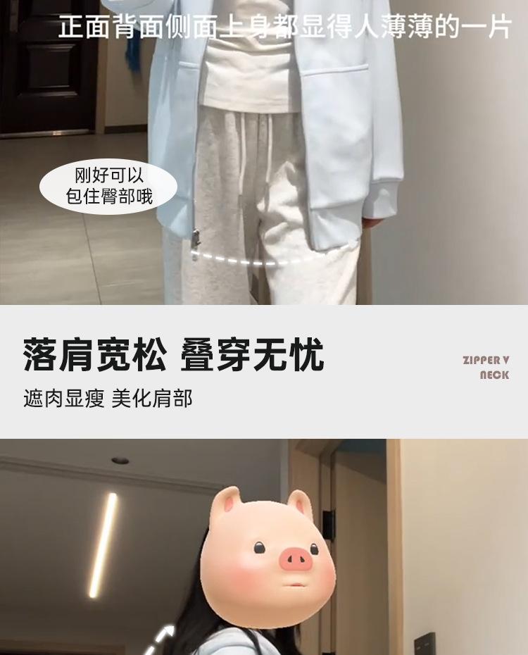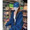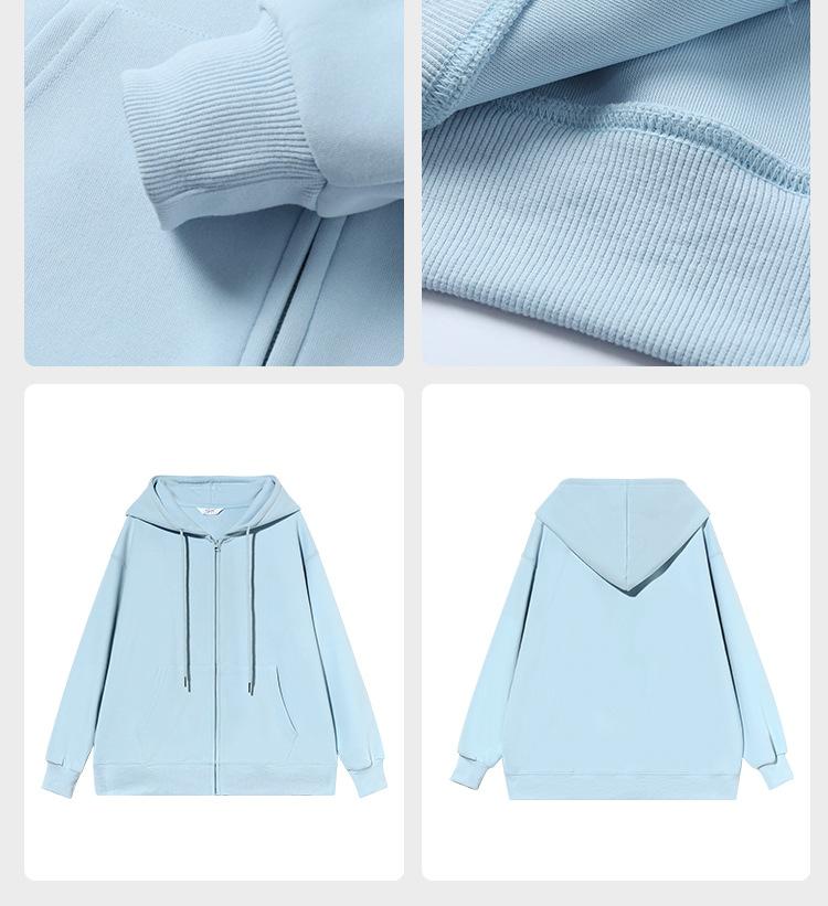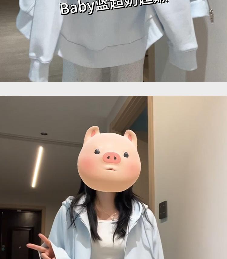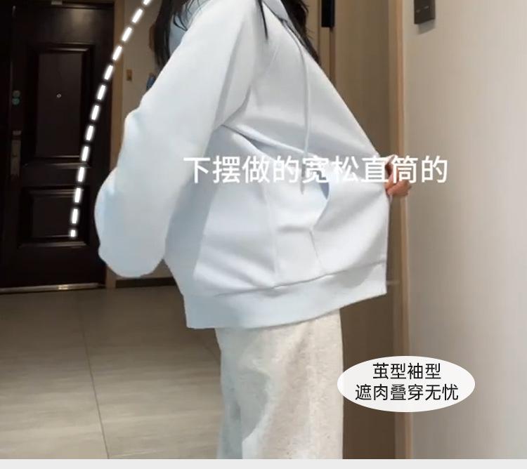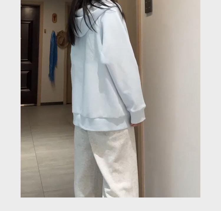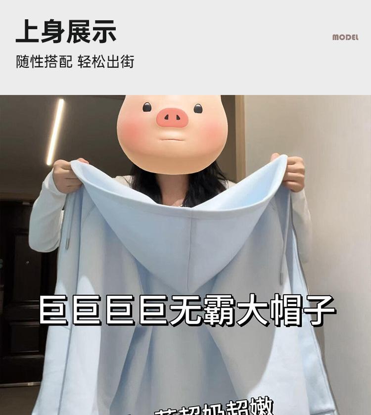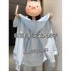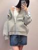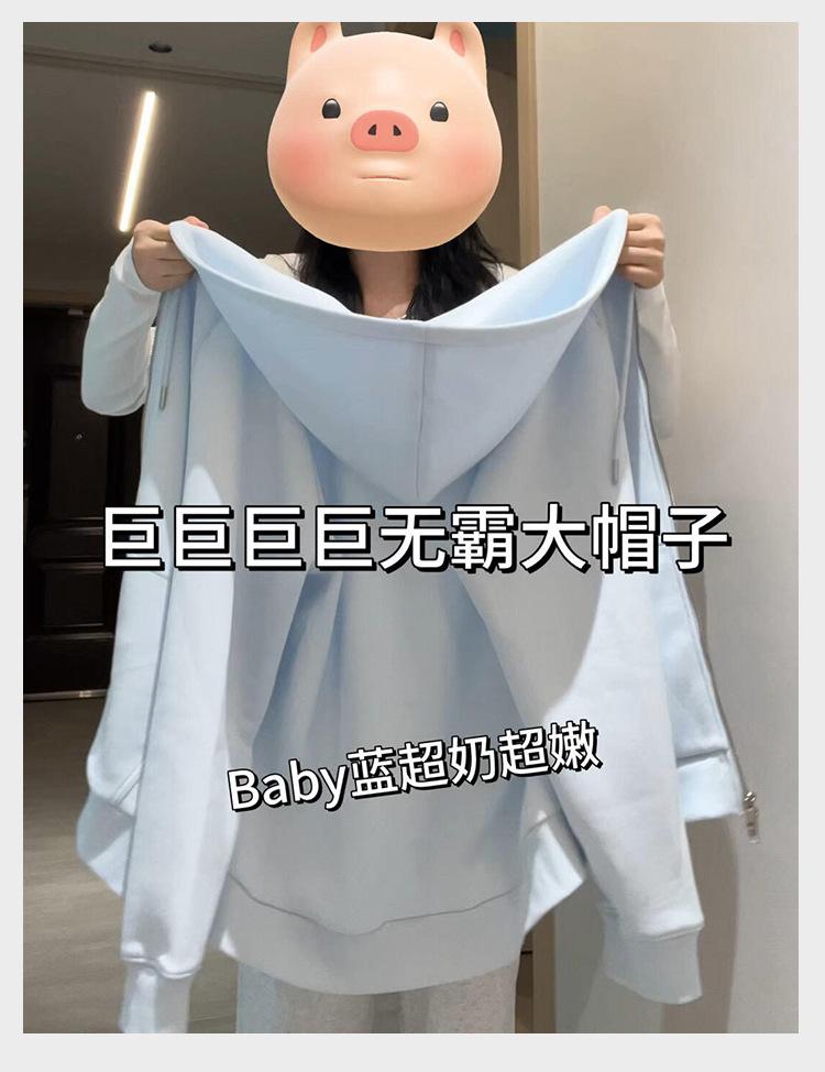 Chamarra Sudadera con Capucha Azul para Mujer Temporada Principios de Otoño Capucha Grande Estilo Americano Lazy Chic Suelta Cierre Manga Larga Cárdigan