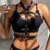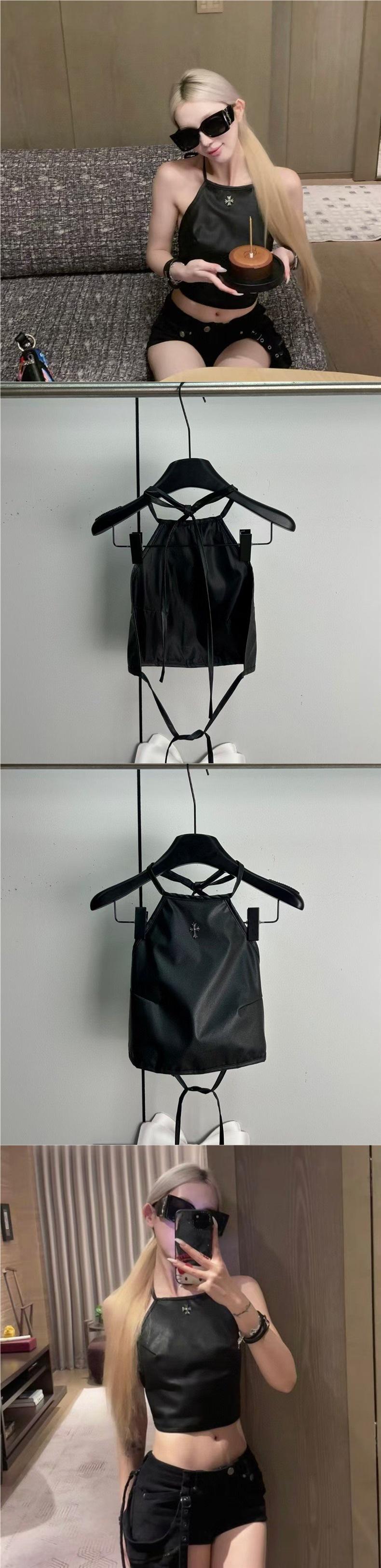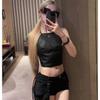 Halter de cuero con punto de cruz, banda para el vientre de cuero con tiras cruzadas en la espalda, diseño sexy de pura lujuria, top de tirantes ajustado para mujer