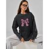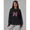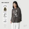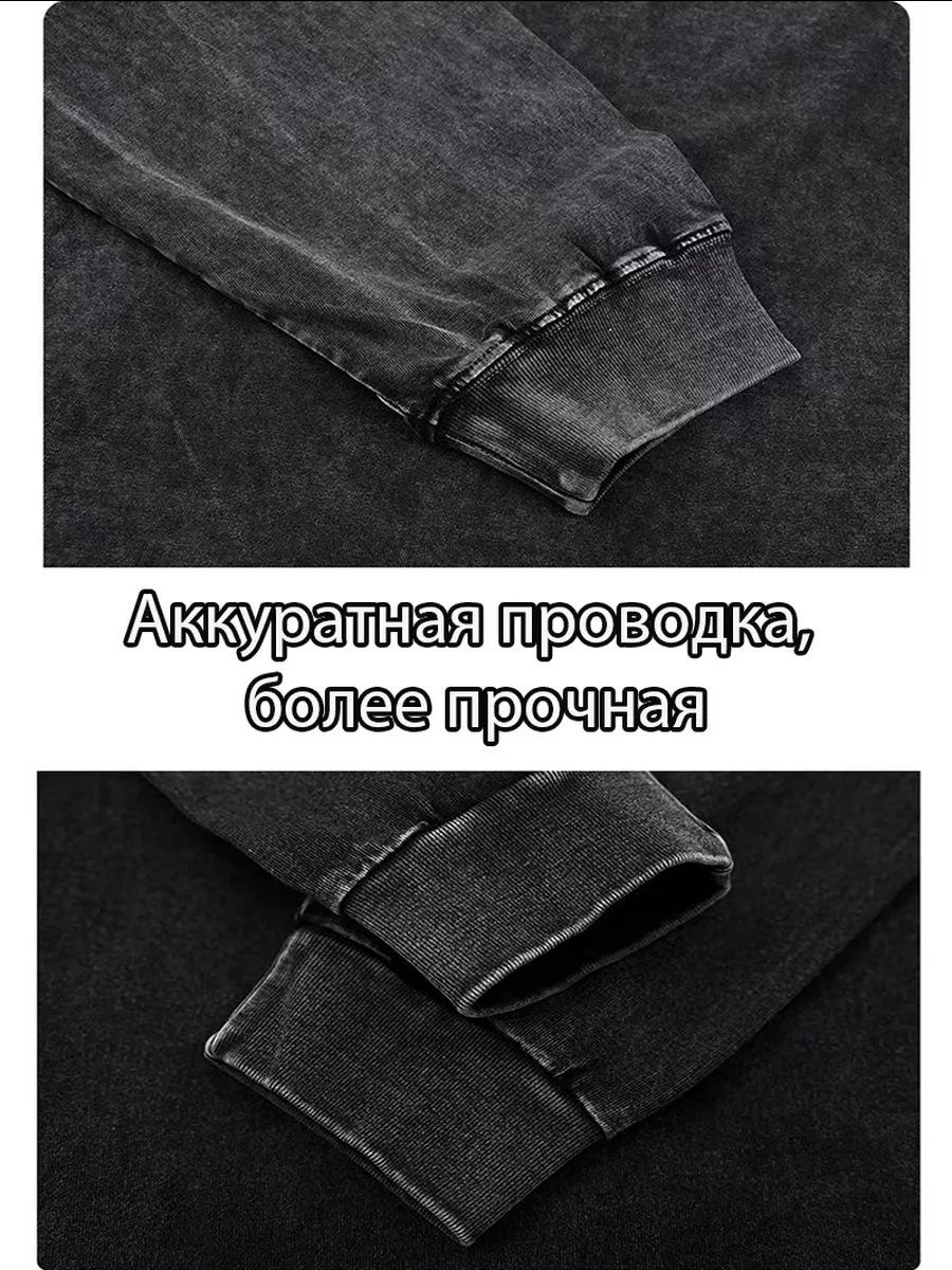 Camiseta de Manga Larga de Algodón Puro Lavado Negro Desgastado Retro Americano con Cordón Ajustable Moda Otoño Primavera Estampado Popular Top Adelgazante