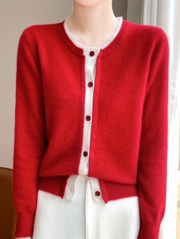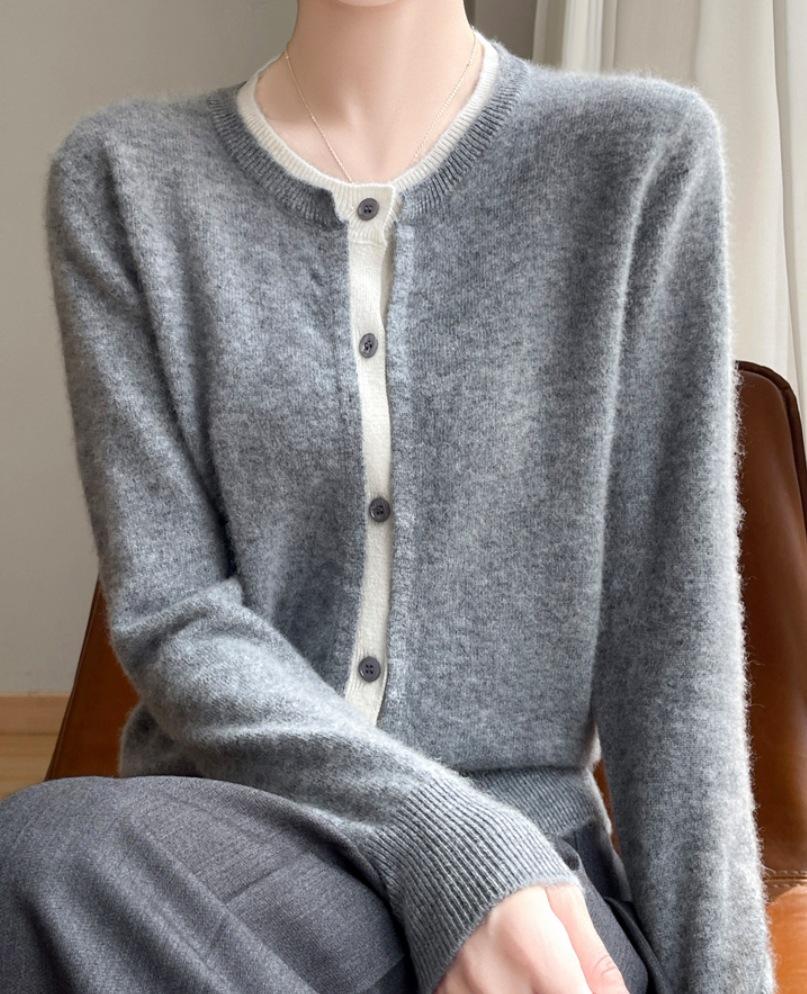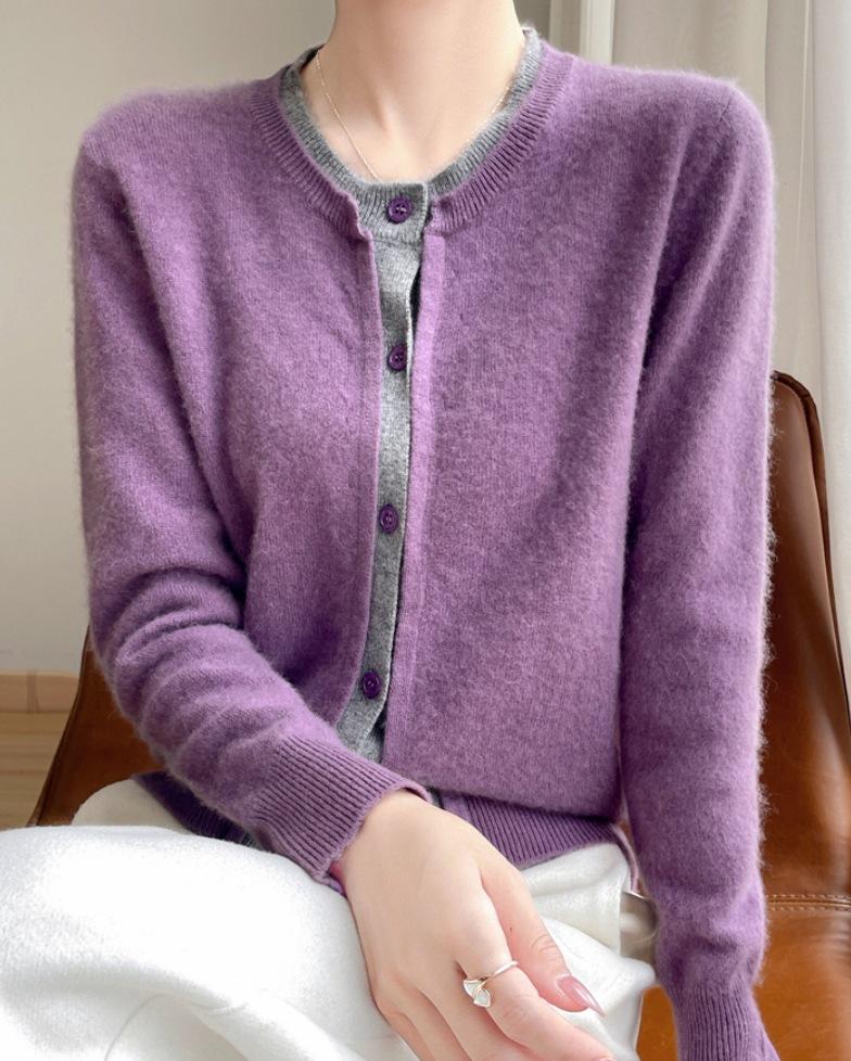 Cárdigan de punto de dos piezas falsas de estilo nuevo para primavera y otoño 2025 para mujer, suéter cálido con bloques de color, abrigo de punto suelto, temperamento versátil