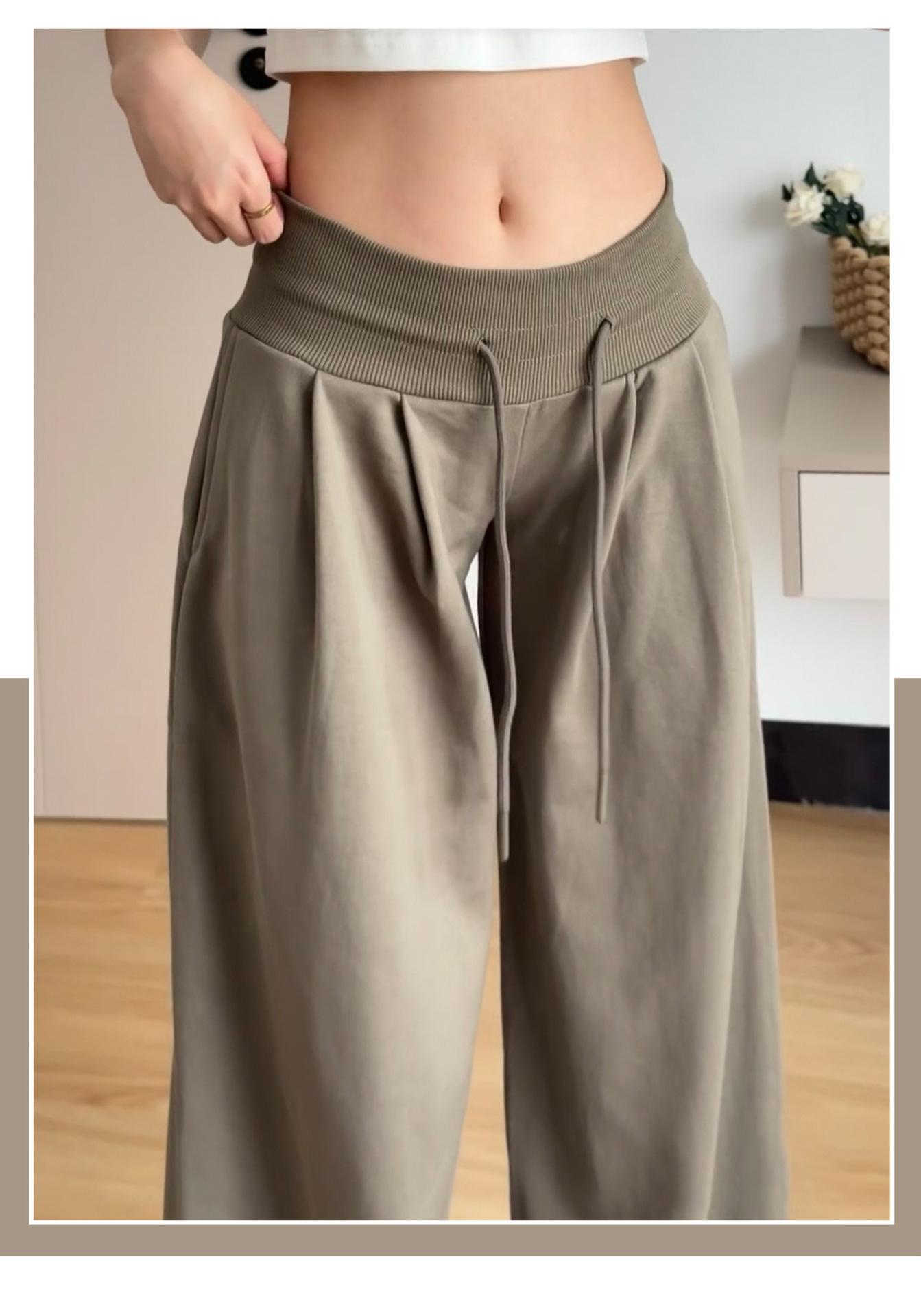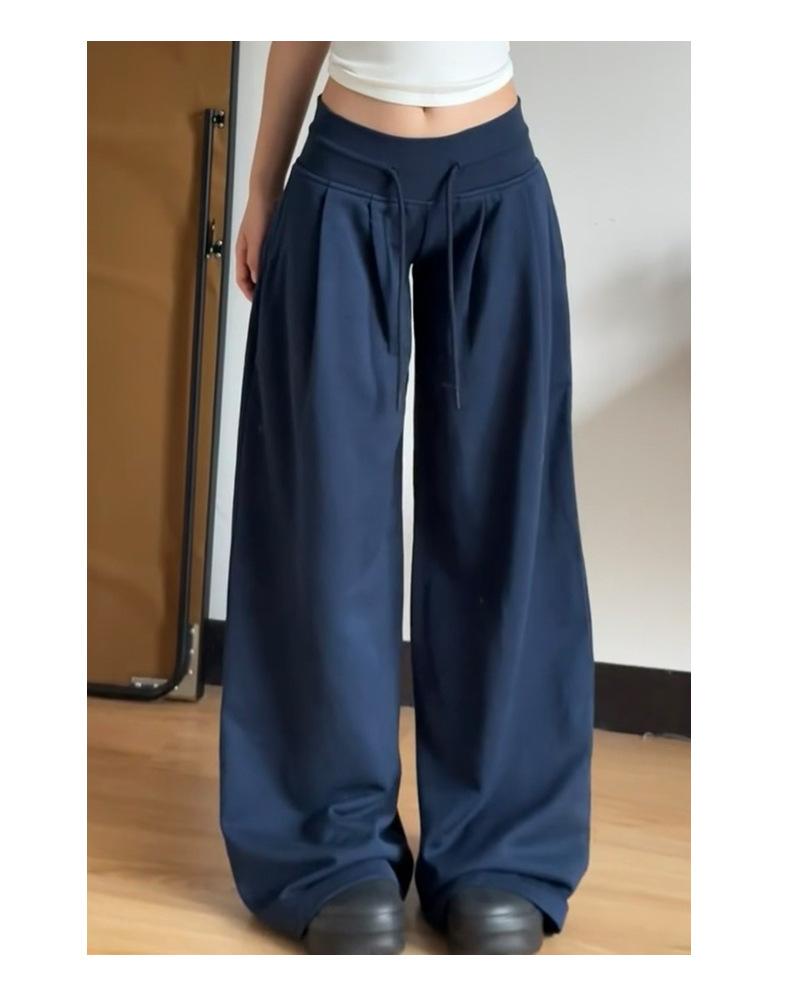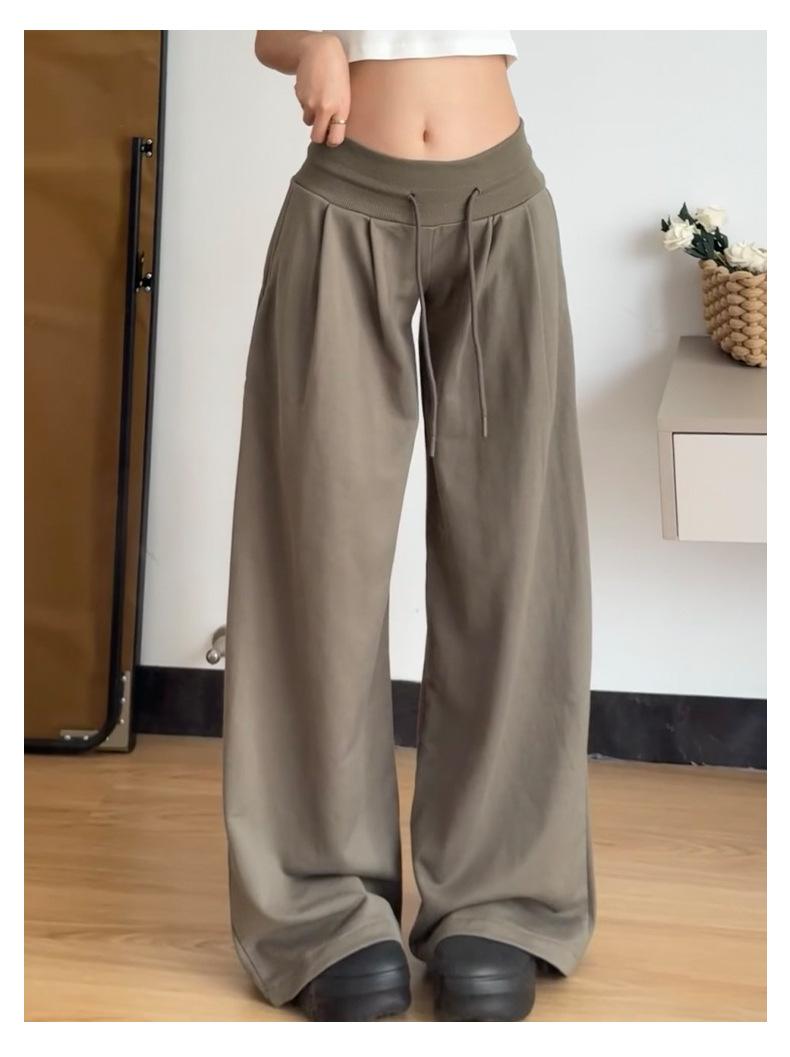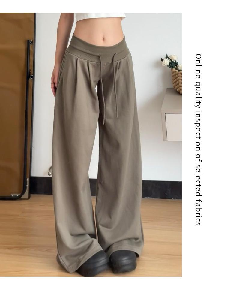 Pantalones Americanos Retro Holgados de Pierna Ancha para Mujer Otoño 2025 Nuevos Pantalones Casuales con Cordón de Cintura Baja Pantalones Deportivos con Caída Perezosa