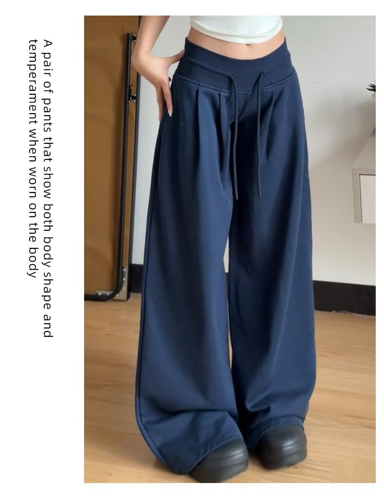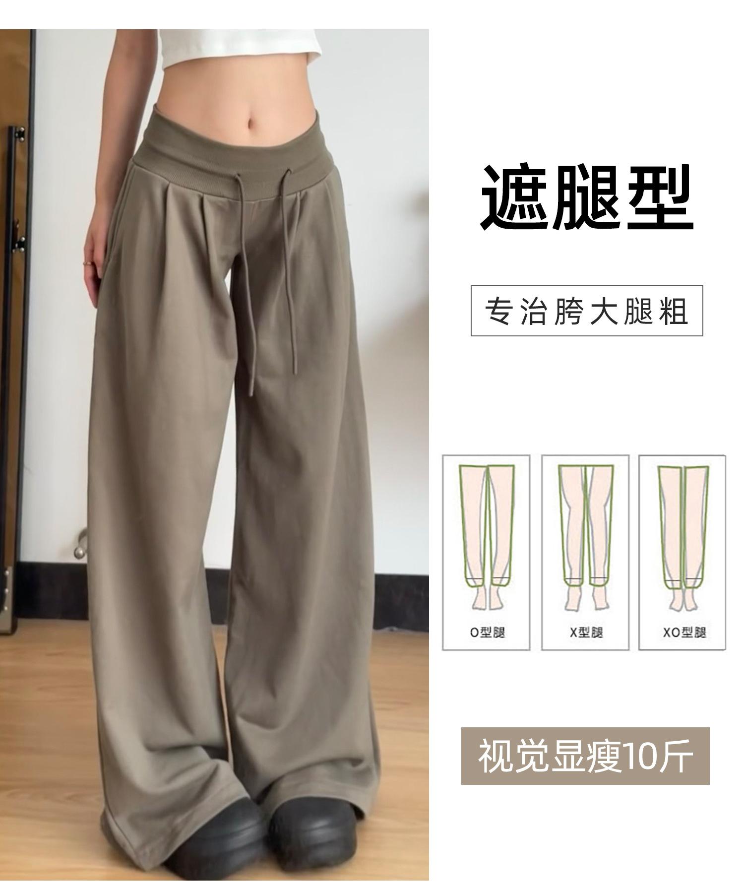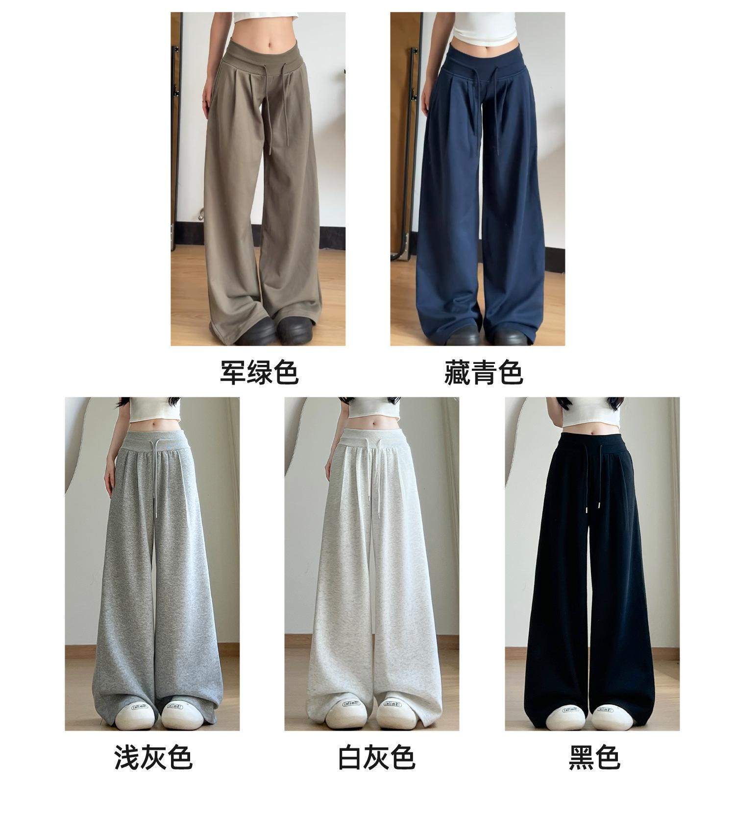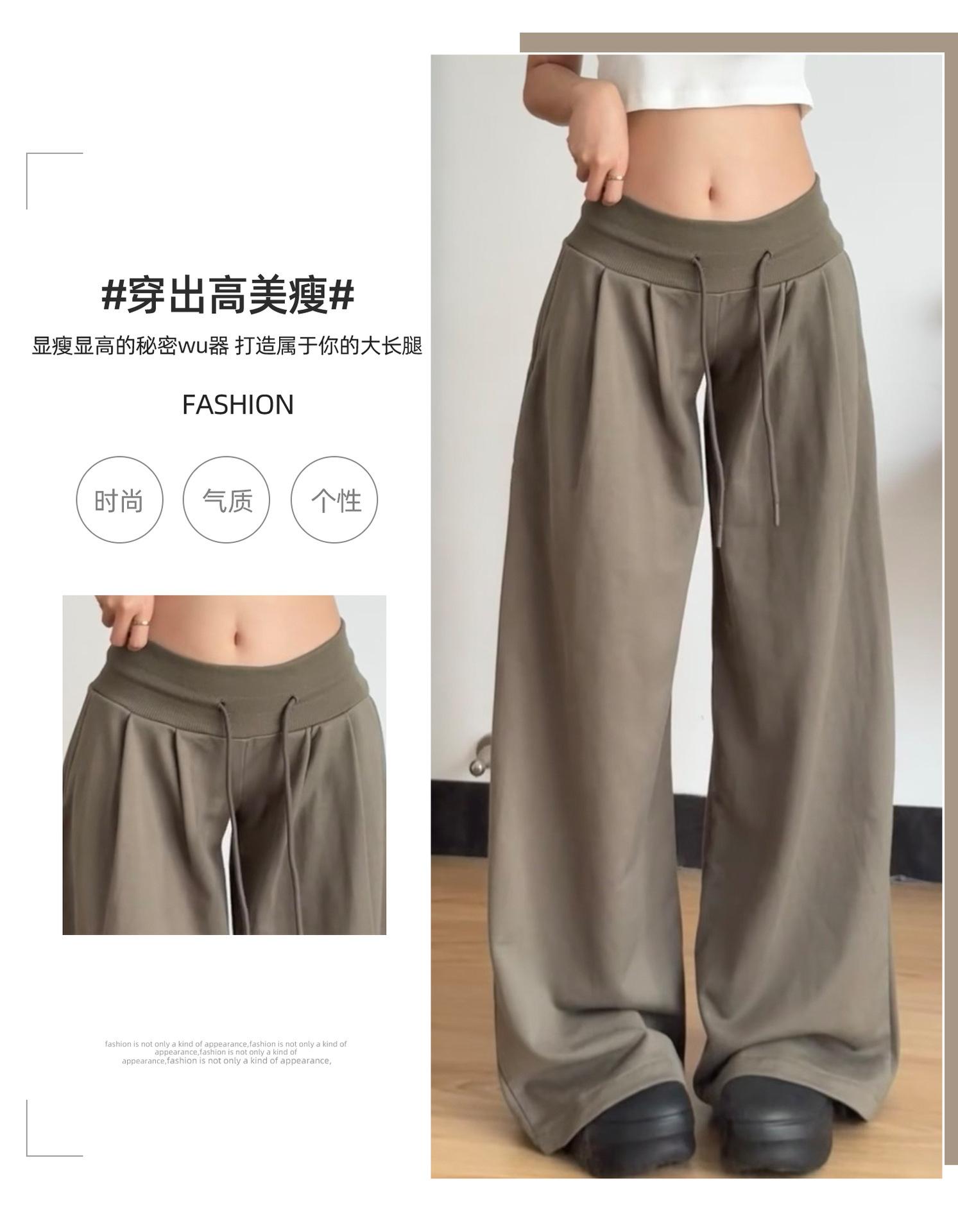 Pantalones Americanos Retro Holgados de Pierna Ancha para Mujer Otoño 2025 Nuevos Pantalones Casuales con Cordón de Cintura Baja Pantalones Deportivos con Caída Perezosa