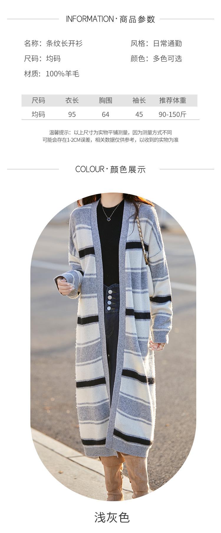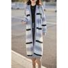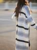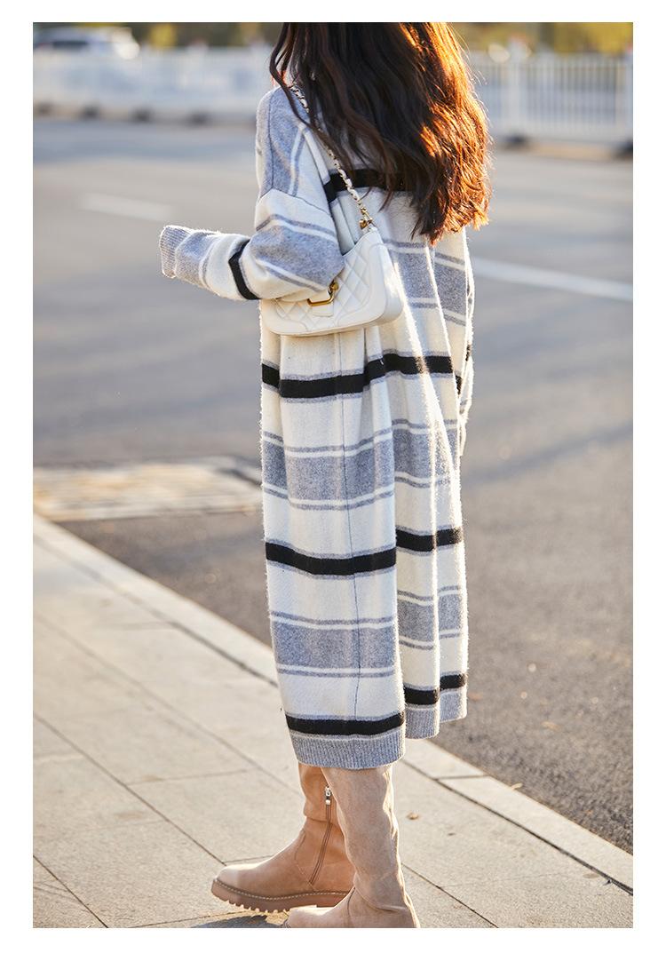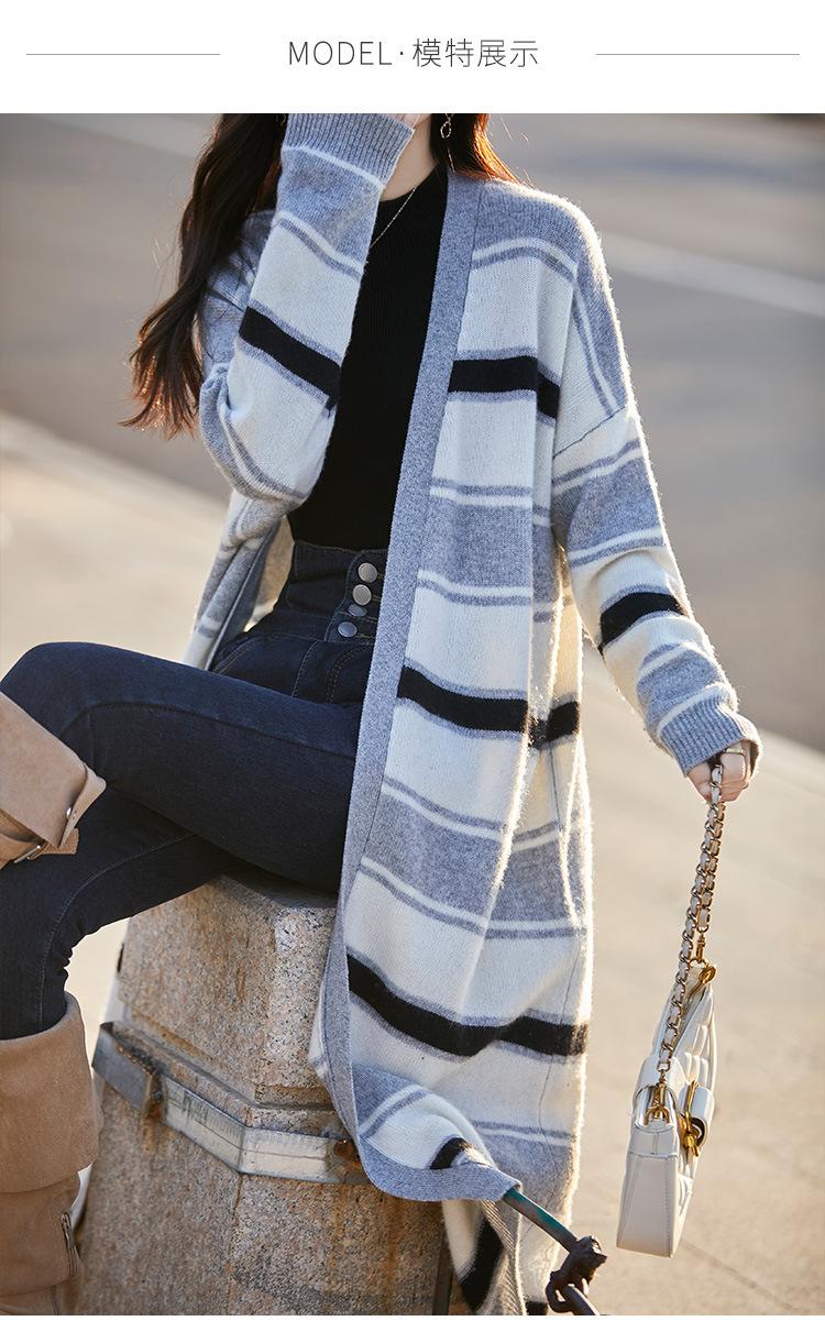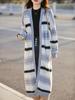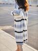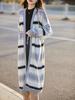 Cárdigan de Punto de Lana Pura Nuevo Otoño/Invierno 2025 Manga Larga Estilo Lazy para Mujer Abrigo Largo Suelto con Parches a Rayas