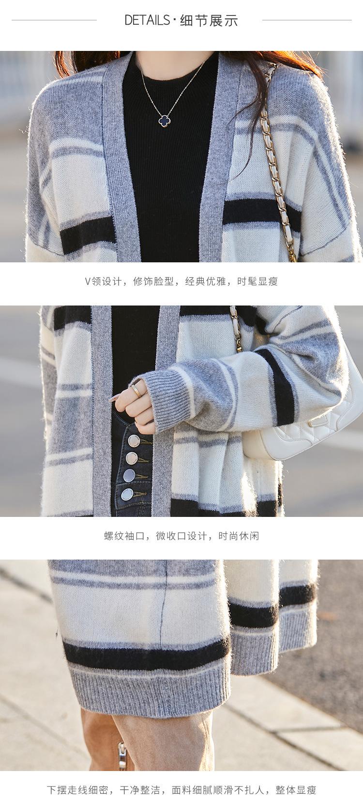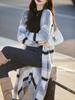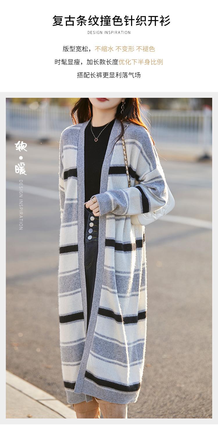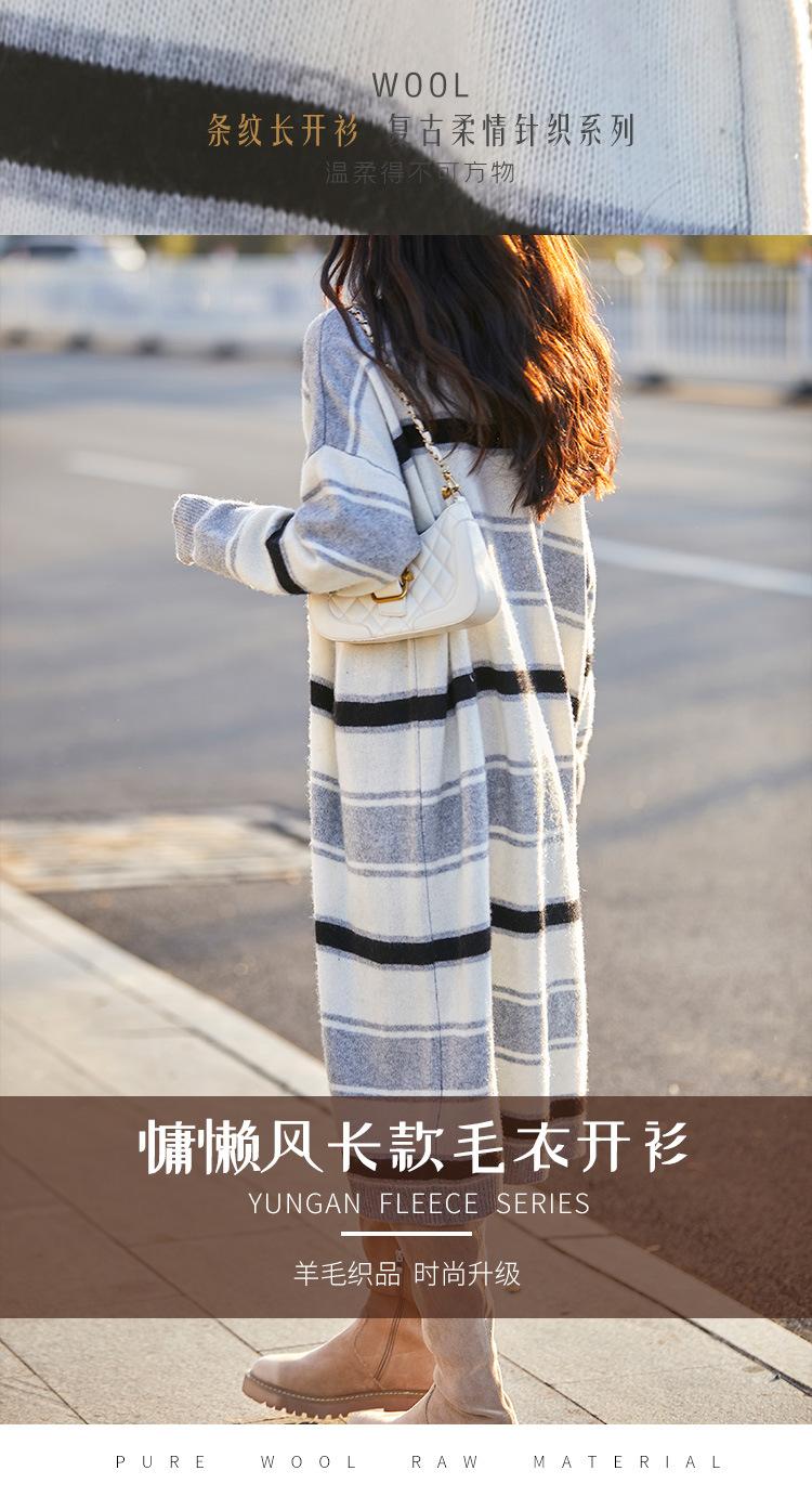 Cárdigan de Punto de Lana Pura Nuevo Otoño/Invierno 2025 Manga Larga Estilo Lazy para Mujer Abrigo Largo Suelto con Parches a Rayas