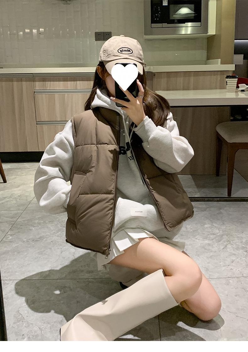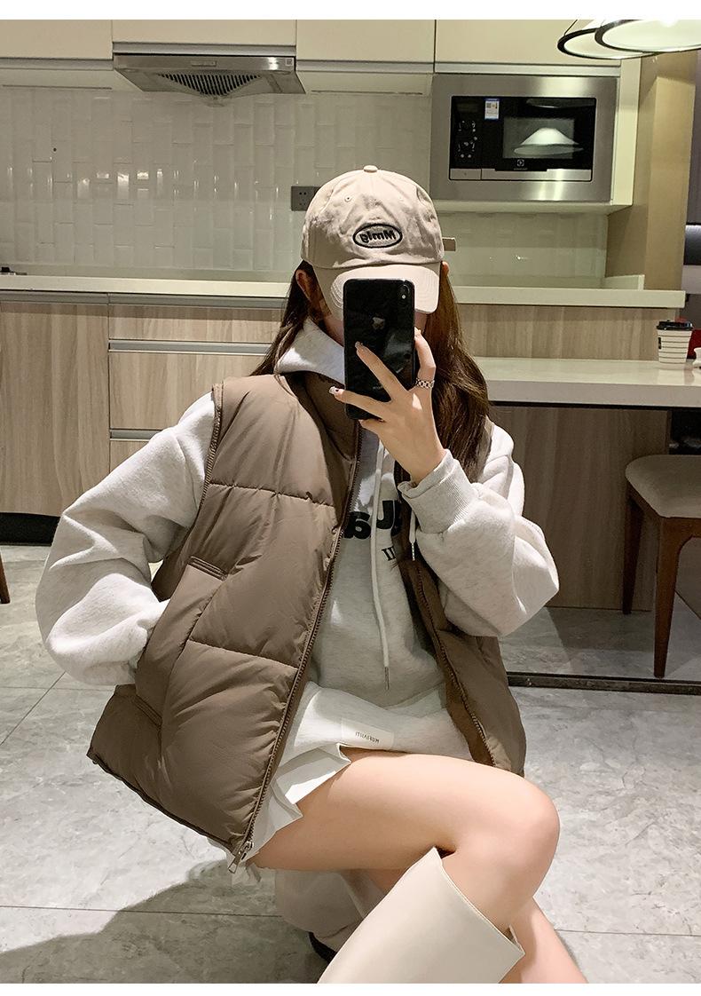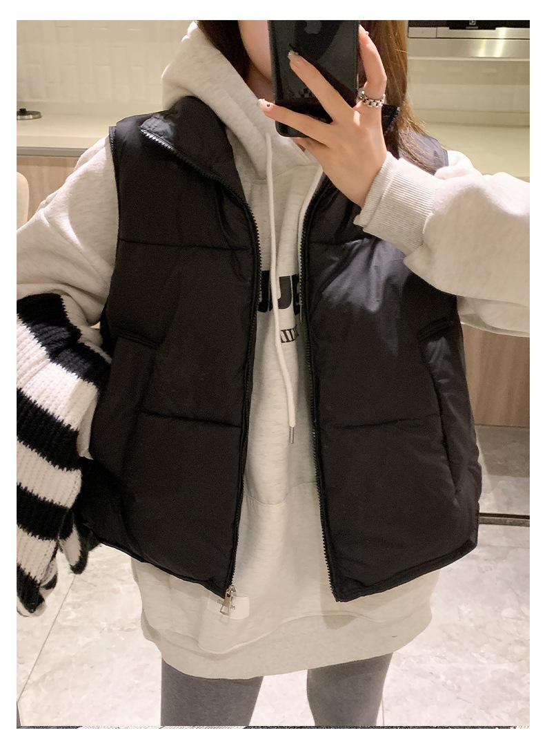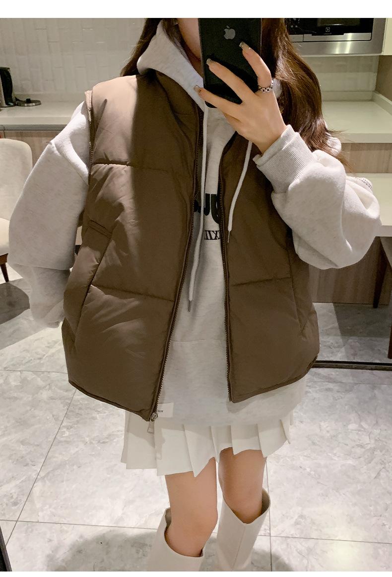 Chaleco de algodón para mujer otoño e invierno 2023 nuevo estilo a prueba de frío cuello alto color sólido versátil casual holgado moderno chaleco de algodón ropa exterior