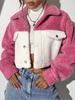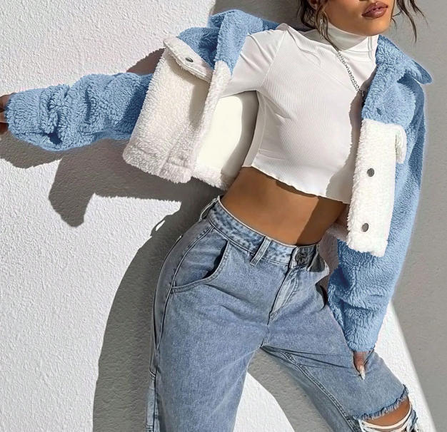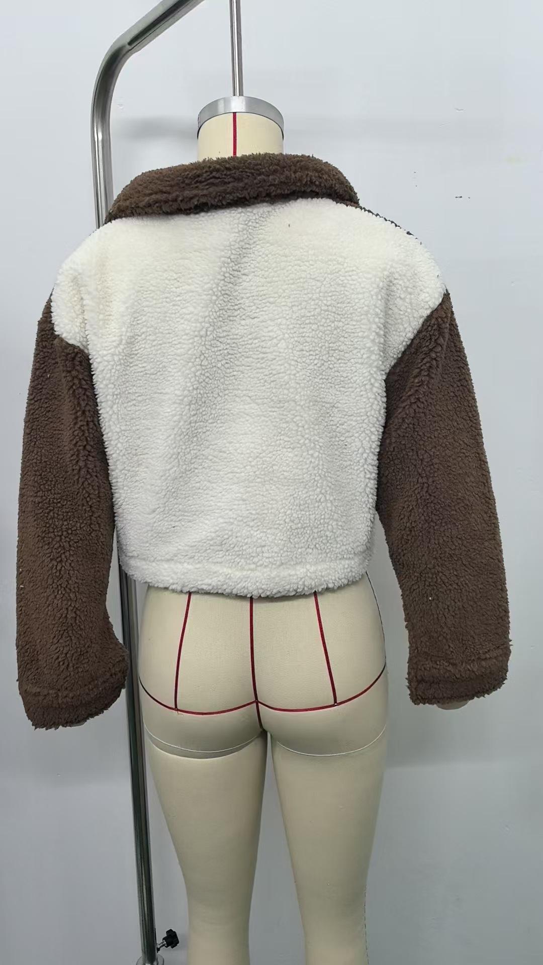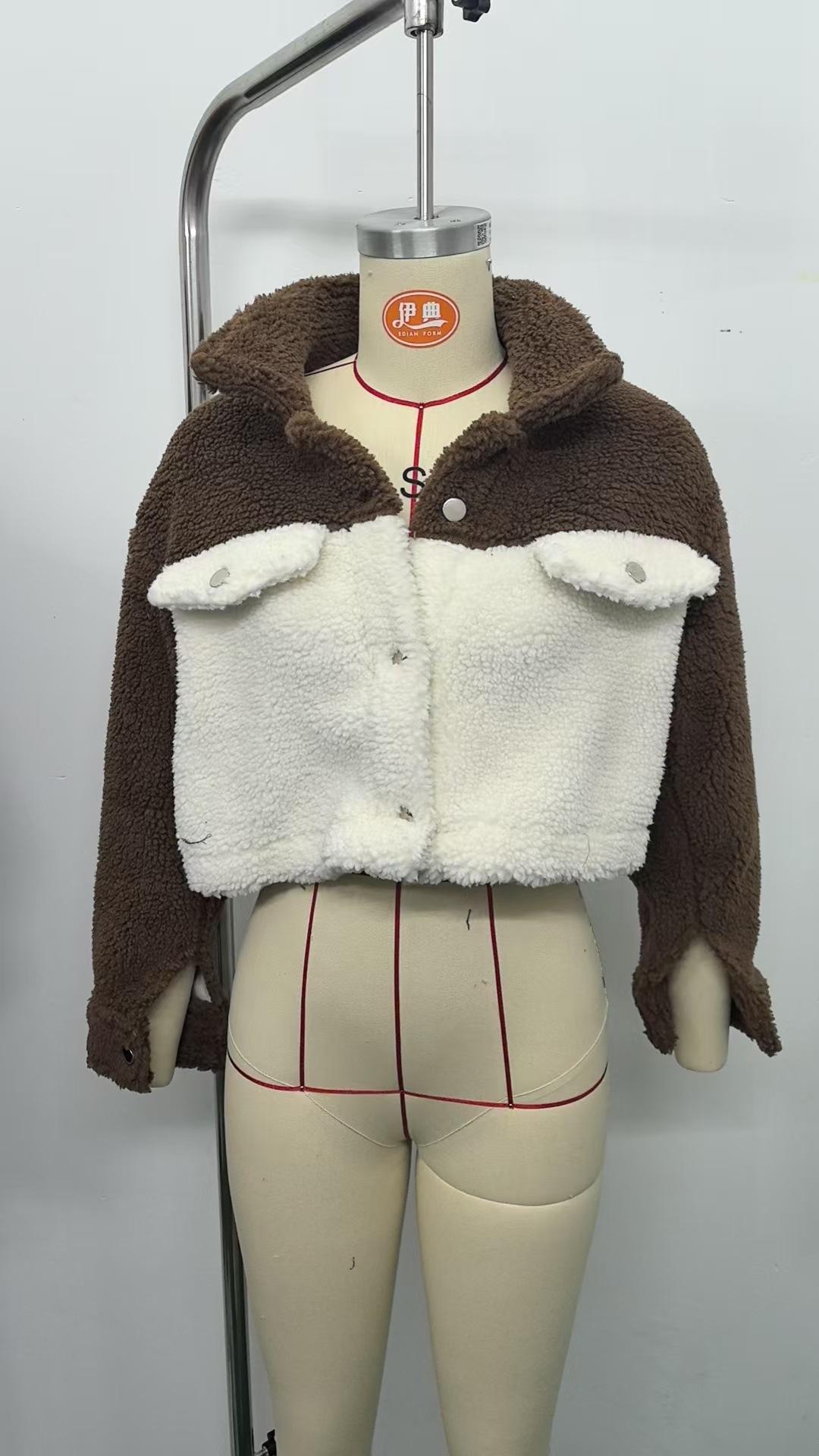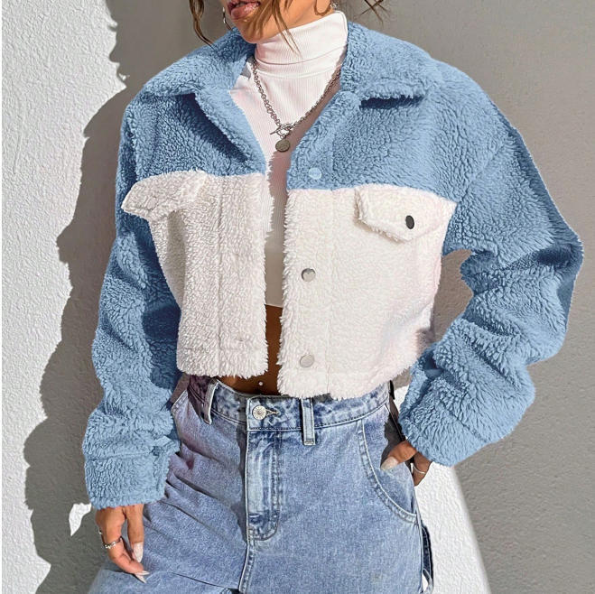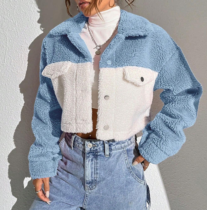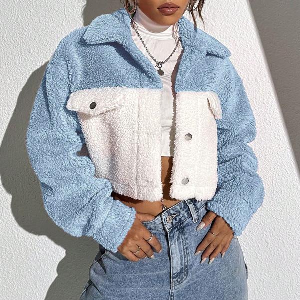 Cárdigan de Felpa Compuesta Popular de Venta Caliente Transfronterizo Europeo y Americano con Solapa y Empalme Casual para Mujer Chaqueta Aliexpress Estación Independiente