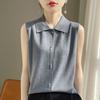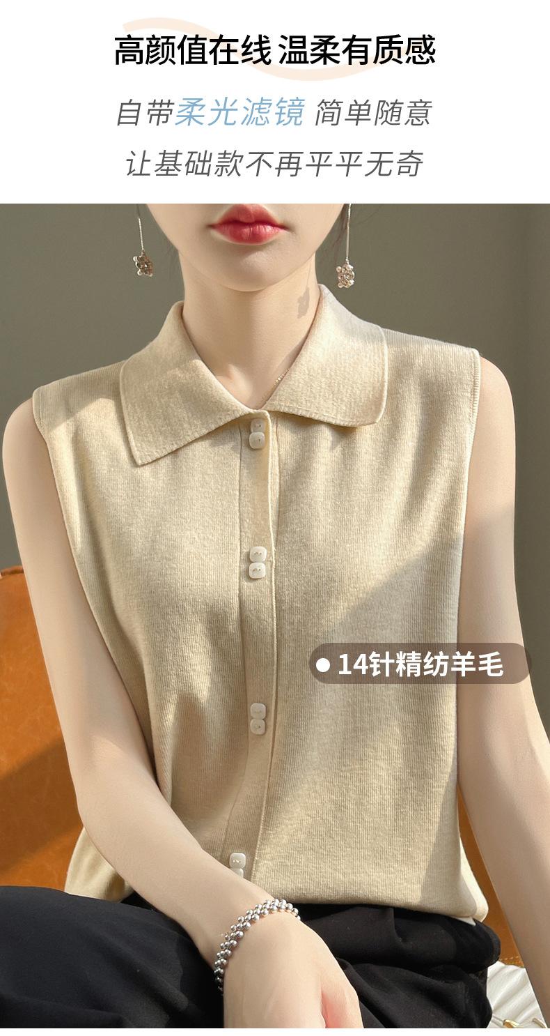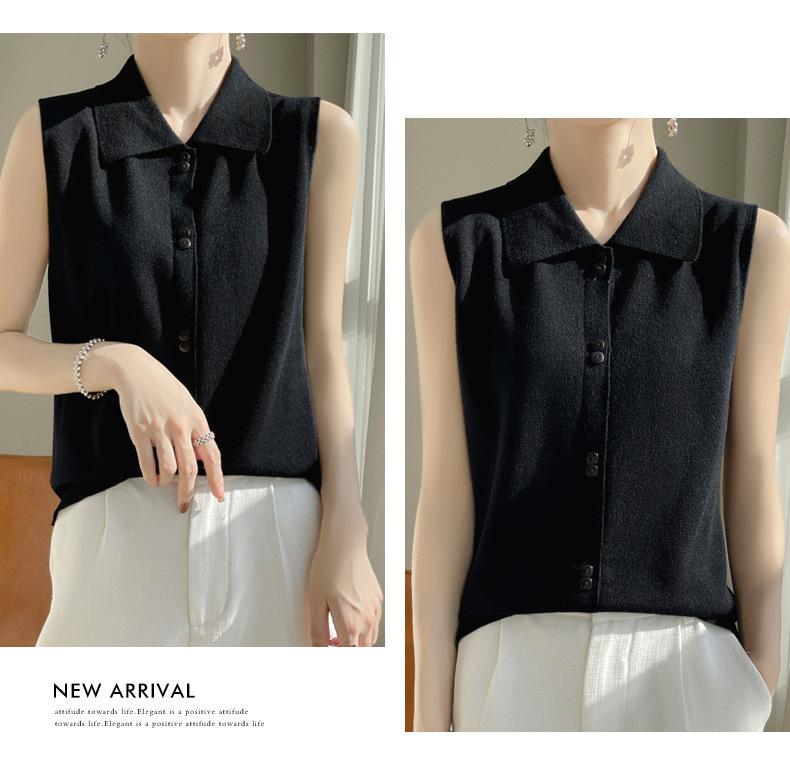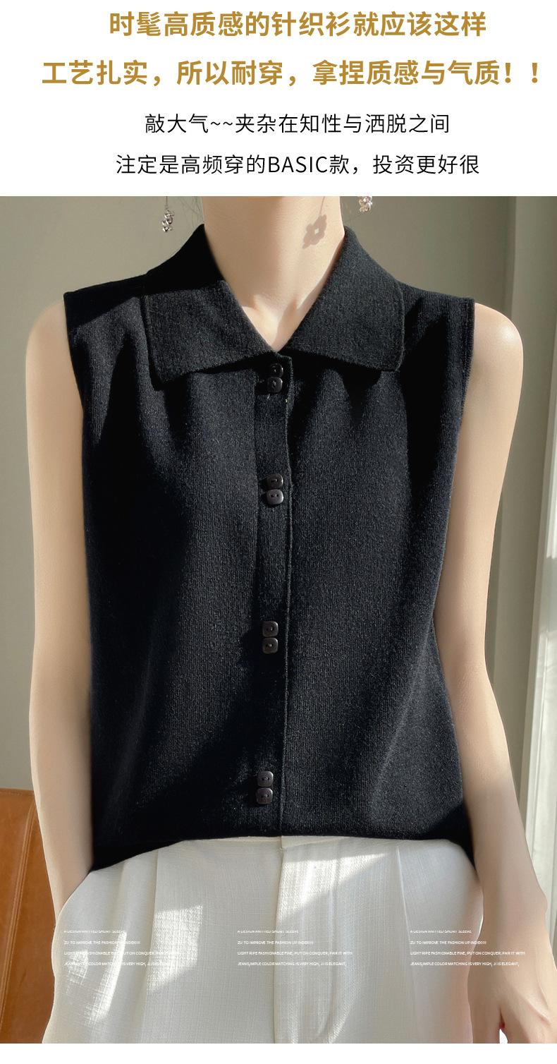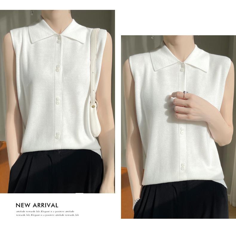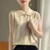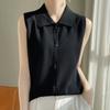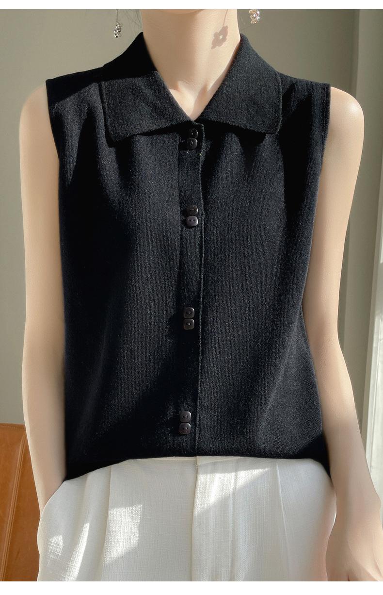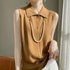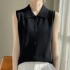 2025 Principios de Otoño Nuevo Solapa Tejido Fino de Lana Merino Prendas de Punto Suéter de Punto sin Mangas Holgado Casual Básico para Mujer
