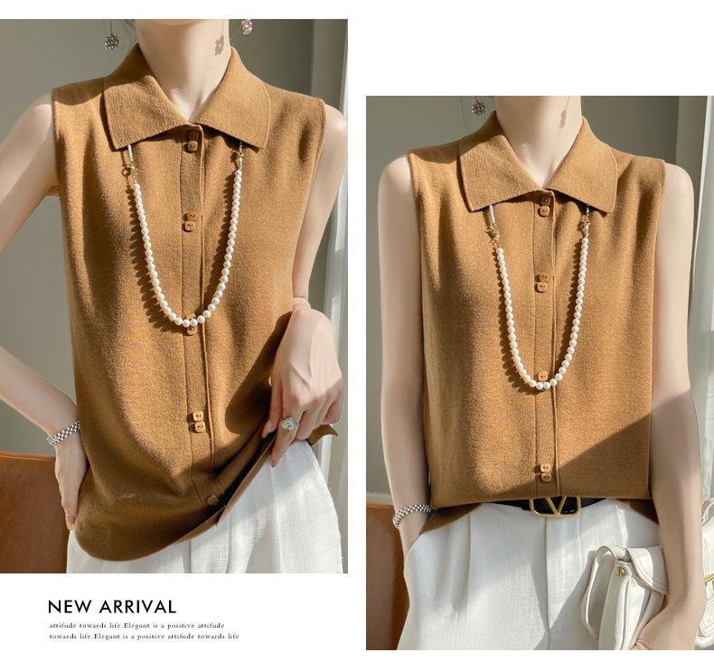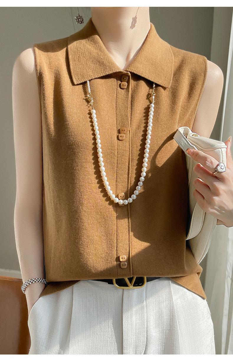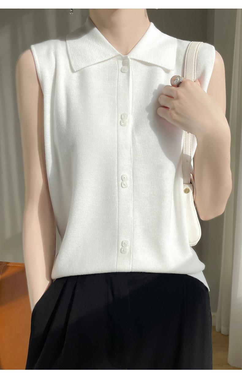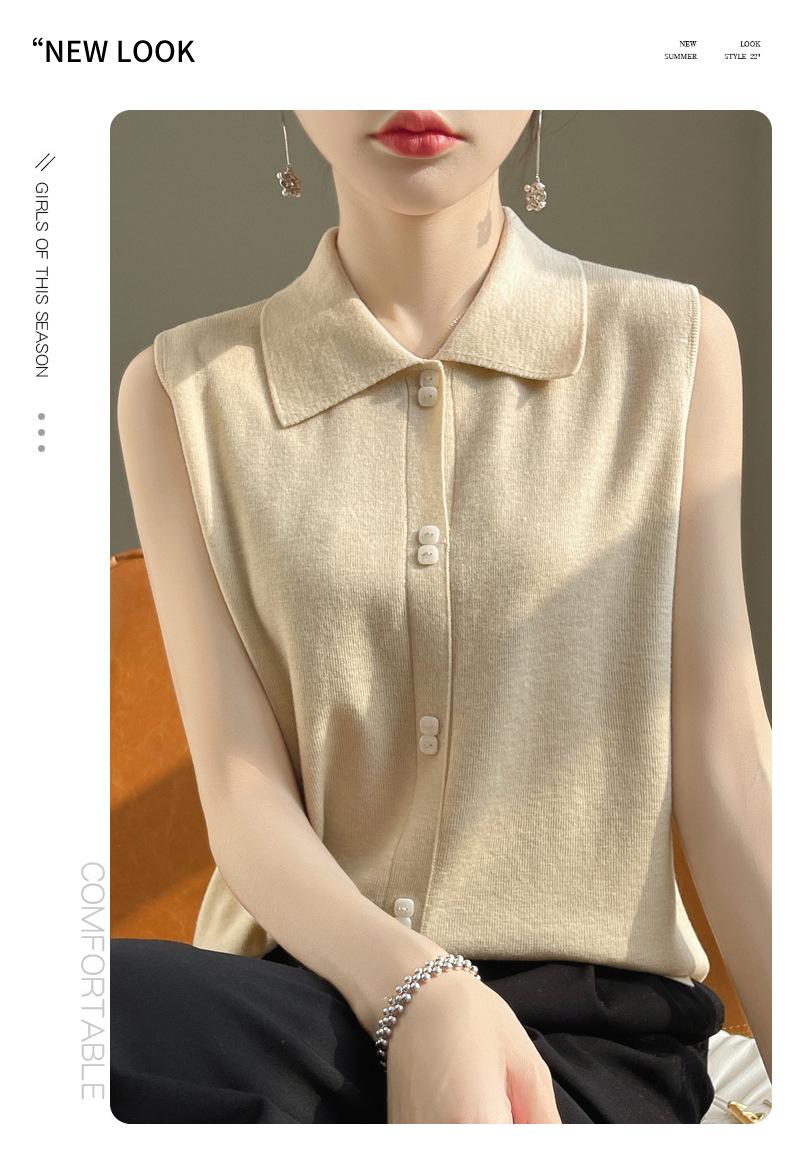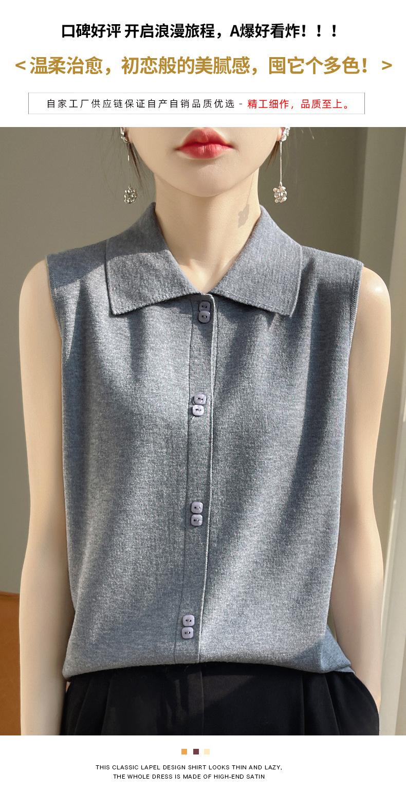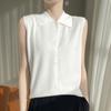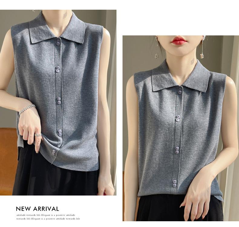 2025 Principios de Otoño Nuevo Solapa Tejido Fino de Lana Merino Prendas de Punto Suéter de Punto sin Mangas Holgado Casual Básico para Mujer