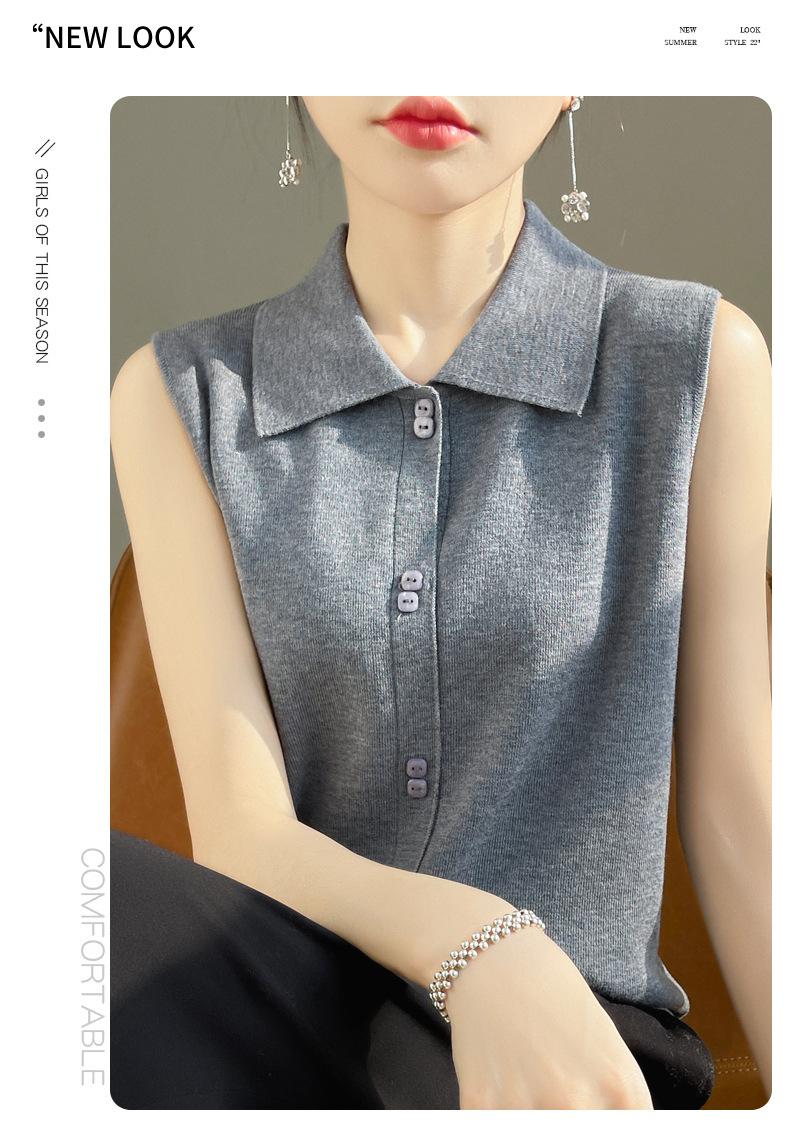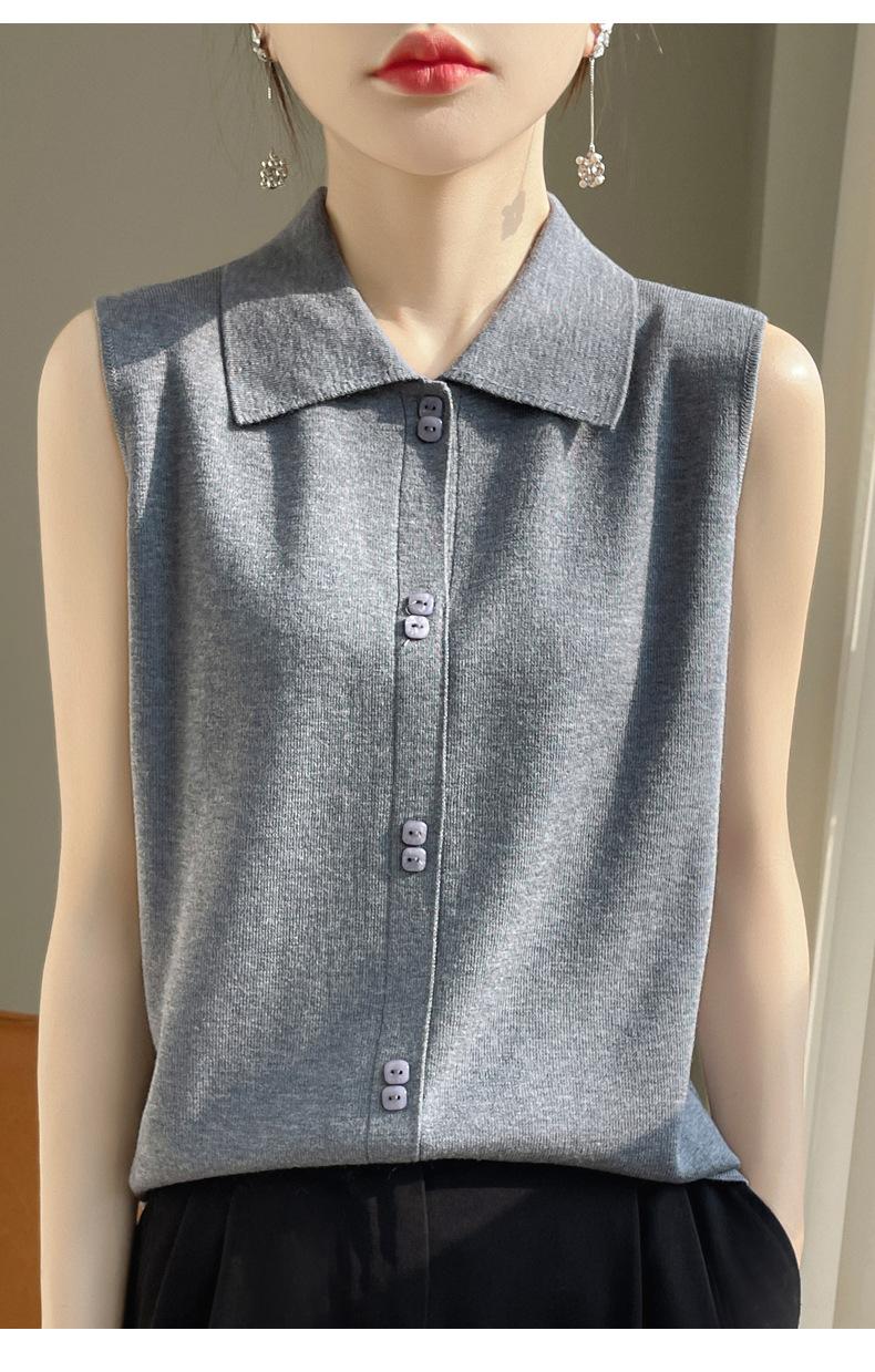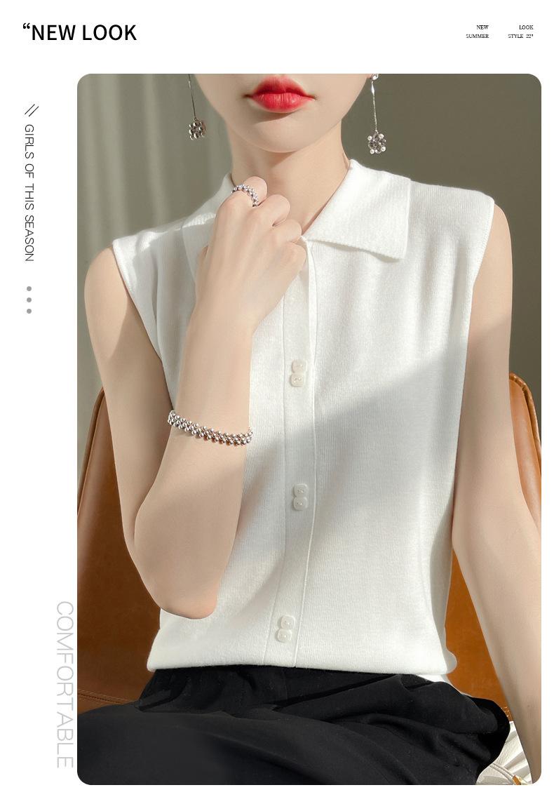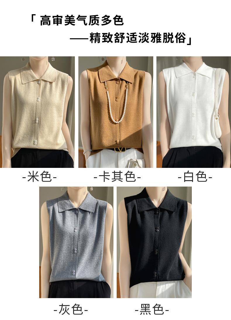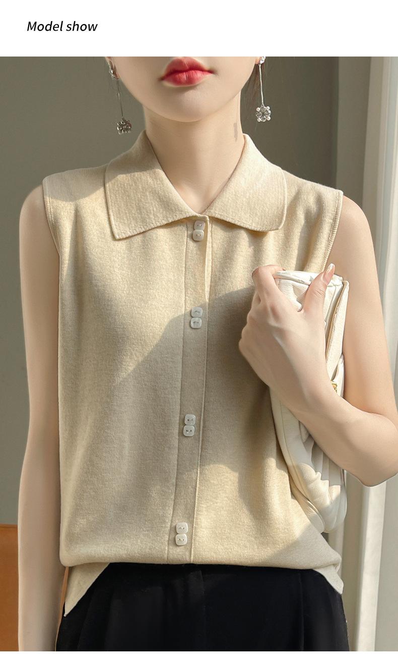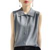 2025 Principios de Otoño Nuevo Solapa Tejido Fino de Lana Merino Prendas de Punto Suéter de Punto sin Mangas Holgado Casual Básico para Mujer