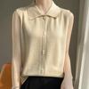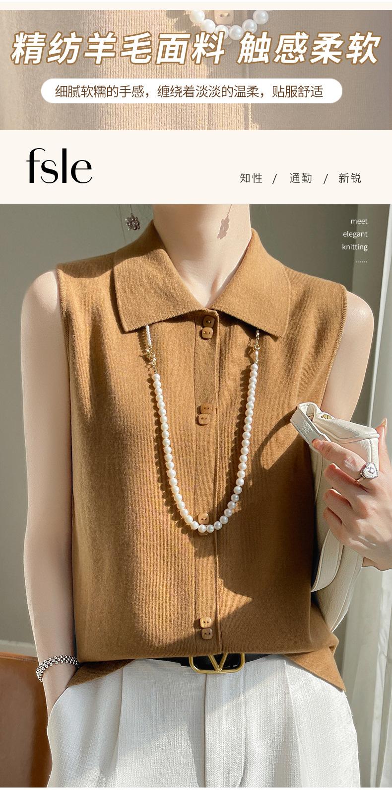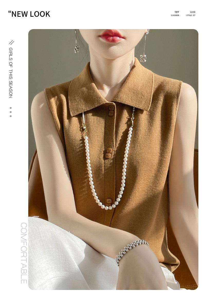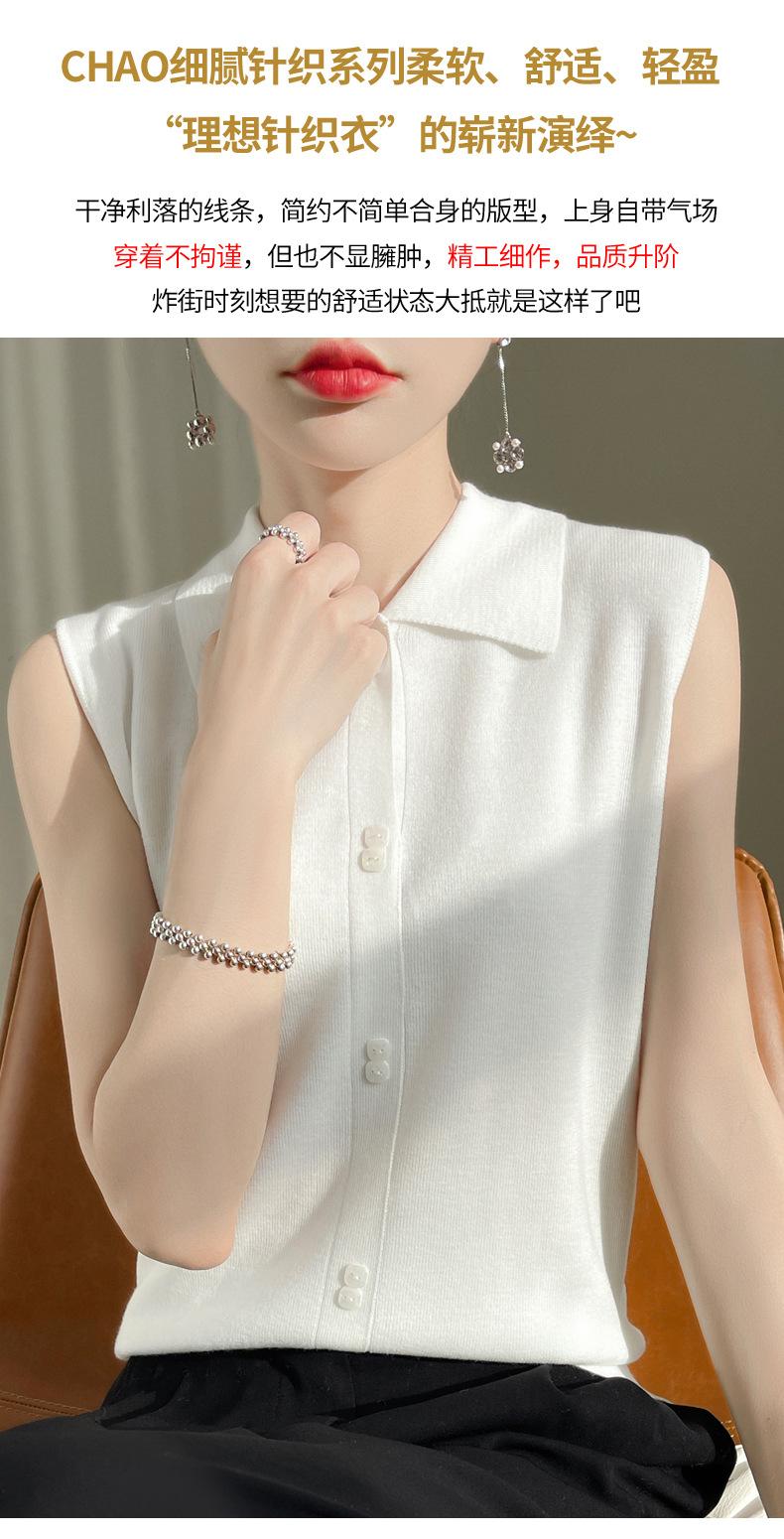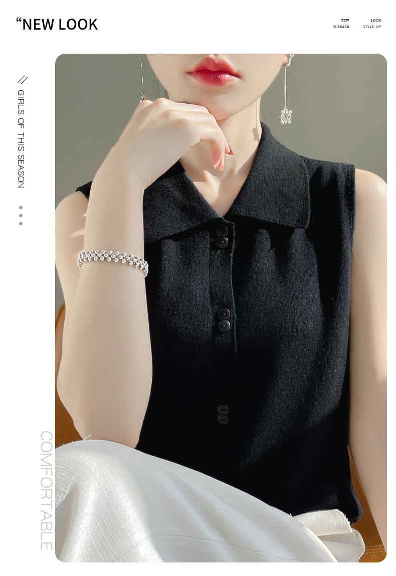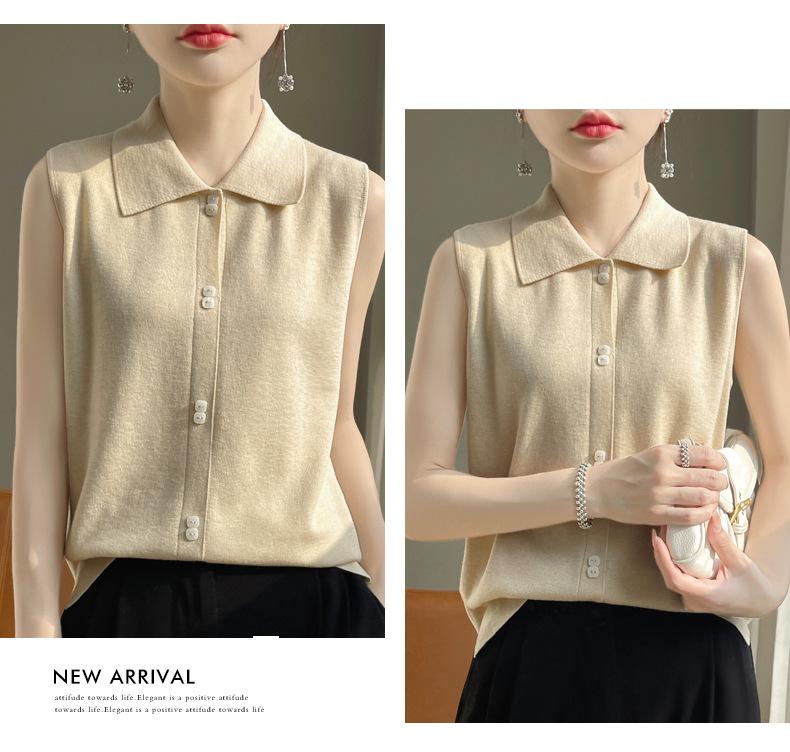 2025 Principios de Otoño Nuevo Solapa Tejido Fino de Lana Merino Prendas de Punto Suéter de Punto sin Mangas Holgado Casual Básico para Mujer