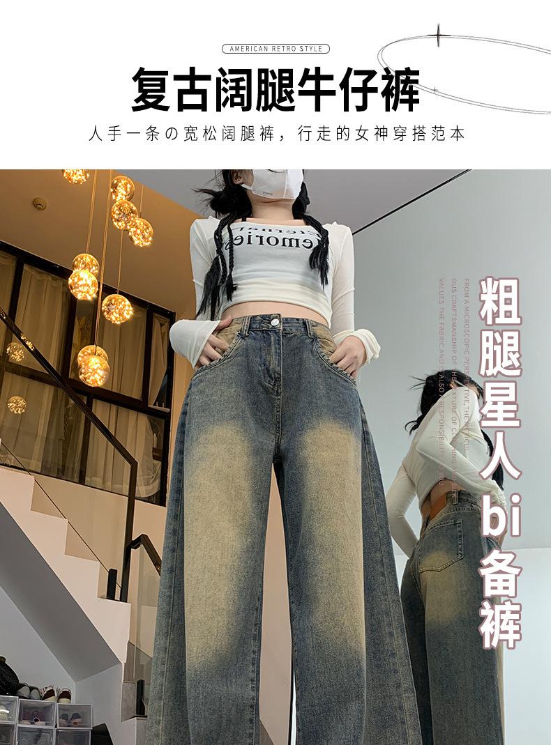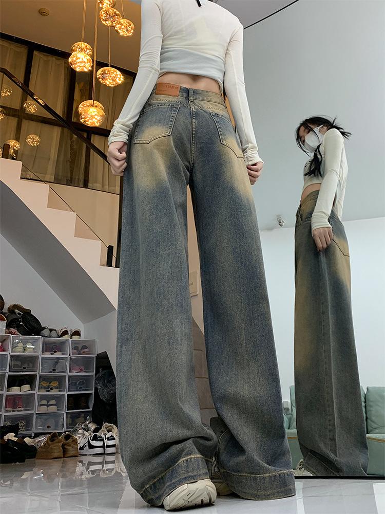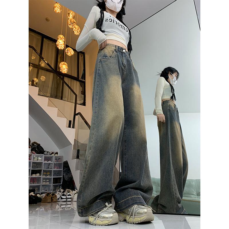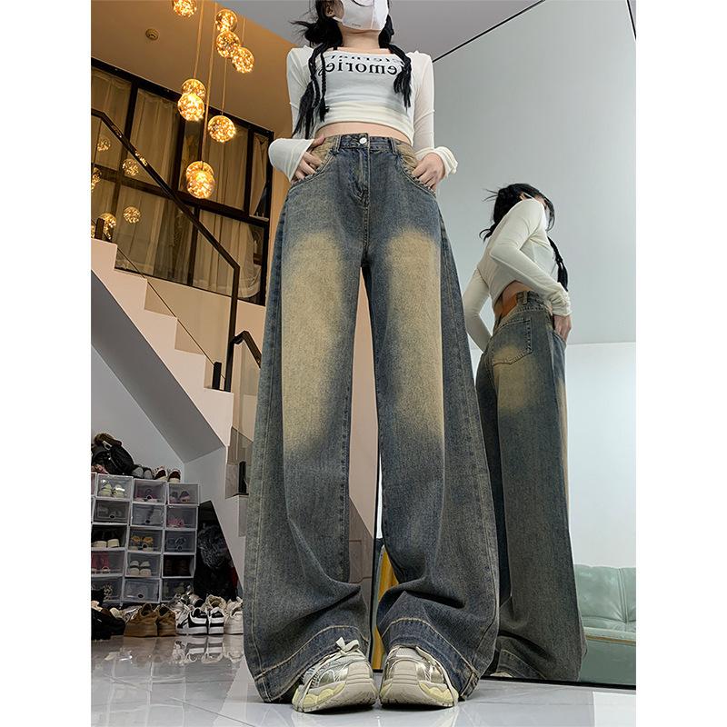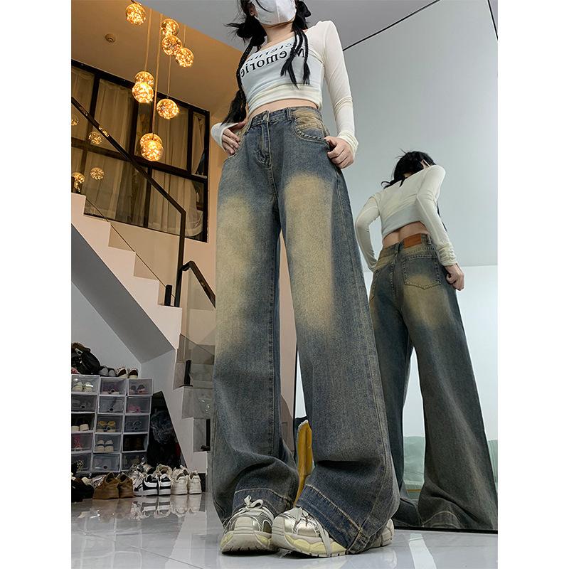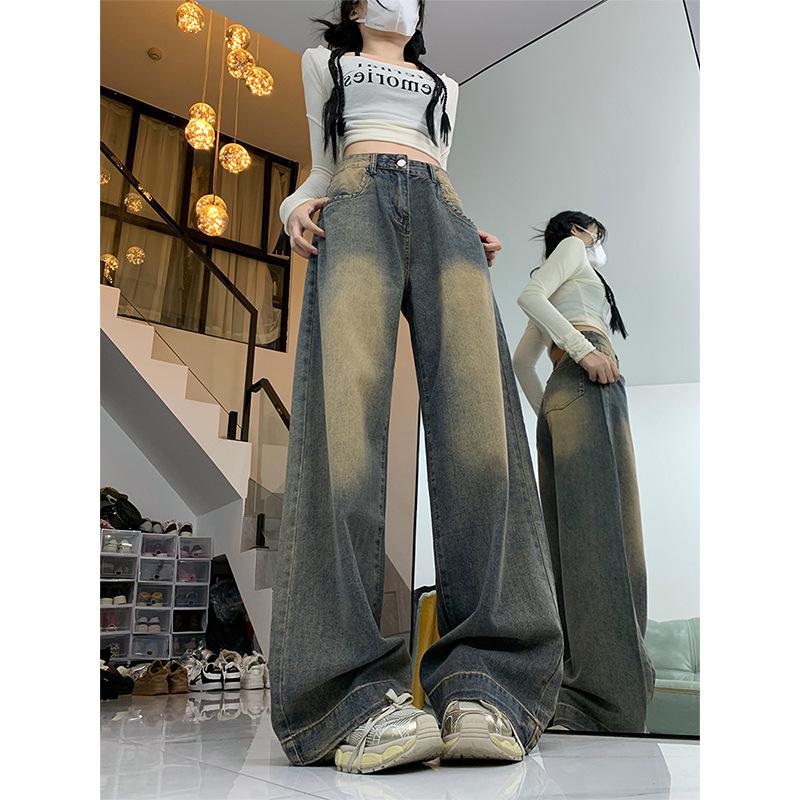 Jeans Retro Anchos Nuevos 2025 para Mujer Sueltos Adelgazantes de Cintura Alta con Caída Verano Americanos Rectos Pantalones Largos hasta el Piso