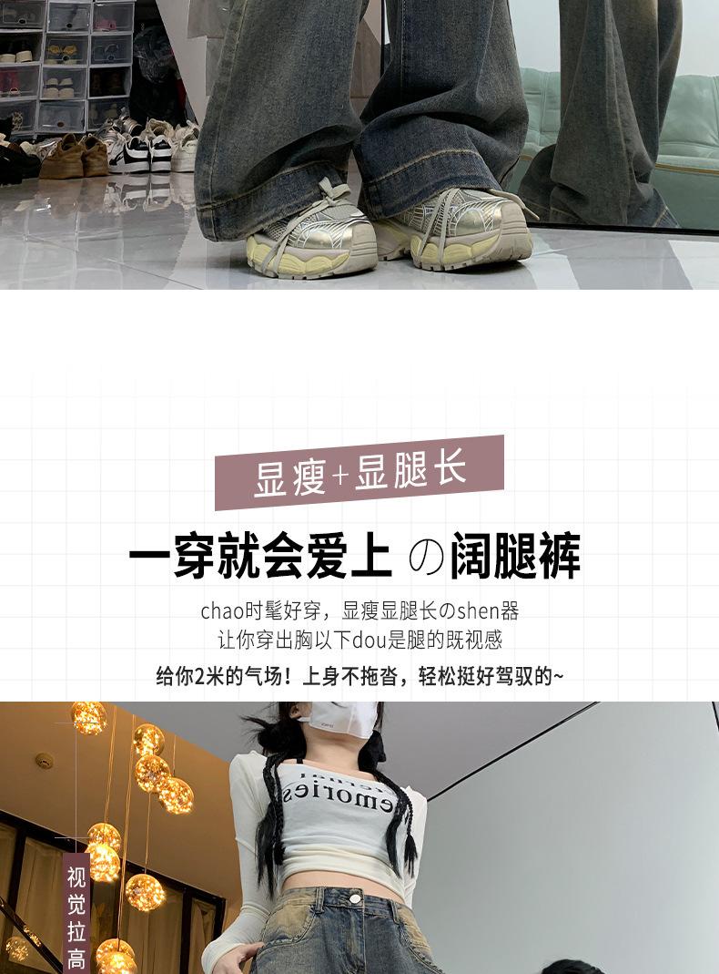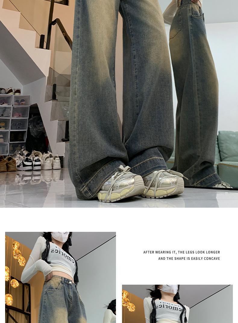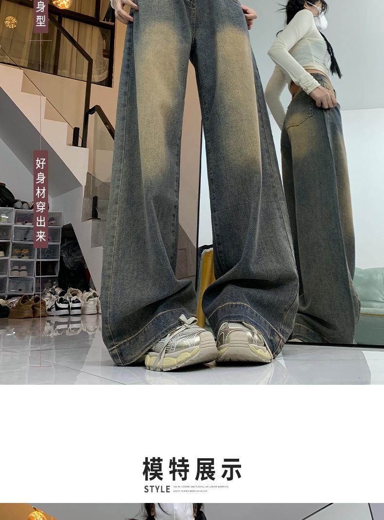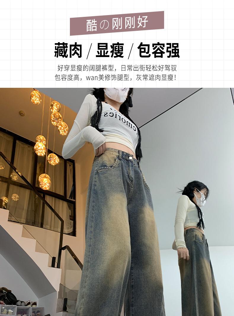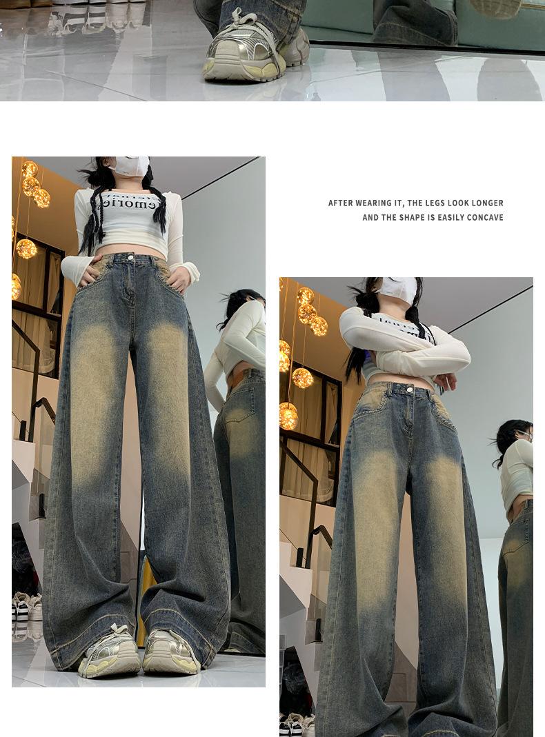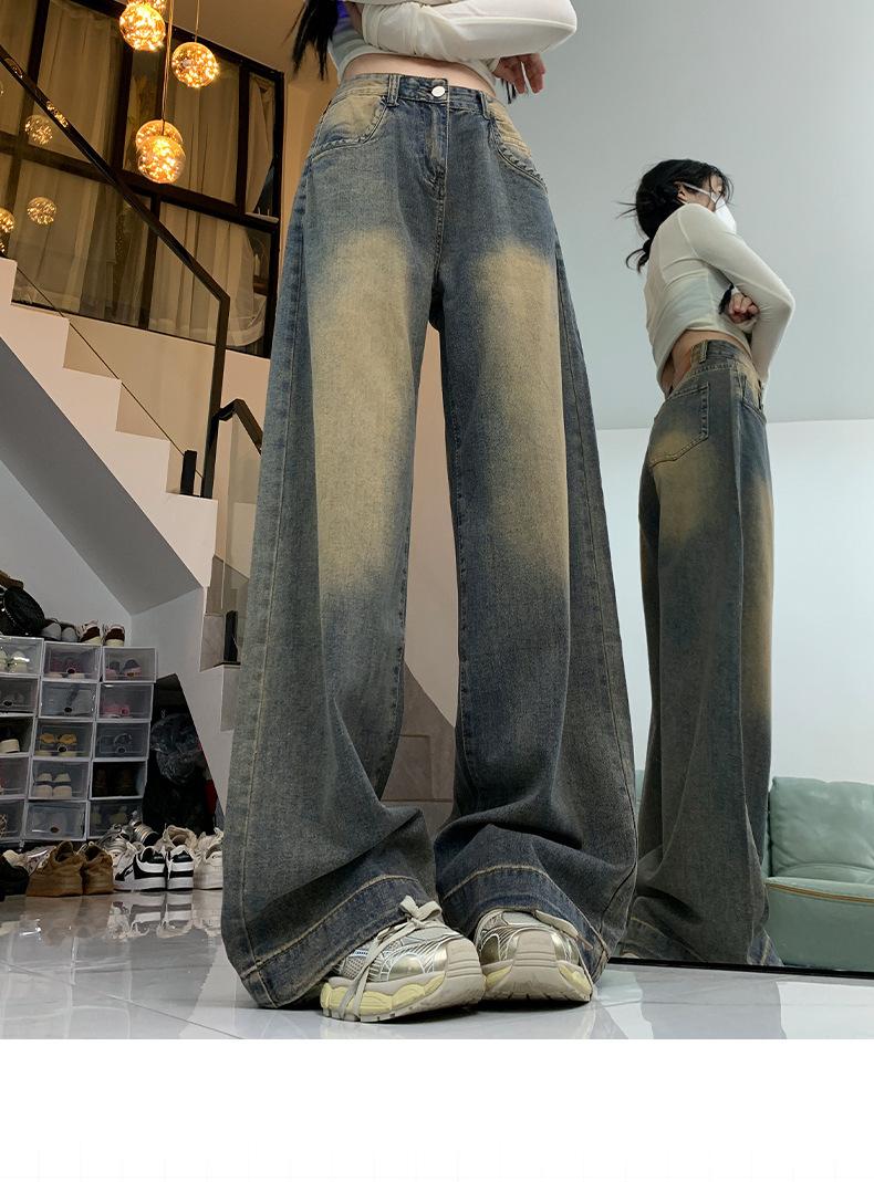 Jeans Retro Anchos Nuevos 2025 para Mujer Sueltos Adelgazantes de Cintura Alta con Caída Verano Americanos Rectos Pantalones Largos hasta el Piso