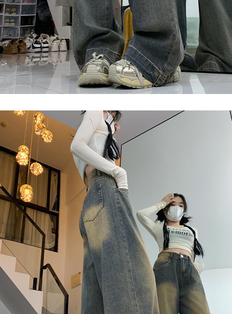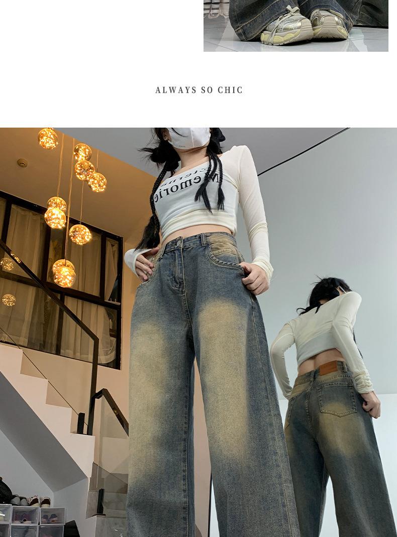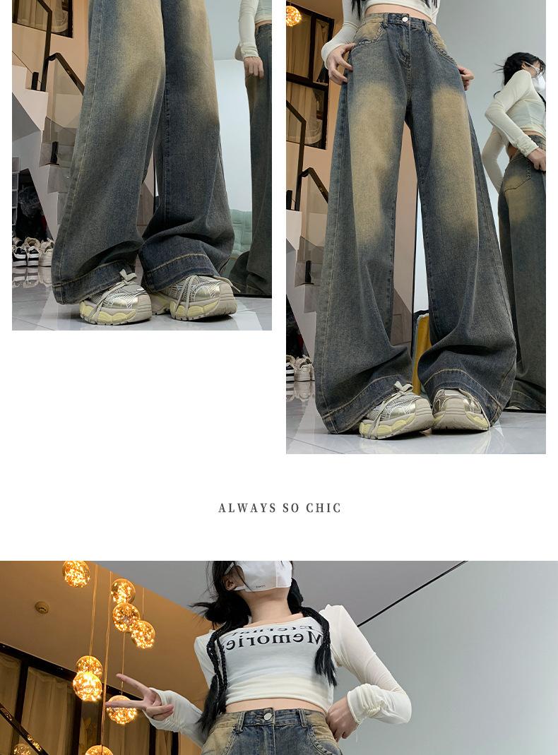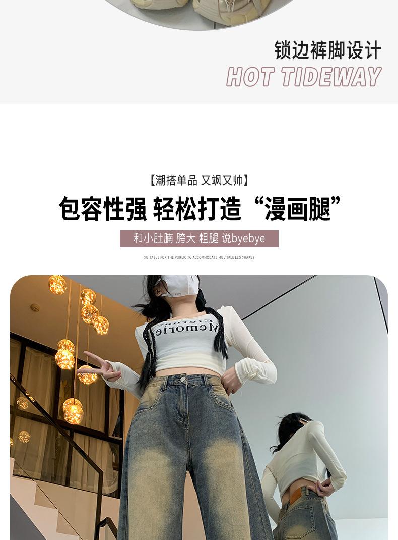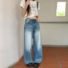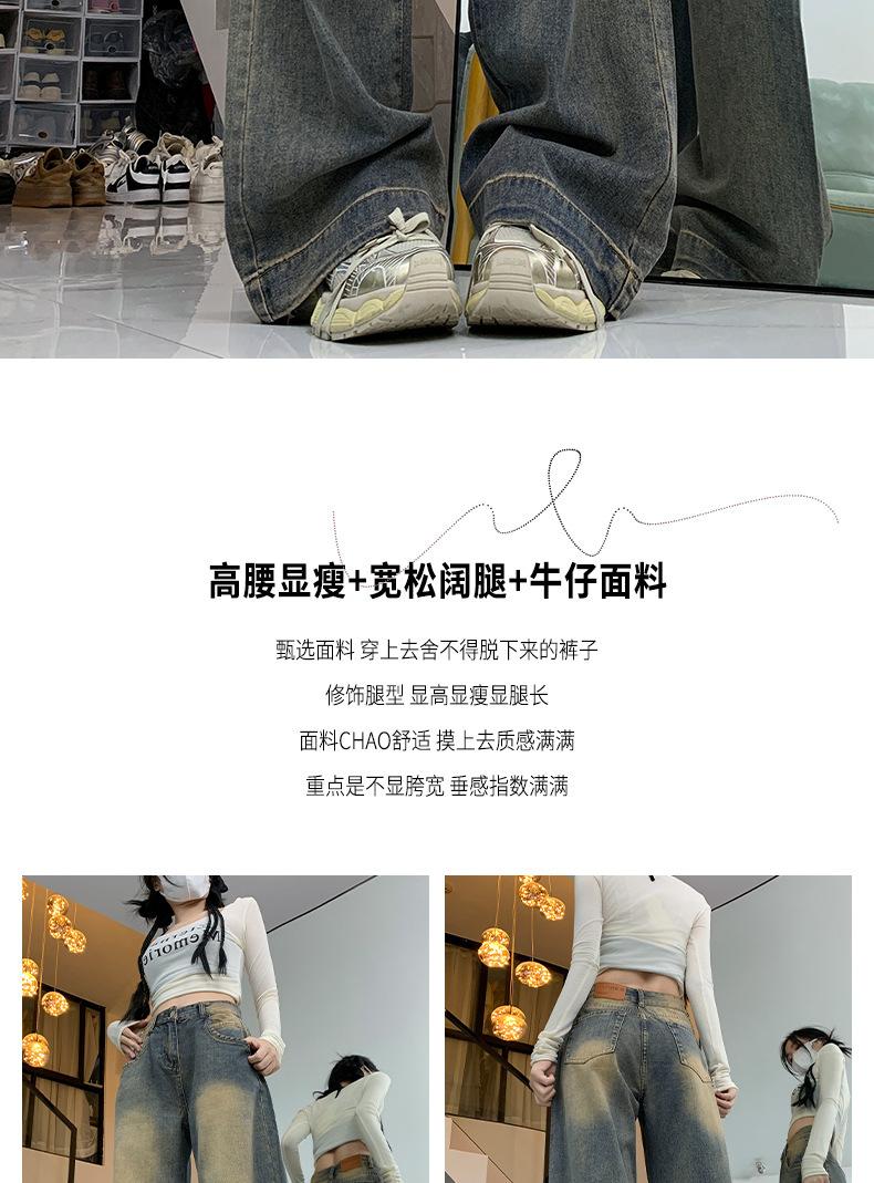 Jeans Retro Anchos Nuevos 2025 para Mujer Sueltos Adelgazantes de Cintura Alta con Caída Verano Americanos Rectos Pantalones Largos hasta el Piso