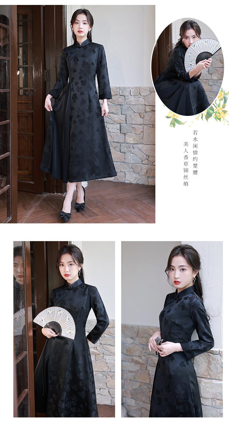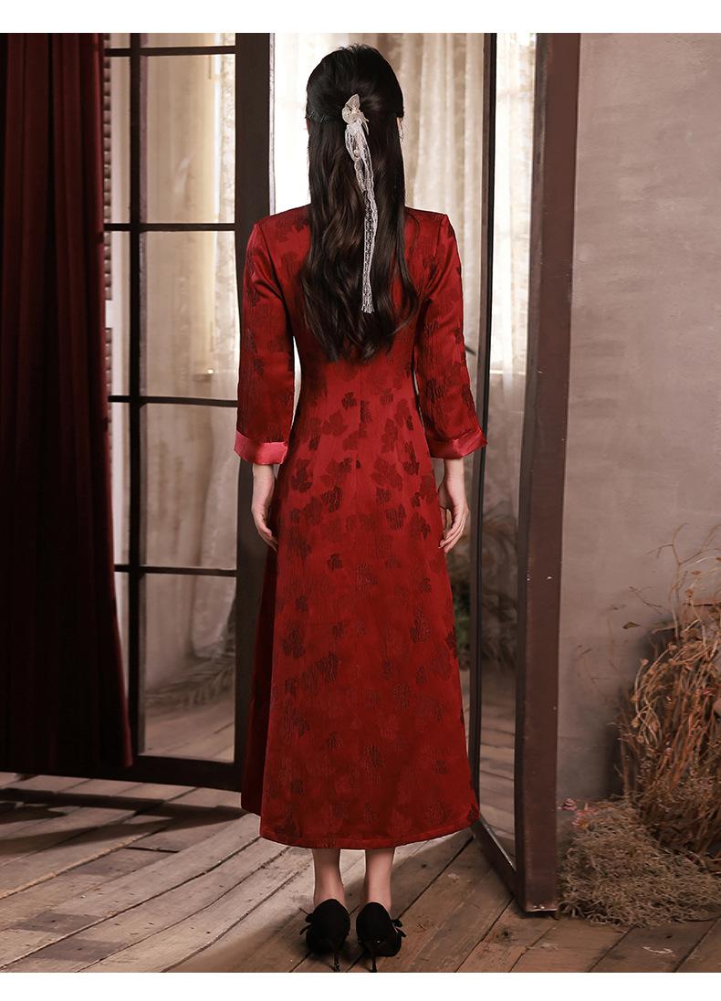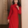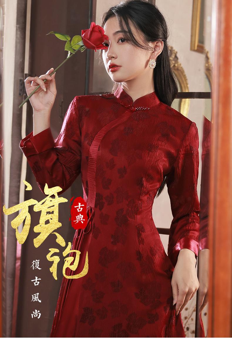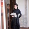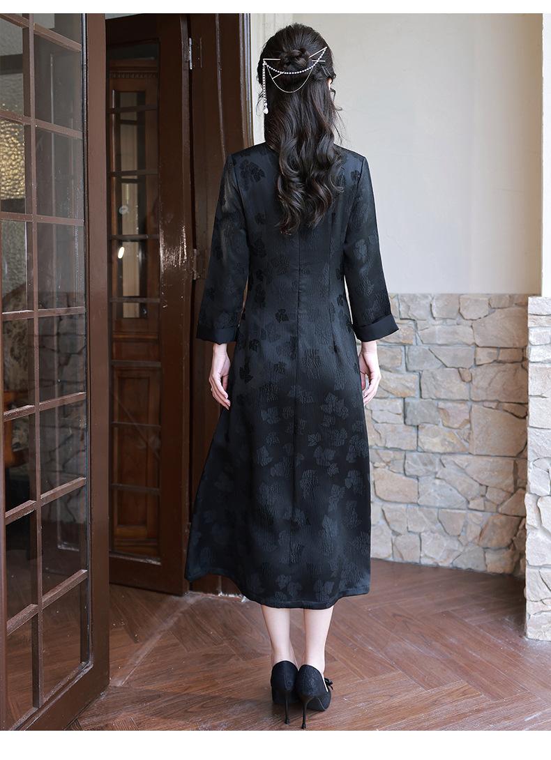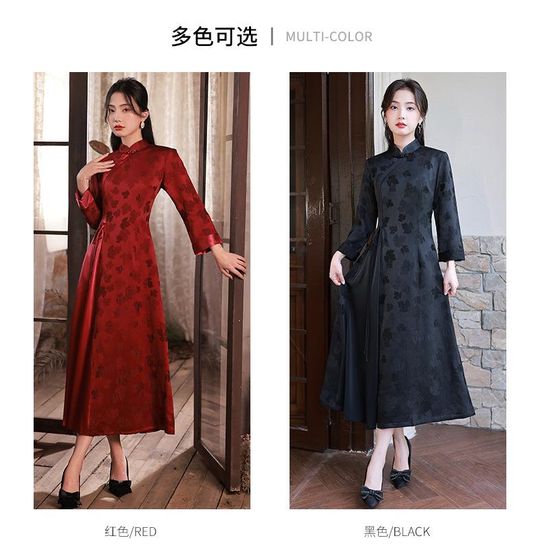 Otoño Nueva Versión Mejorada de Seda Jacquard Arrugada a la Moda Estilo Joven Cuello Alto Largo Adelgazante Falda Cheongsam