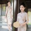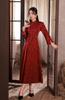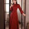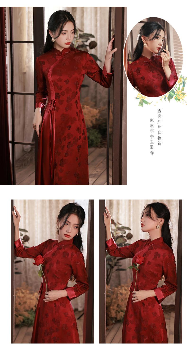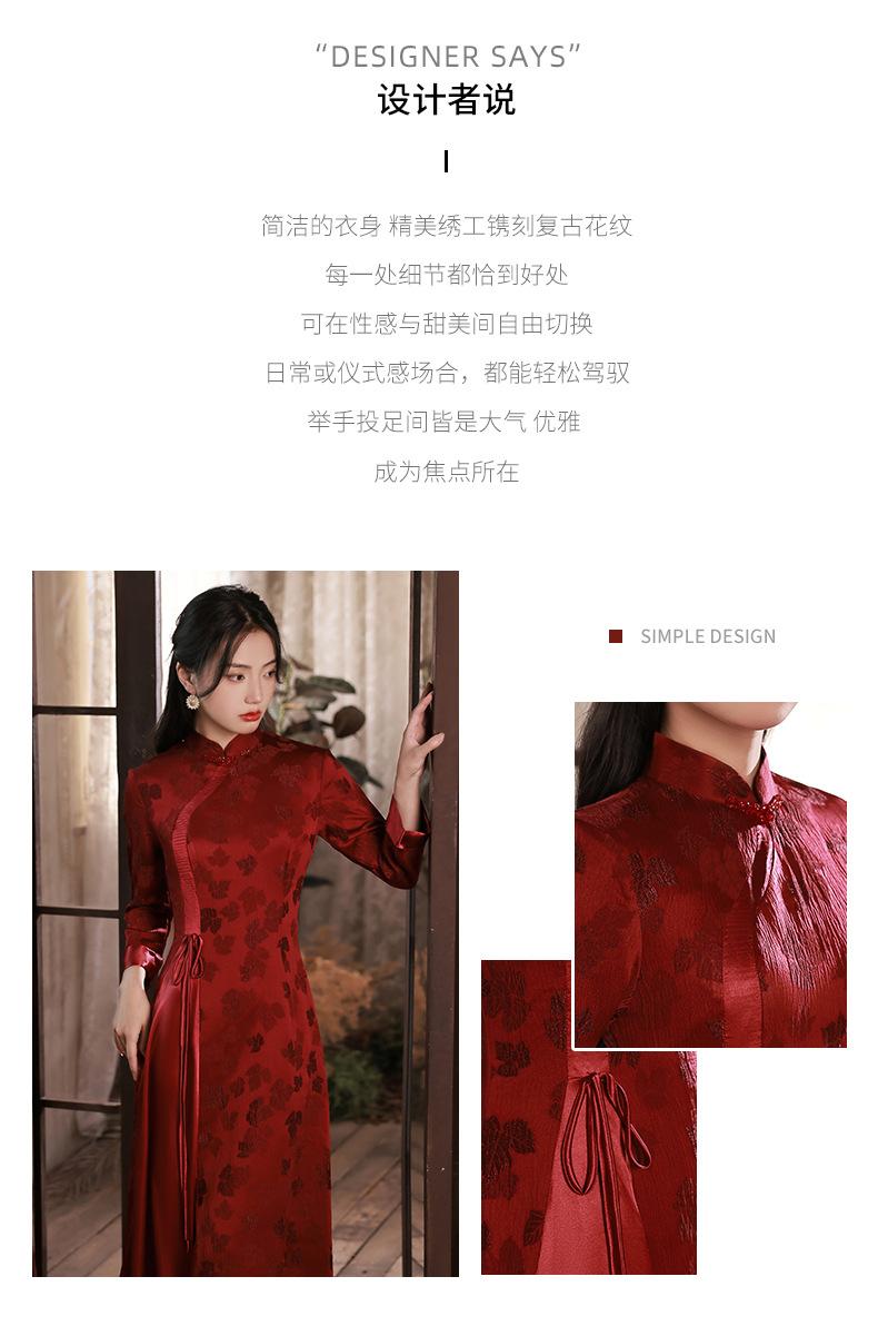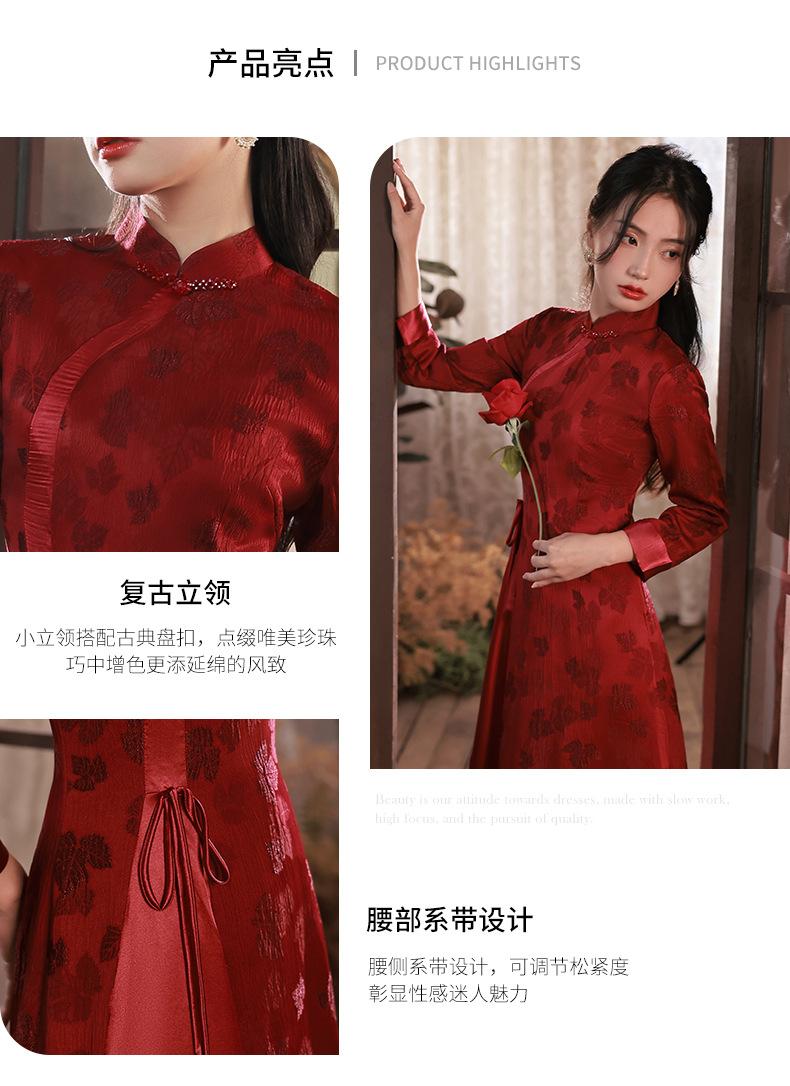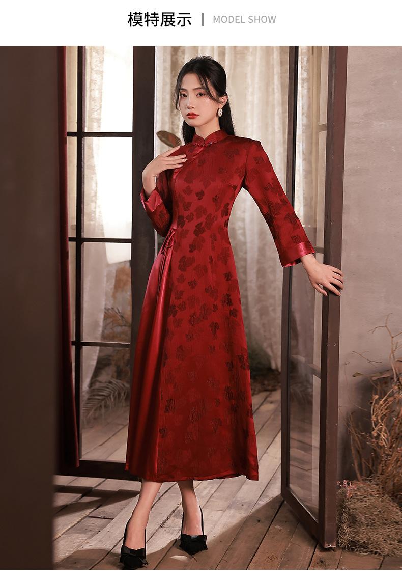Otoño Nueva Versión Mejorada de Seda Jacquard Arrugada a la Moda Estilo Joven Cuello Alto Largo Adelgazante Falda Cheongsam
