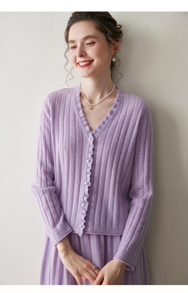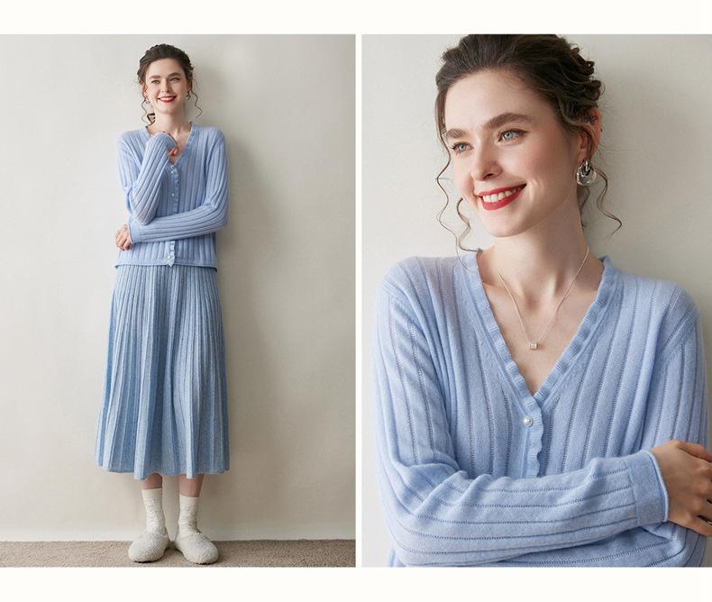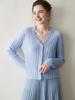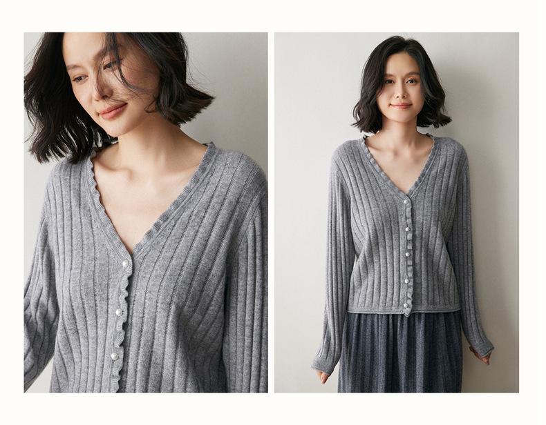 2025 Otoño/Invierno Nuevo Abrigo Cárdigan de Punto de Cachemira para Mujer de Color Sólido Suéter Versátil de Moda Manga Larga Parte Superior Exterior