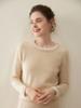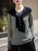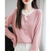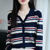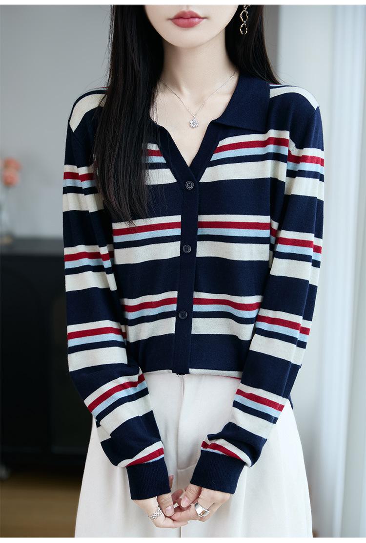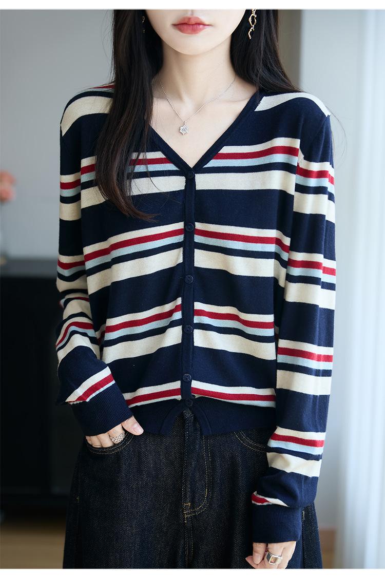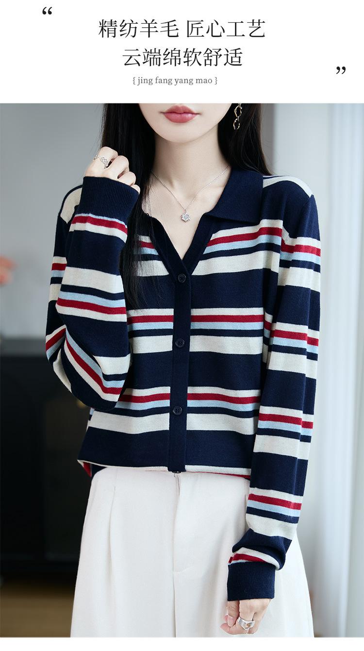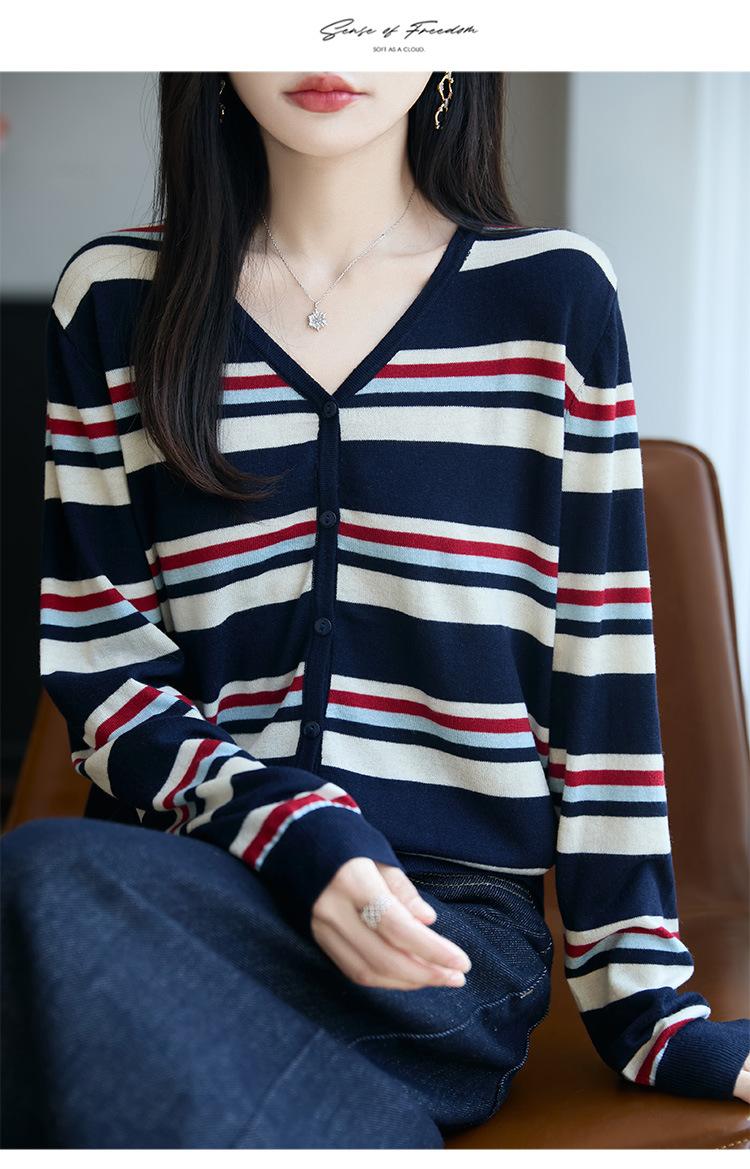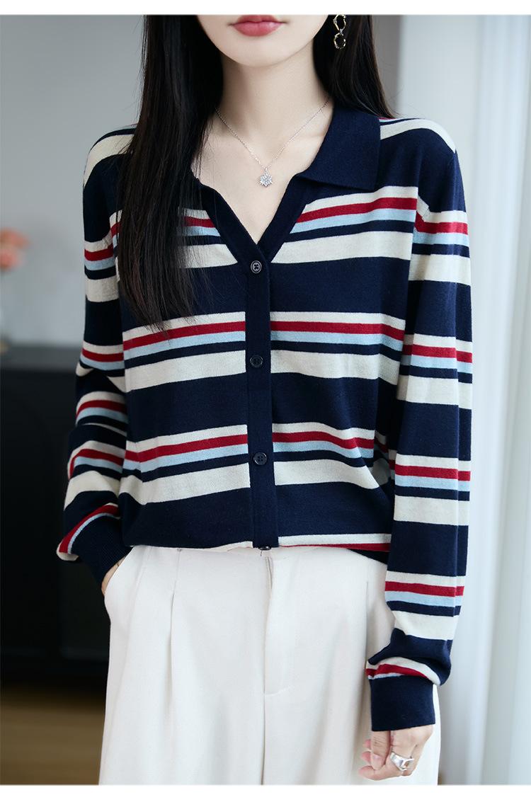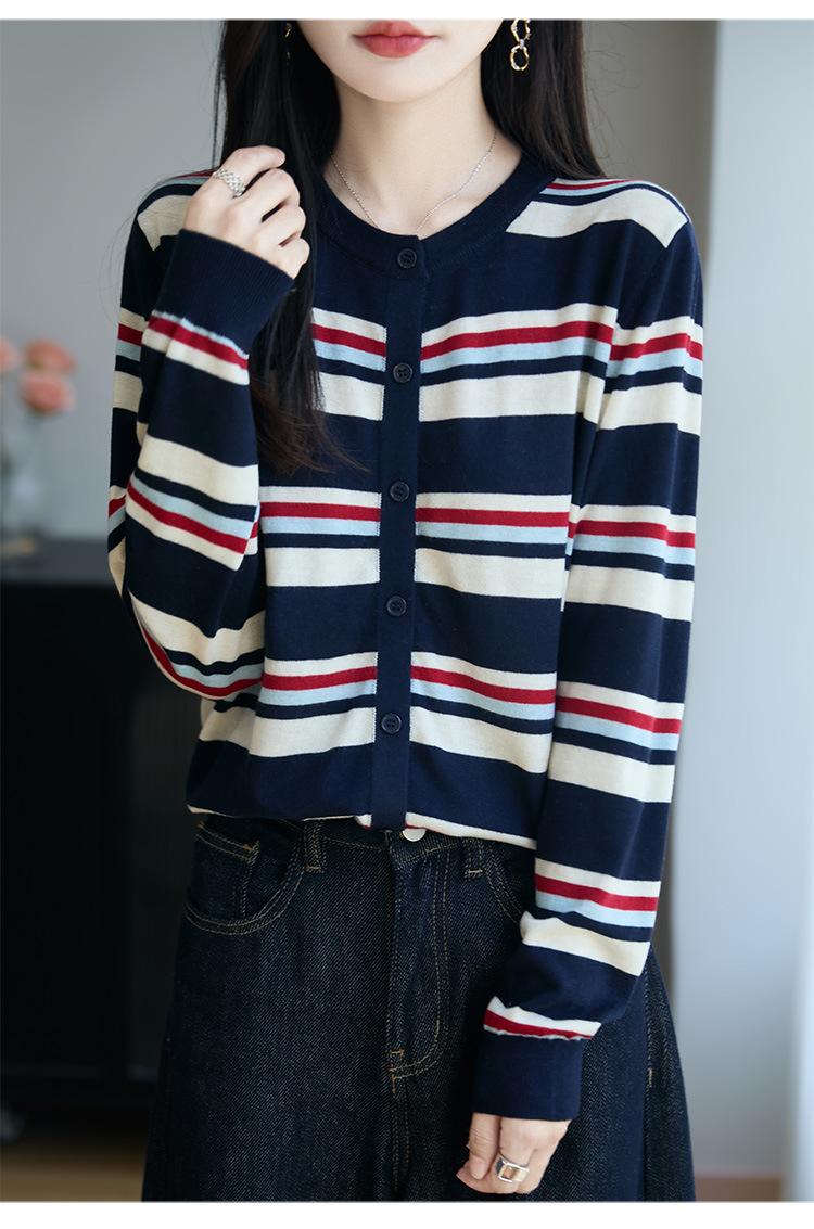 Suéter de Punto de Lana Merino Fina de Otoño Temprano 2025 Cuello Redondo Manga Larga para Mujer Bloque de Color Rayado Suelto Jersey Capa Base