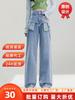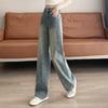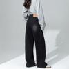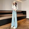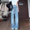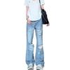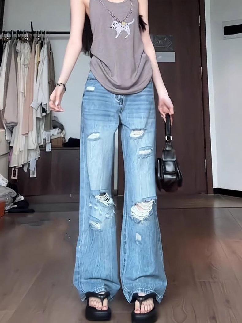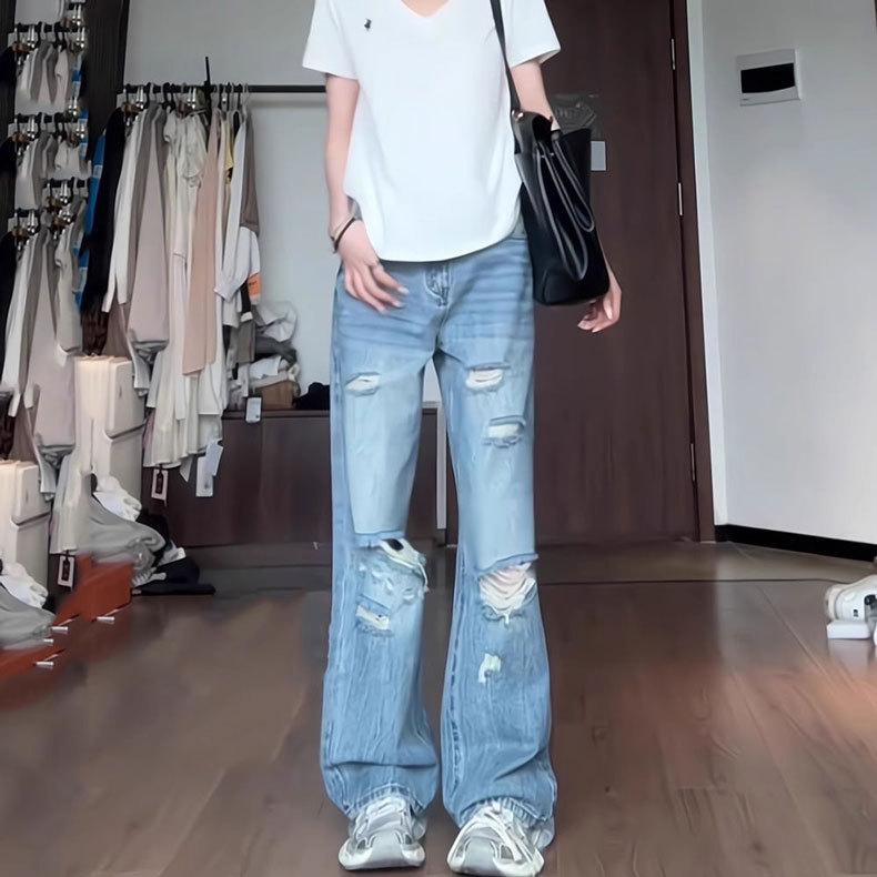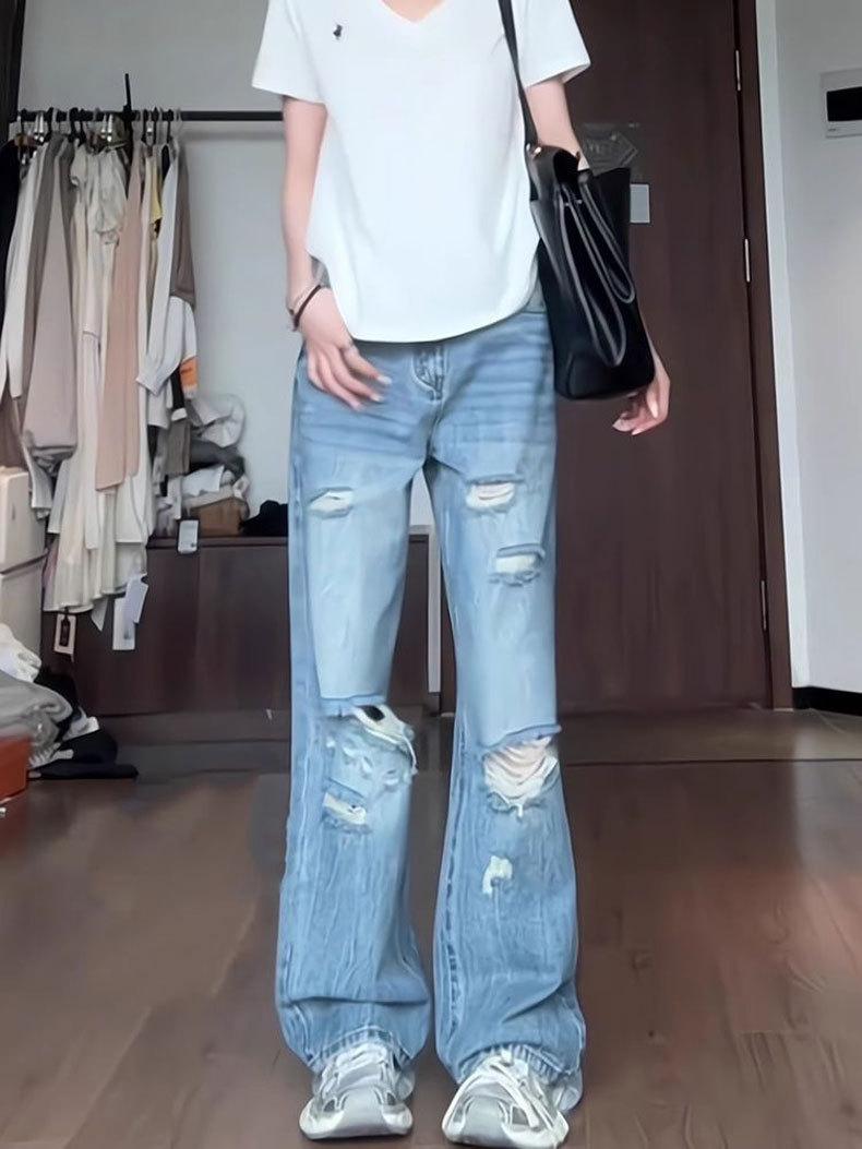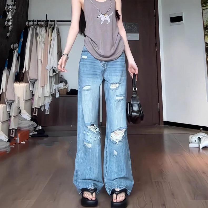 Jeans Azules Rotos de Pierna Recta para Mujer Otoño 2025 Nuevo Cuerpo en Forma de Pera Americano Cintura Alta Adelgazantes Pantalones de Pierna Ancha