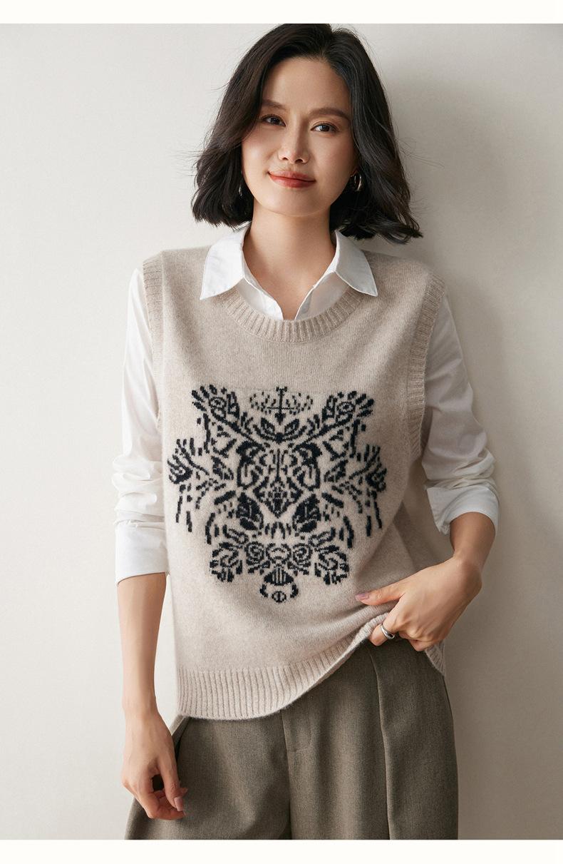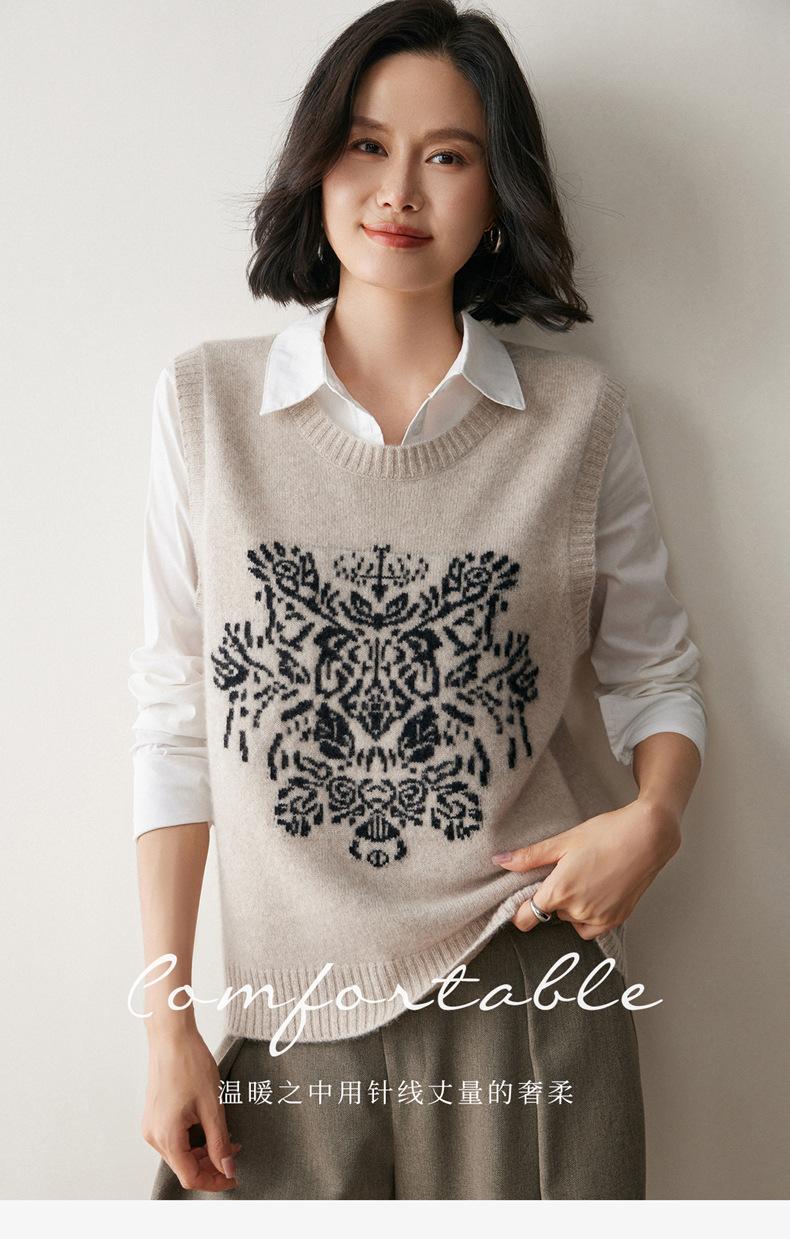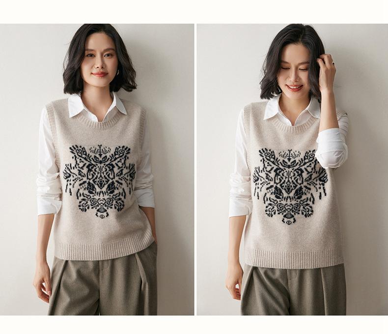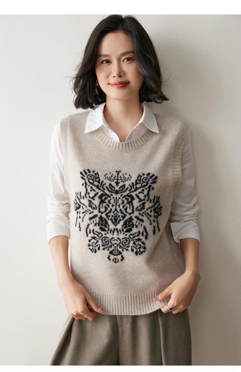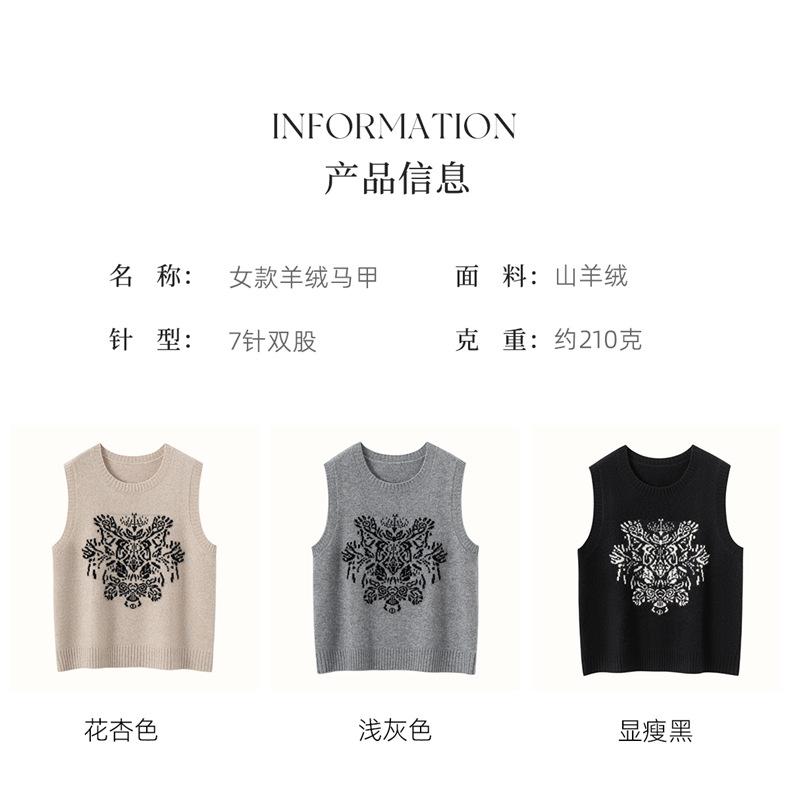 Nuevo Otoño/Invierno 2025 Tejido de Cachemira Chaleco de Mujer sin Mangas Bordado Cuello Redondo Top Chaleco Holgado Ropa Exterior Top