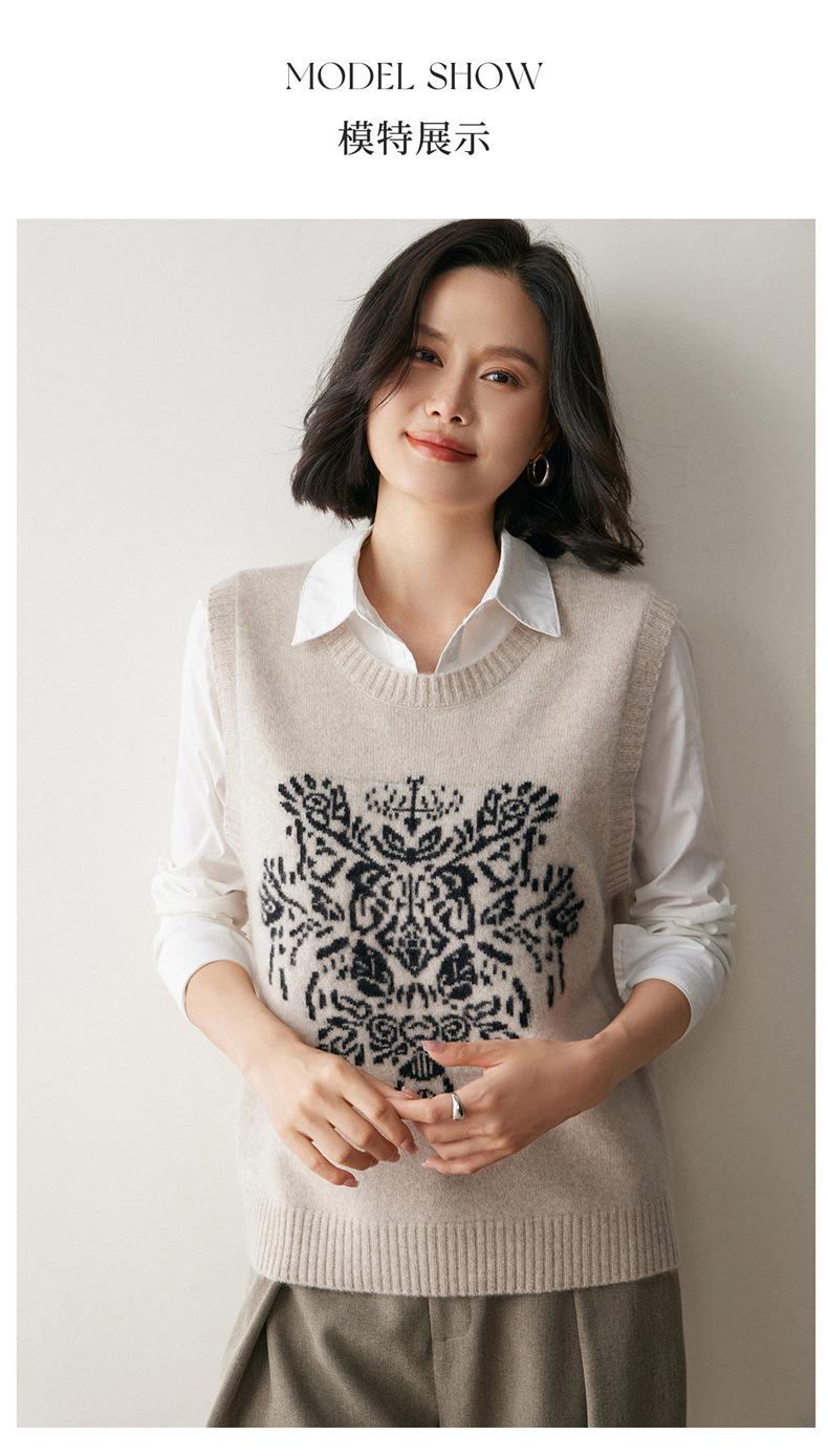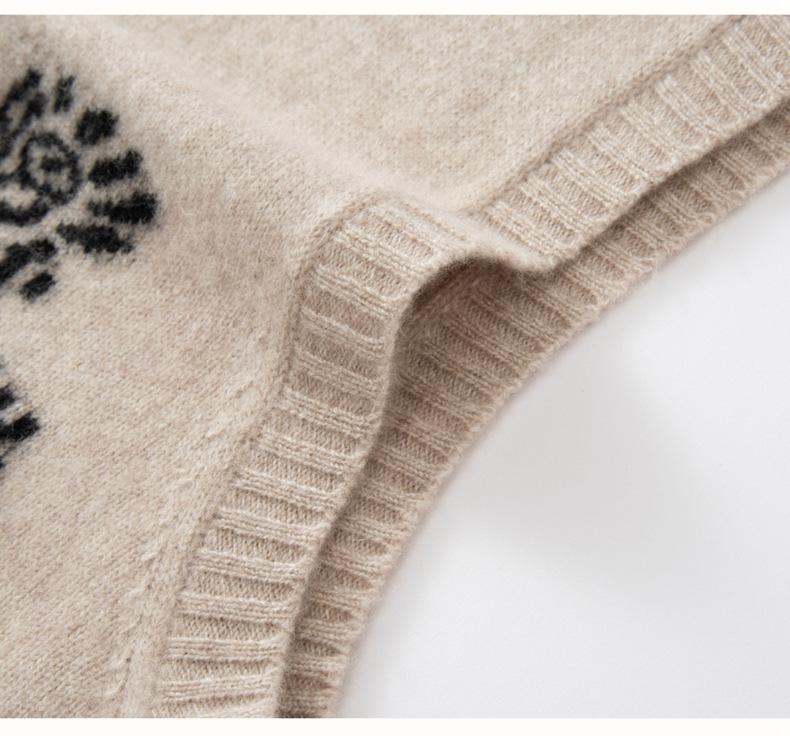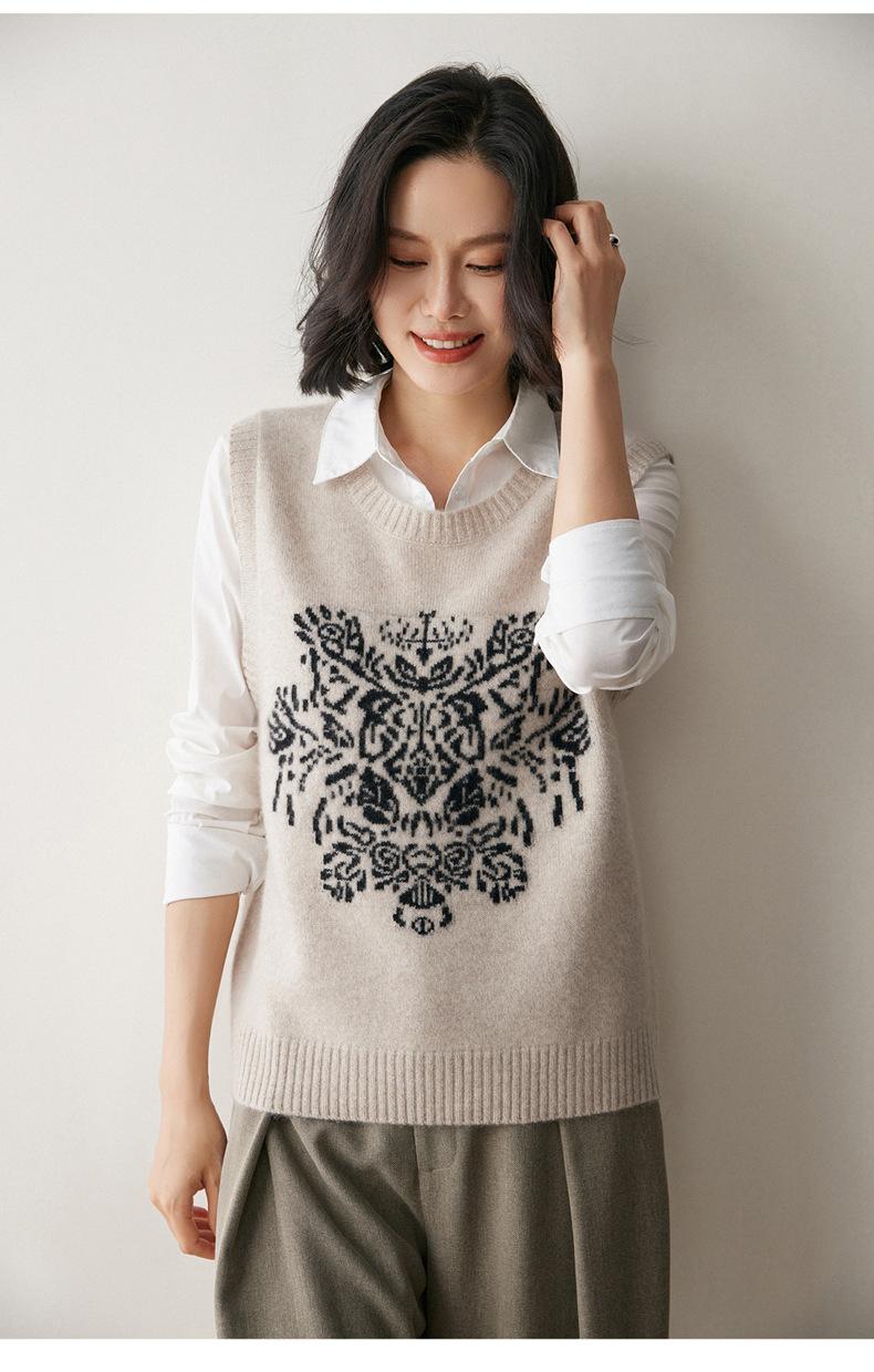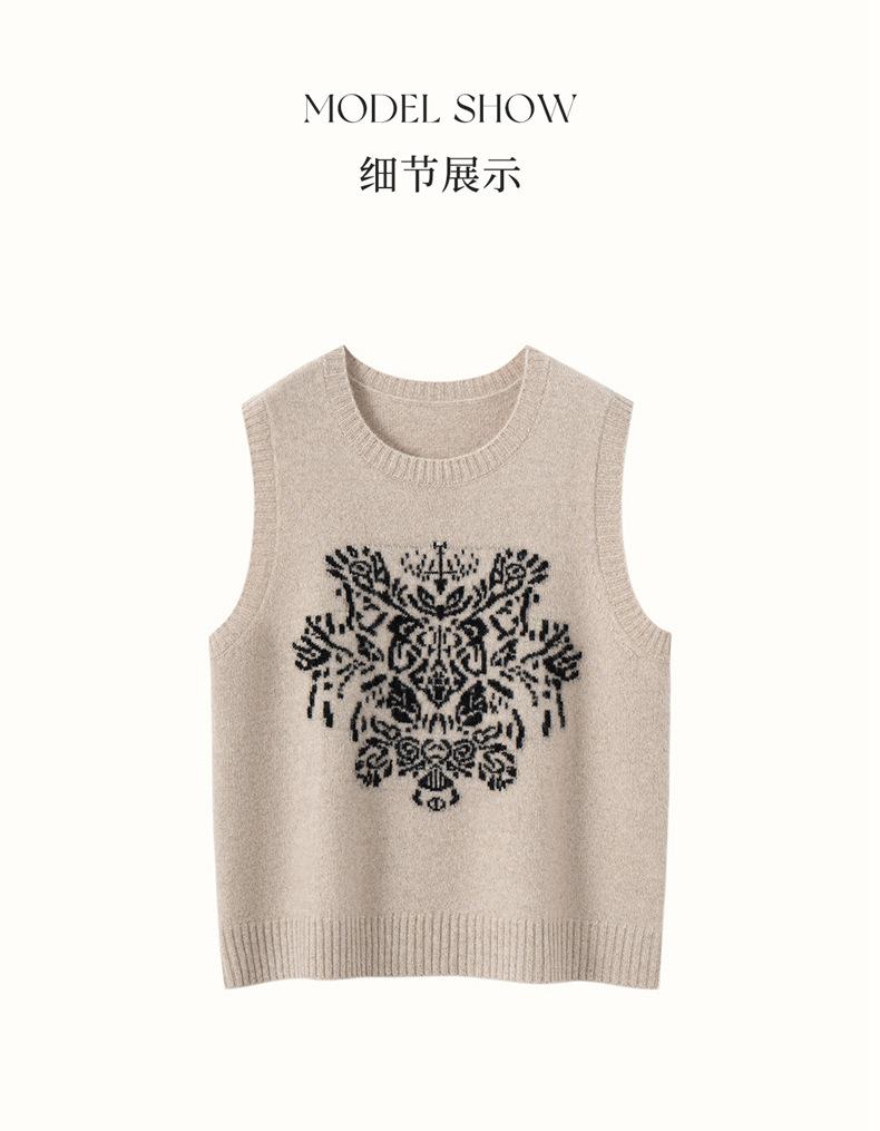 Nuevo Otoño/Invierno 2025 Tejido de Cachemira Chaleco de Mujer sin Mangas Bordado Cuello Redondo Top Chaleco Holgado Ropa Exterior Top
