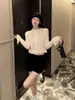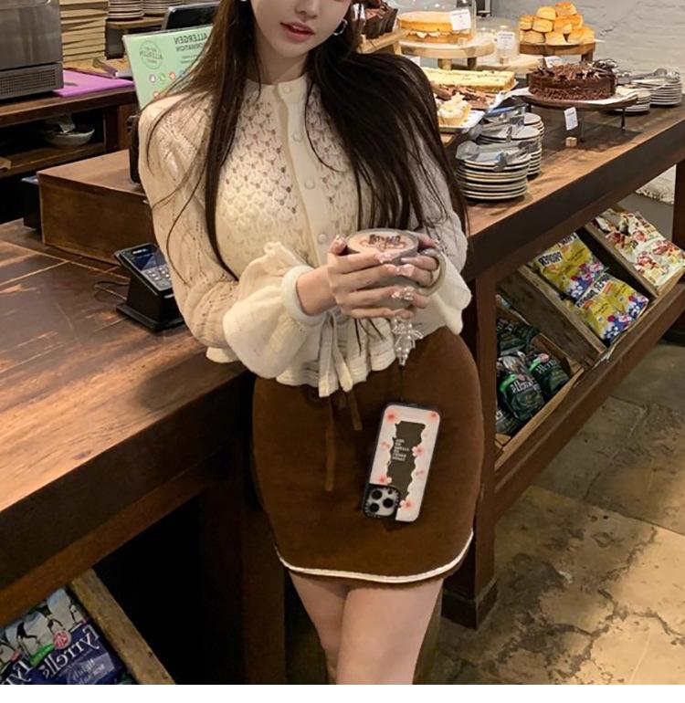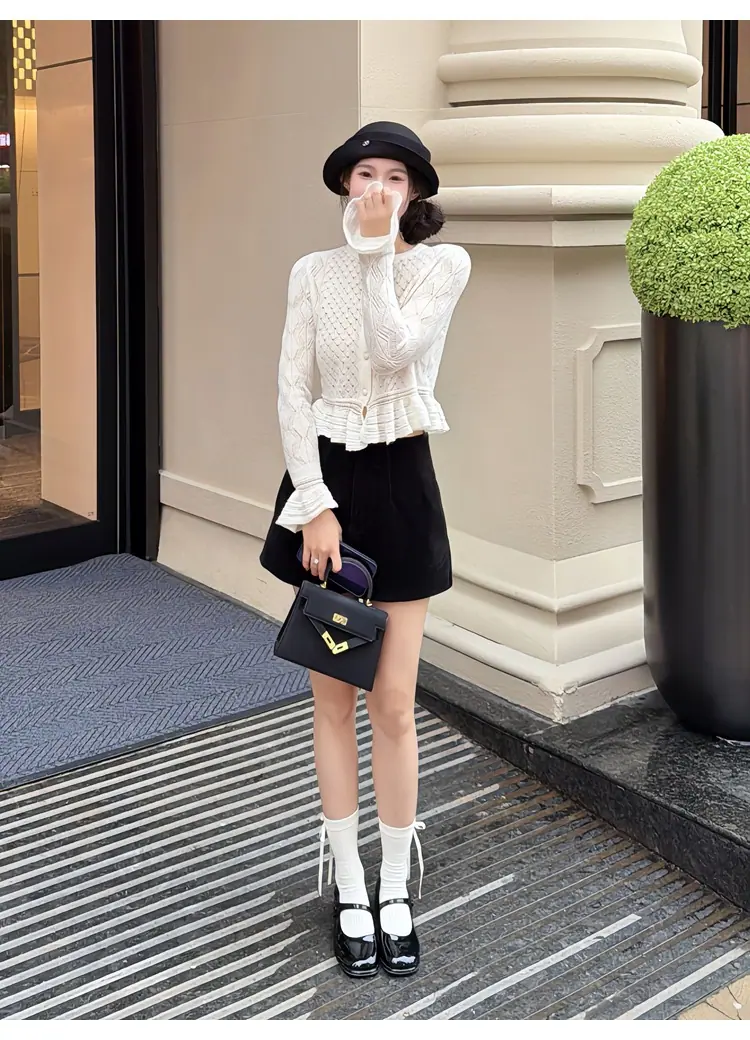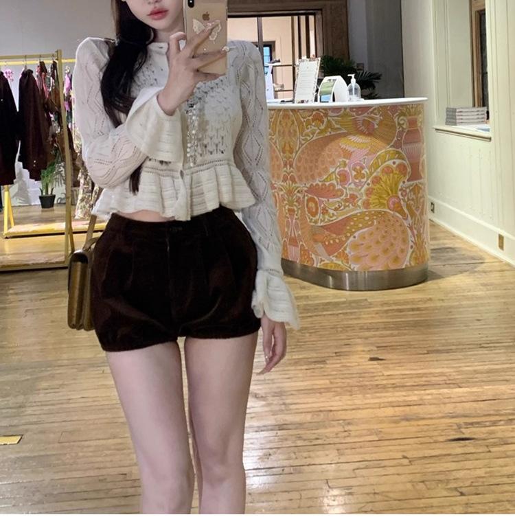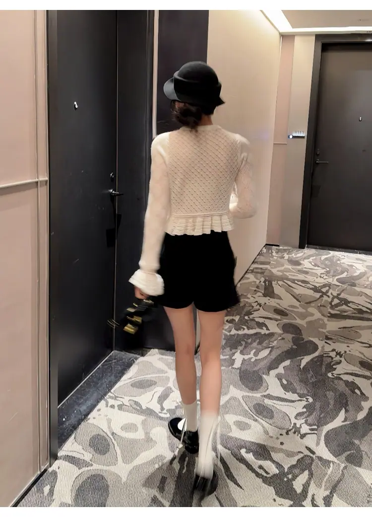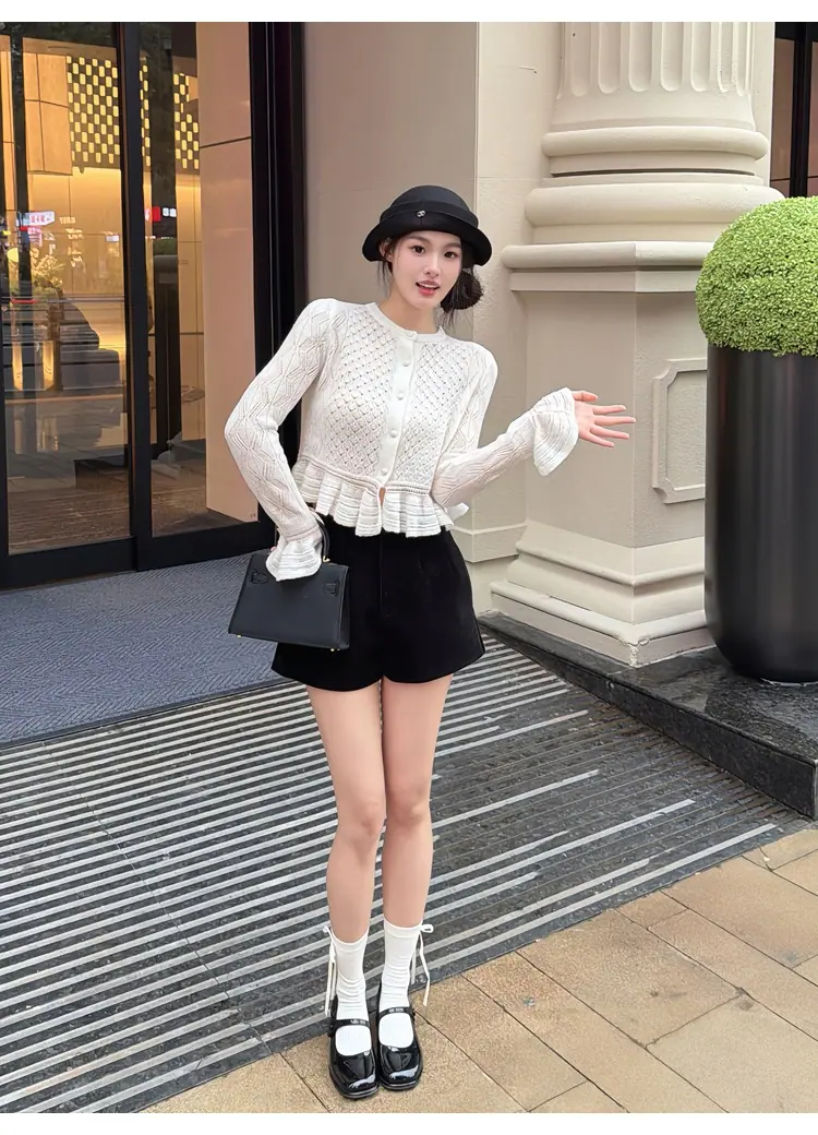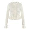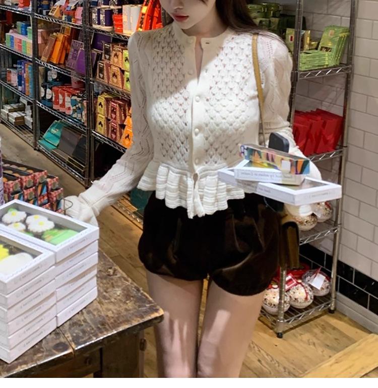 Cárdigan de punto de manga larga hueco corto con diseño de manga acampanada, súper hermoso para principios de otoño, abrigo suéter, top de otoño para mujer