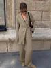 Conjunto de Dos Piezas Amazon Camisa Arrugada Texturizada y Pantalones para Mujer 2025 Otoño Moda de Exportación Traje Holgado Color Caqui