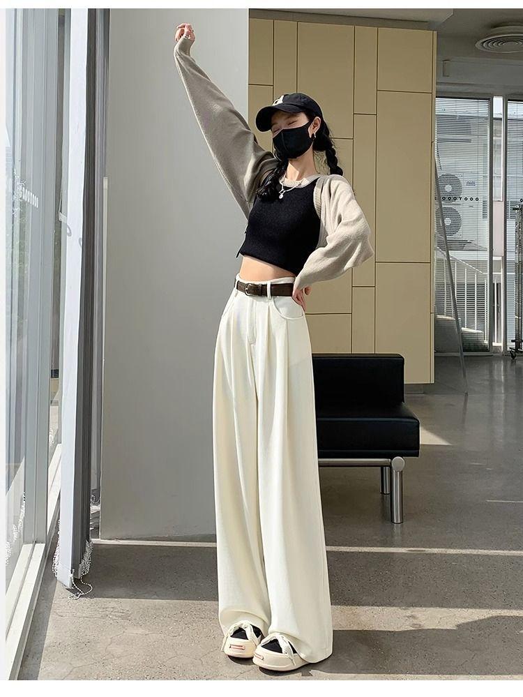 Pantalones casuales versátiles de pierna ancha para mujer, de talle alto, con caída recta, nuevos para primavera y otoño 2025, pantalones holgados diarios para ir al trabajo