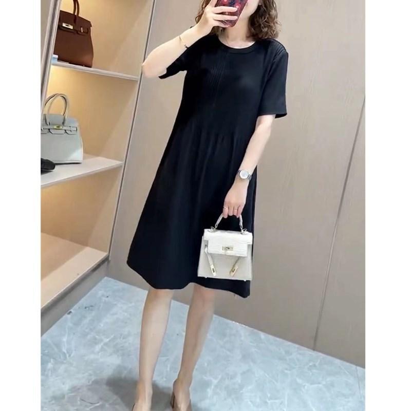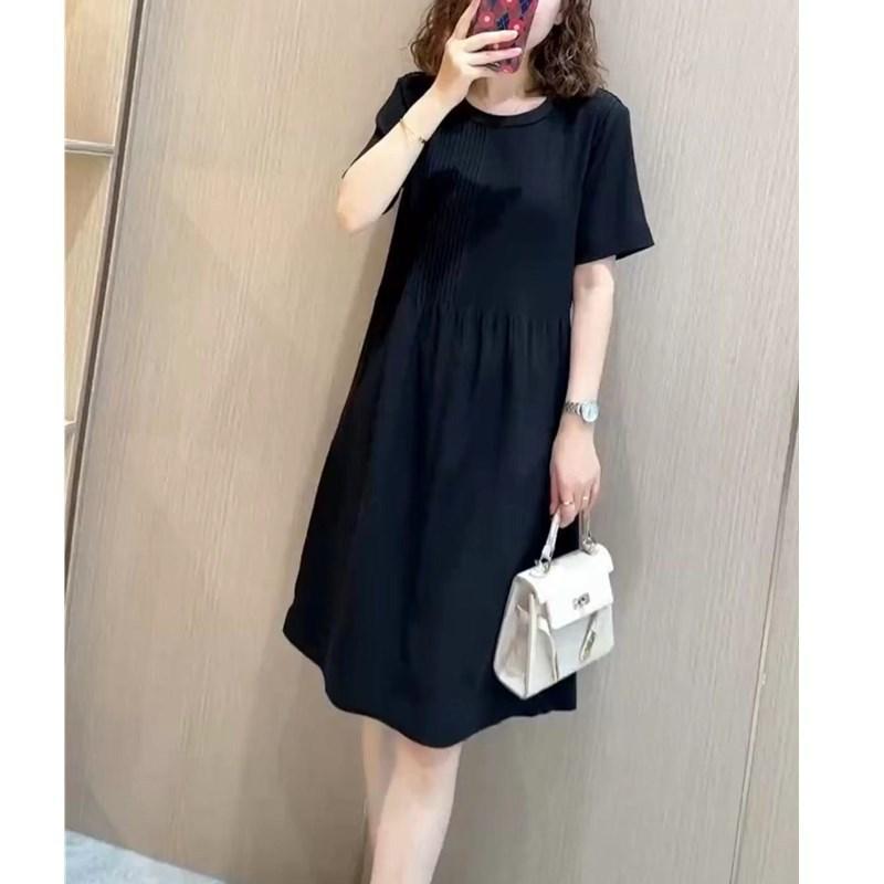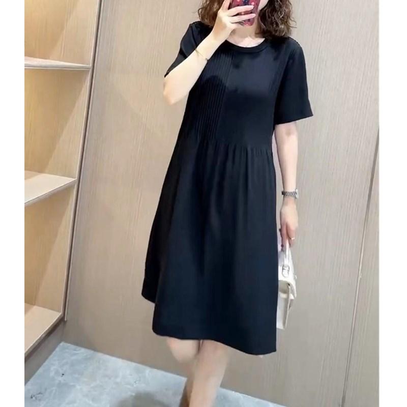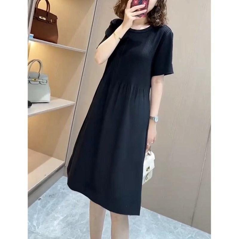 23539 gran amor belleza Yiyuan 2023 Verano nuevo estilo coreano cuello redondo vestido suelto plisado largo medio vestido de mujer