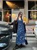 Compra Vestido chaleco vintage estilo francés con cuello en V profundo para mujer, primavera, azul, estampado, sin mangas, falda, cintura ajustada con cinturón, línea A, falda corta al por mayor en Joom.pro