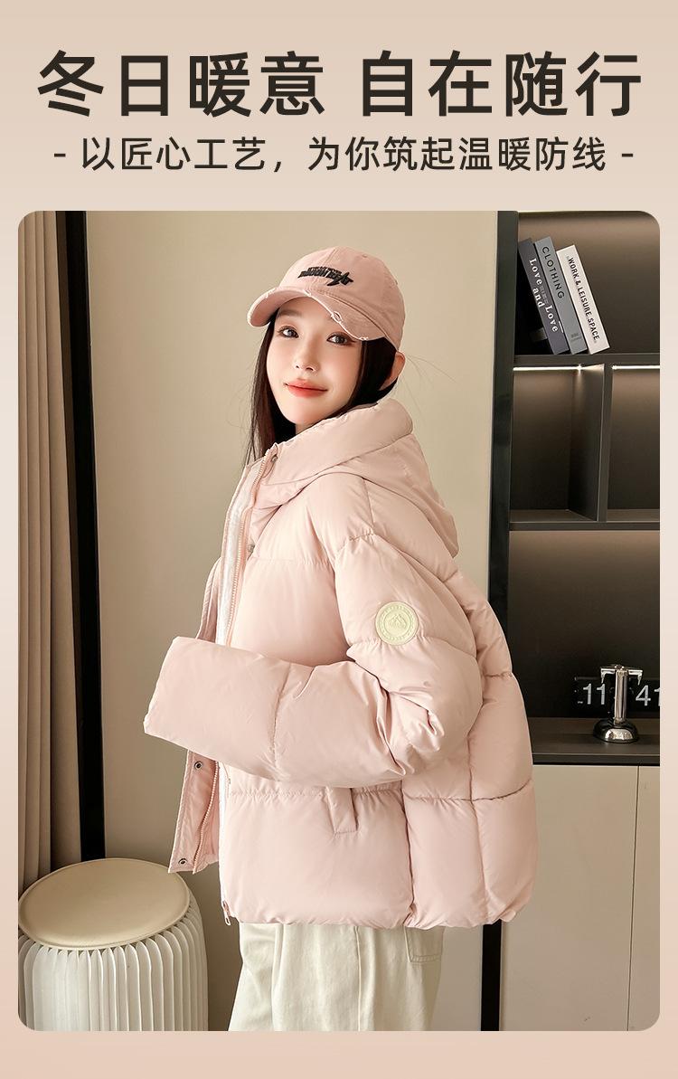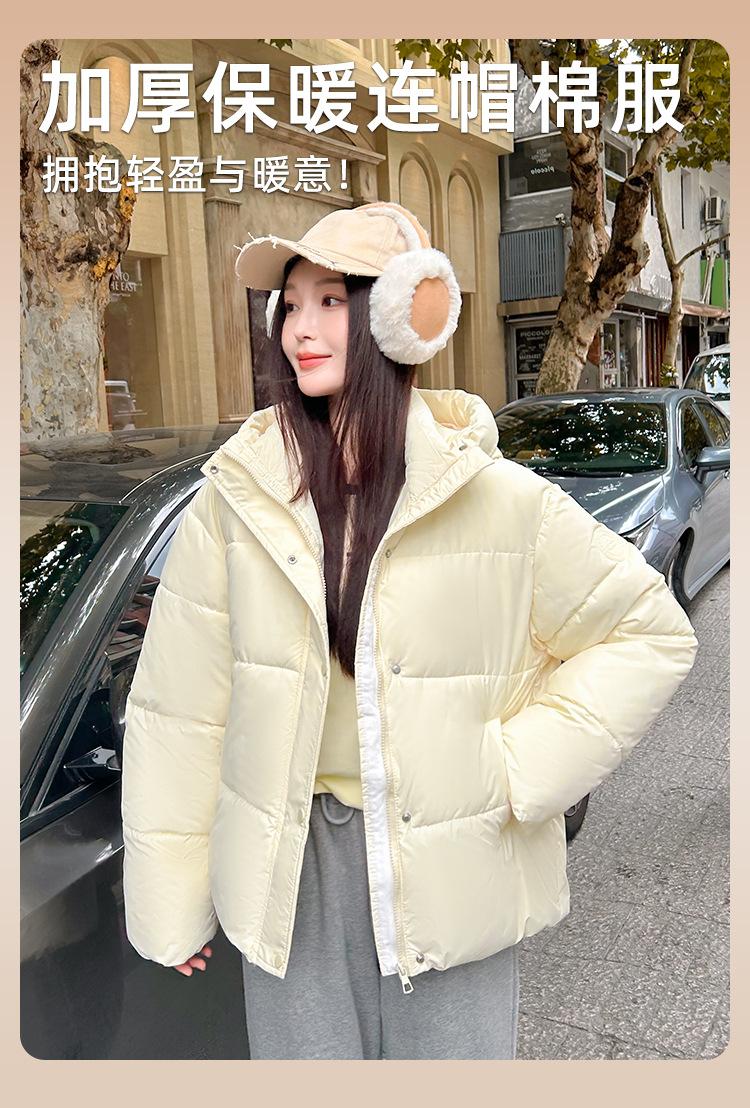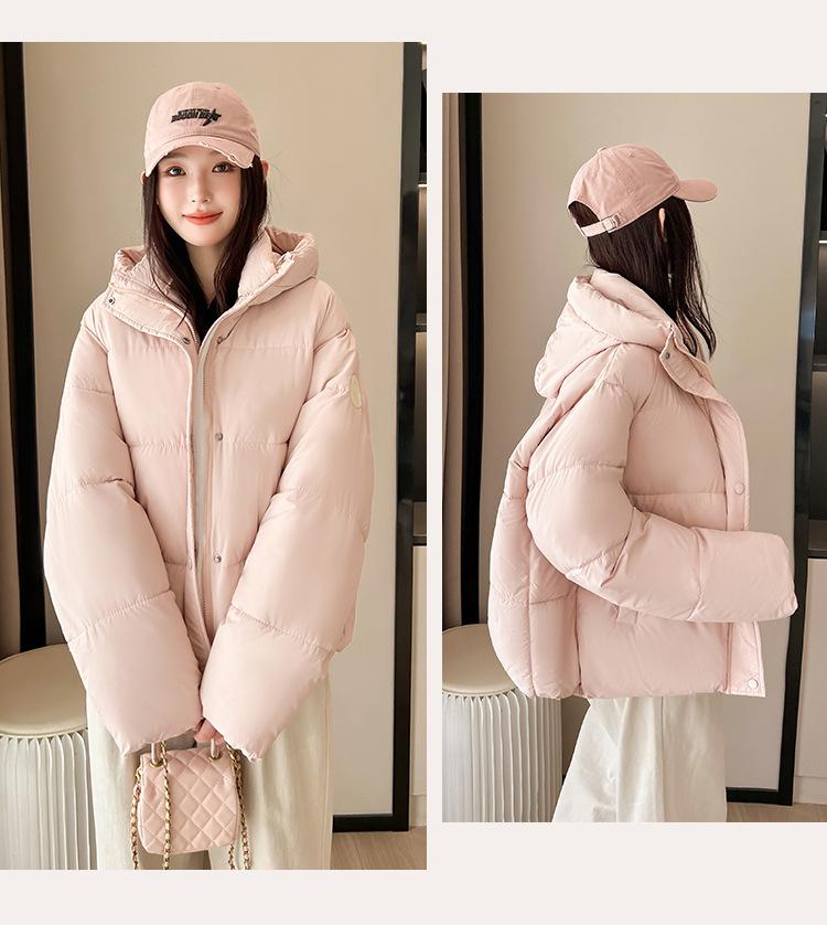 Chaqueta de Algodón Suelta de Invierno Abrigo para Mujer Nuevo Talla Pequeña Grueso con Capucha Abrigo Pan Chaqueta Acolchada de Algodón Versátil Moda Abrigo de Algodón
