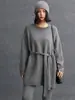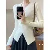 Otoño/Invierno 2025 Nuevo Jersey de Punto de Cachemira de Manga Tres Cuartos con Cuello Redondo para Mujer, Holgado, Estilo Coreano, Adelgazante, Temperamento Perezoso, Color Sólido